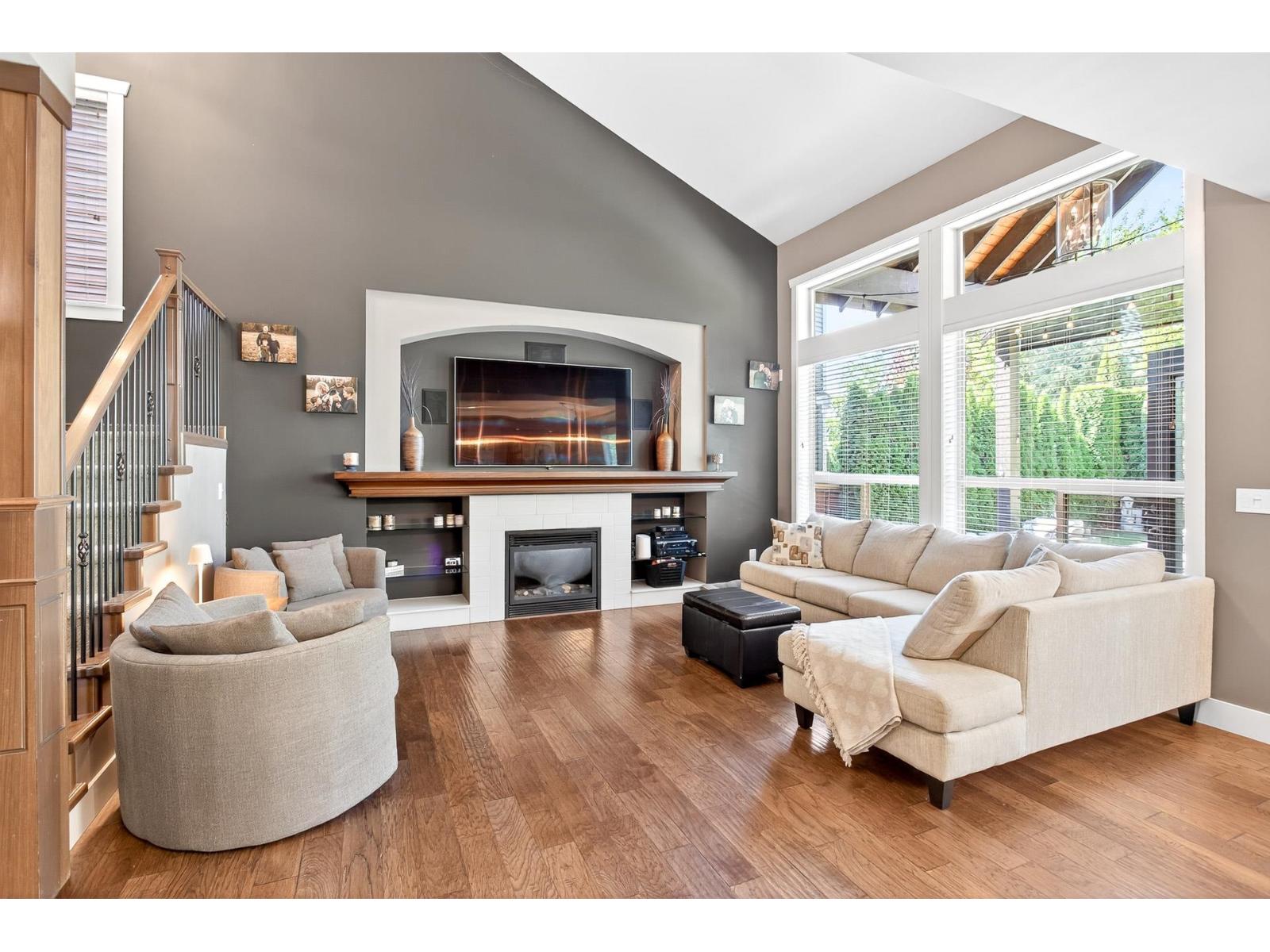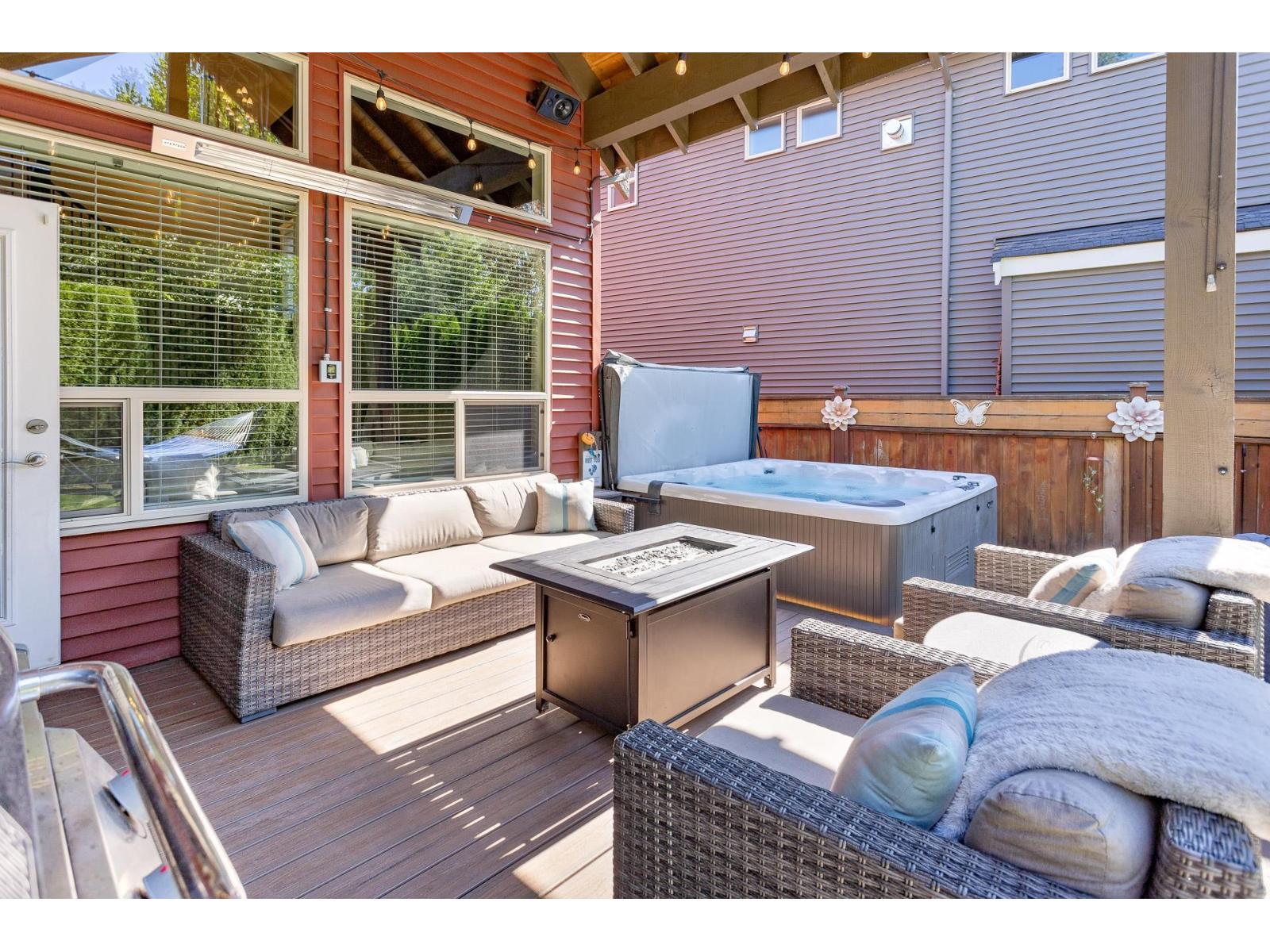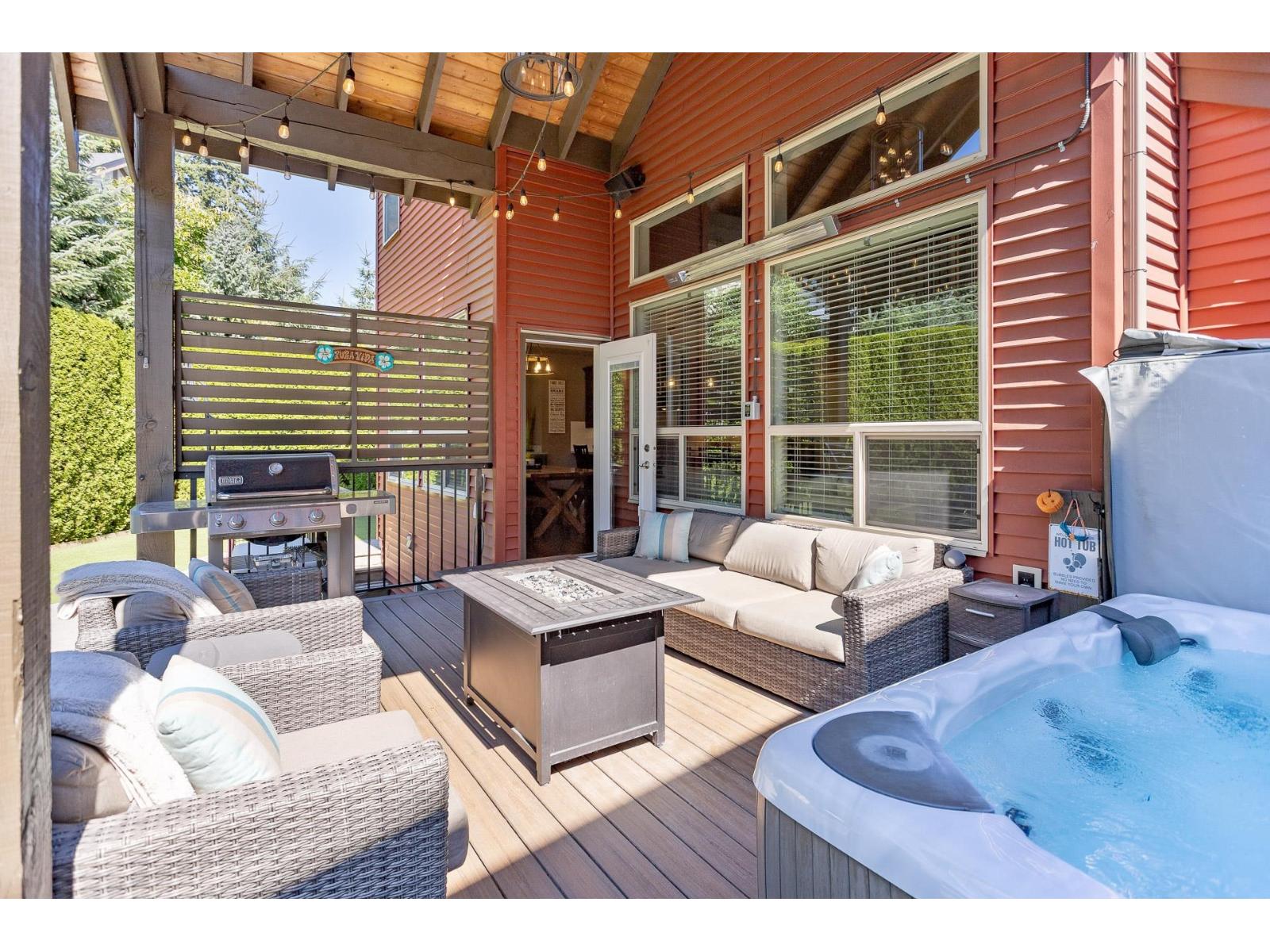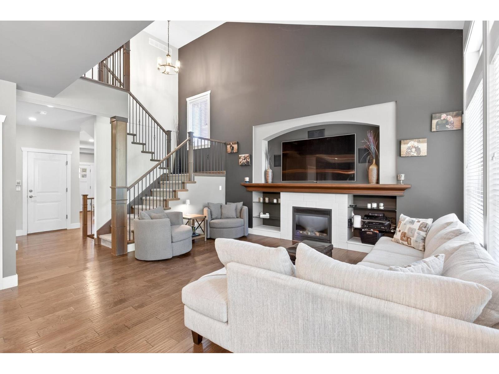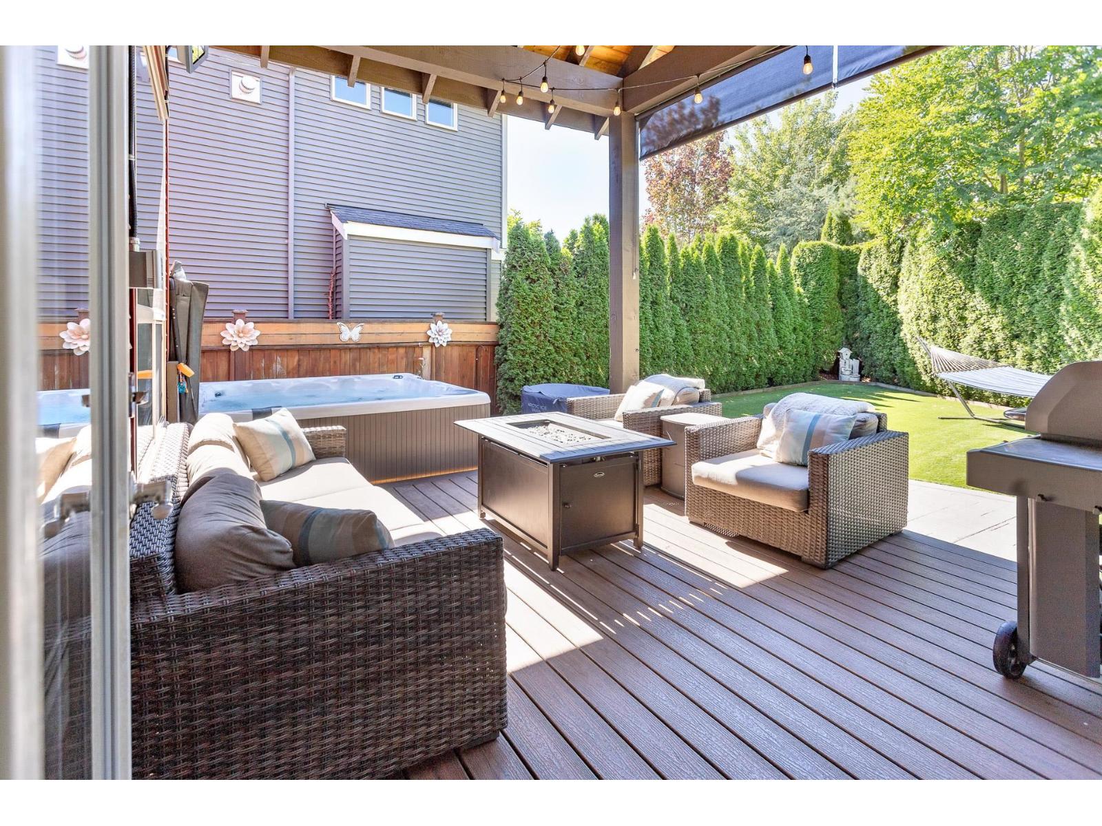 A stunning RAB home in Yorkson South. The great room offers a bright open space with oversized windows and double-height ceilings, a gourmet kitchen, granite counters and rich dark cabinetry. Dining area includes a built-in buffet/wine bar. Wired for surround sound and incl A/C for your comfort. Upstairs are four large bedrooms with a spa-inspired ensuite and walk-in closet. Downstairs has a rec room, exercise area, and an additional unfinished 500 sq ft for a potential mtg helper. The lot is one of the biggest in the neighborhood, featuring a large patio patio with a vaulted roof, chandelier, a built-in heater for year-round use and stamped concrete . As well as hot tub and low-maintenance turf, 12' privacy cedars w/ irrigation. Minutes from parks, schools, shopping and hwy access (id:44393)