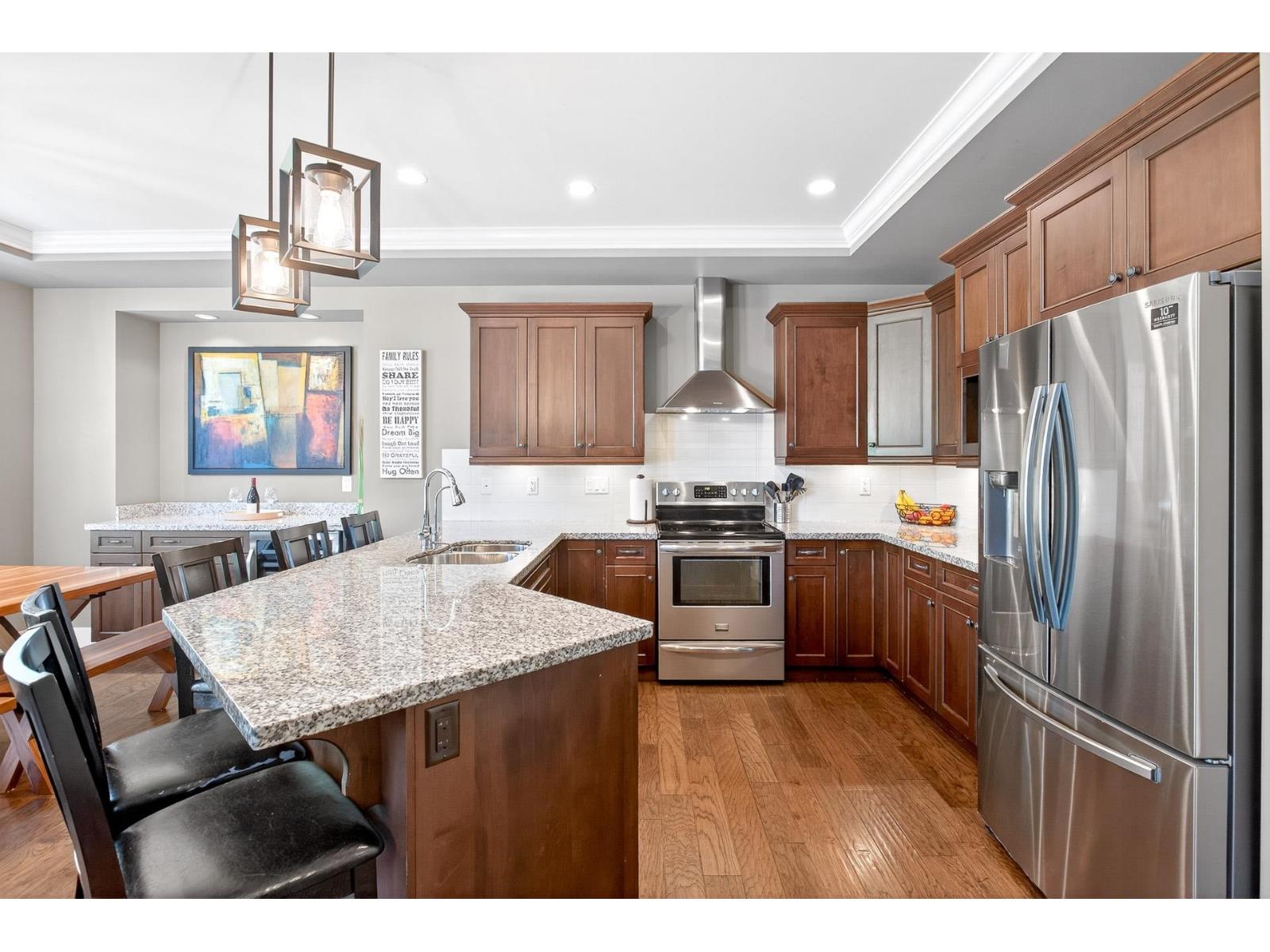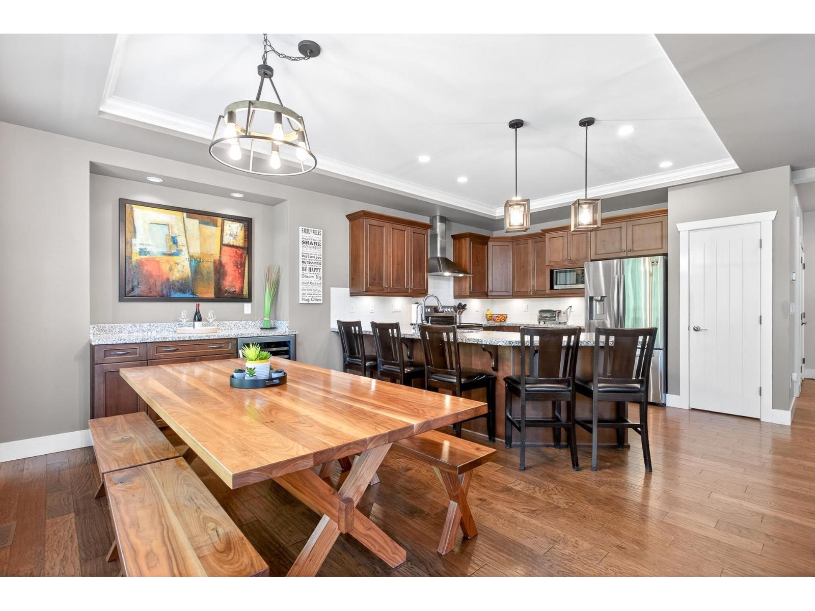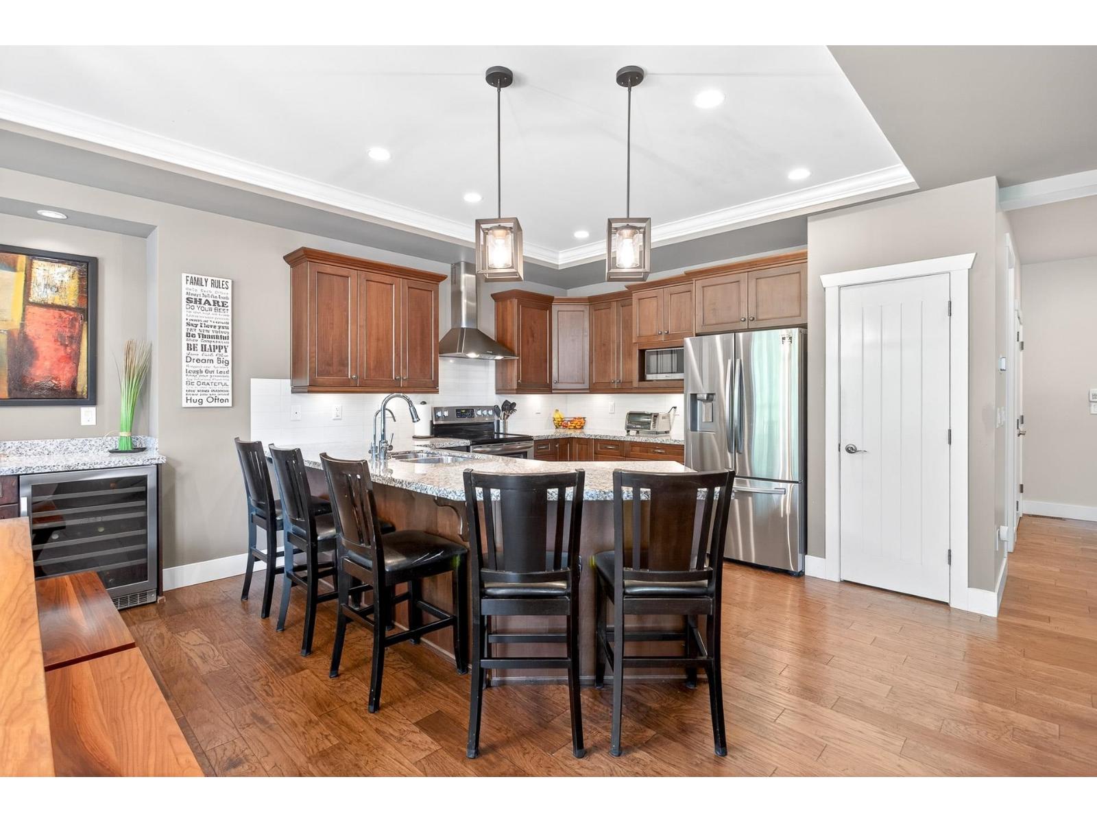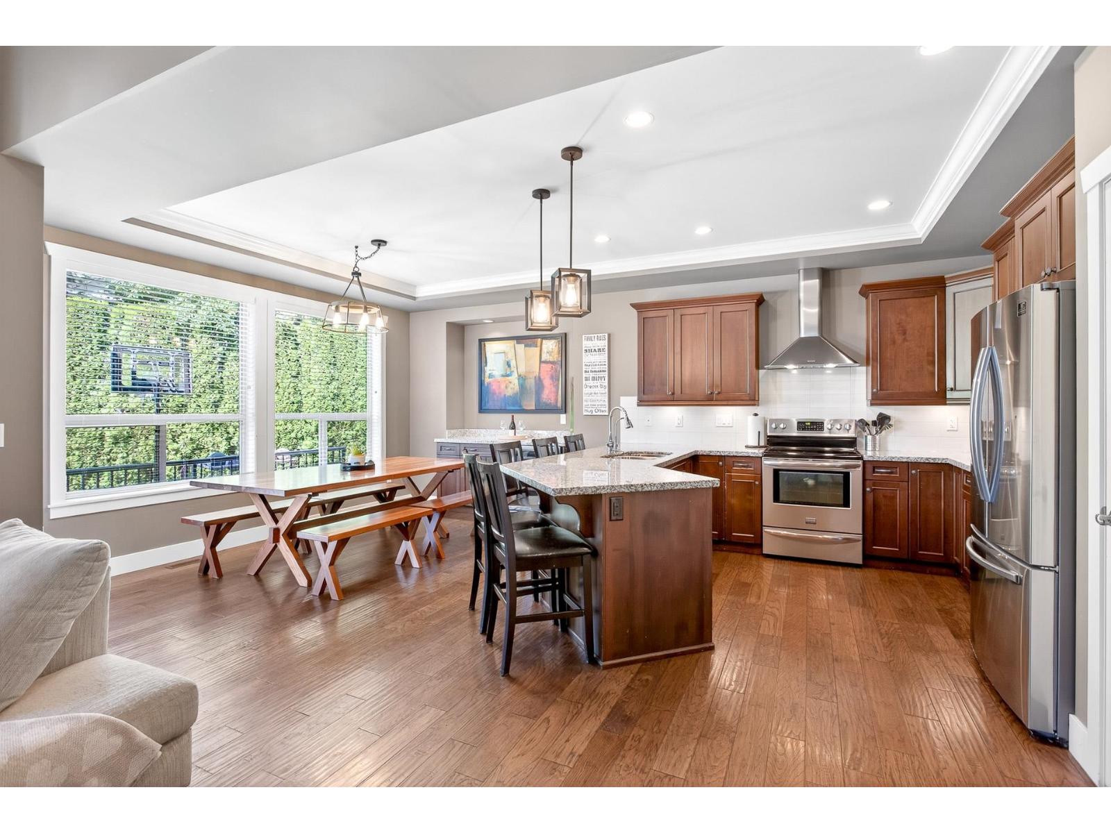 A stunning RAB home in Yorkson South. The great room offers a bright open space with oversized windows and double-height ceilings, a gourmet kitchen, granite counters and rich dark cabinetry. Dining area includes a built-in buffet/wine bar. Wired for surround sound and incl A/C for your comfort. Upstairs are four large bedrooms with a spa-inspired ensuite and walk-in closet. Downstairs has a rec room, exercise area, and an additional unfinished 500 sq ft for a potential mtg helper. The lot is one of the biggest in the neighborhood, featuring a large patio patio with a vaulted roof, chandelier, a built-in heater for year-round use and stamped concrete . As well as hot tub and low-maintenance turf, 12' privacy cedars w/ irrigation. Minutes from parks, schools, shopping and hwy access (id:44393)