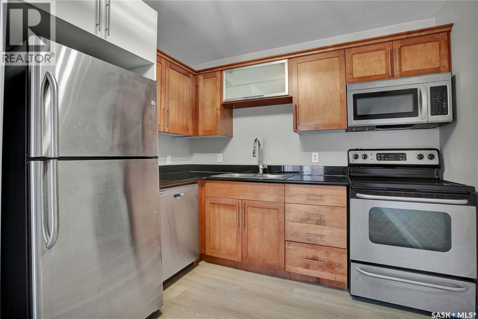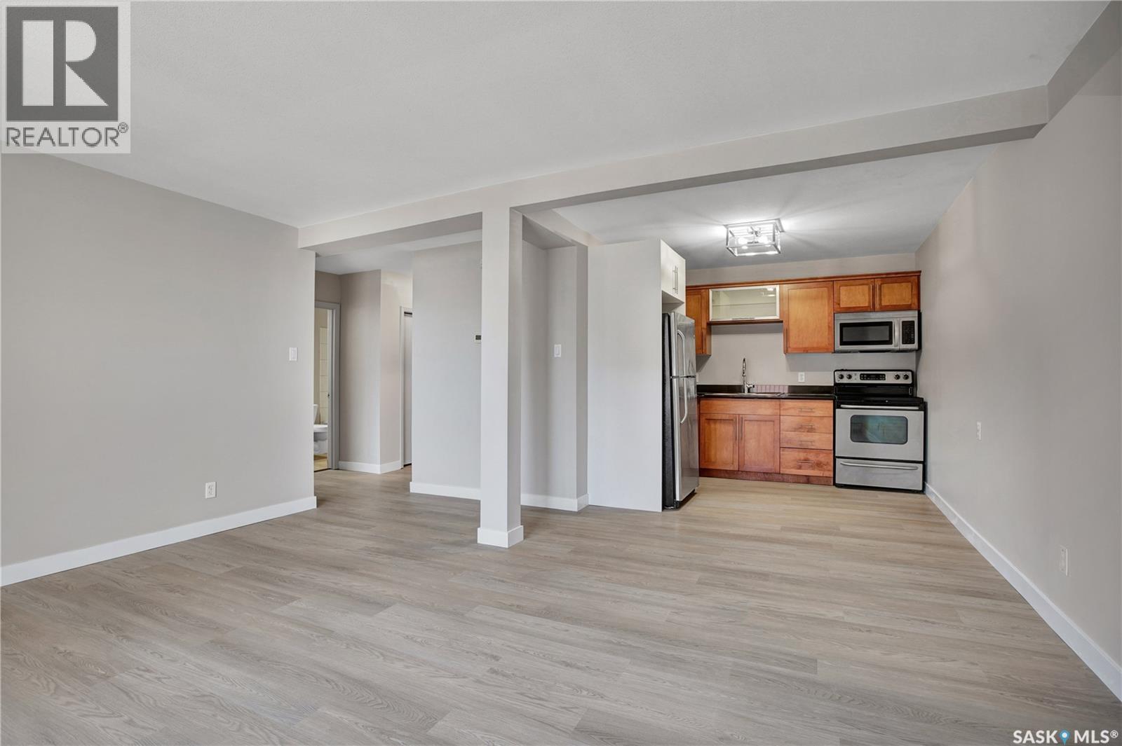 $340.58 MonthlyWelcome to The Opus! Enjoy modern finishes like maple cabinetry, sleek granite counters, and stainless-steel appliances in this boutique style 1-bedroom condo. The bedroom is bright and oversized for comfort. You will also find A/C and in-suite laundry setting the stage for your own self-contained sanctuary. With upgraded chandelier light fixtures, brand new vinyl flooring, and other new finishes, it is a property with an excellent return on investment. Situated close to all amenities, and a quick bus ride or drive to the U of S, this is the ideal home for students, professionals, investors, or anyone looking for convenience and value. The close proximity to everything from shopping to banking (situated behind Dodge City) makes the main floor bike room the perfect motivation to save money, consider the environment, and get fit in those warmer months. Bonus: PETS ARE ALLOWED with some restrictions so check with your favourite REALTOR® for more details and to schedule your showing! (id:44393)