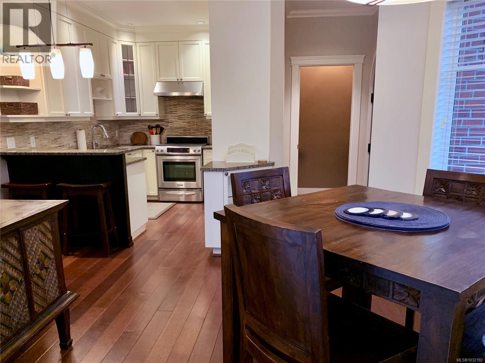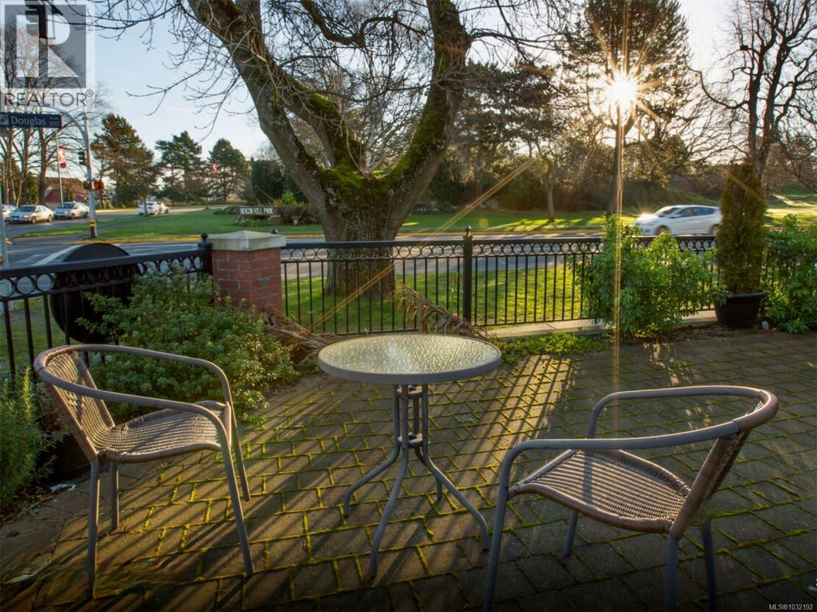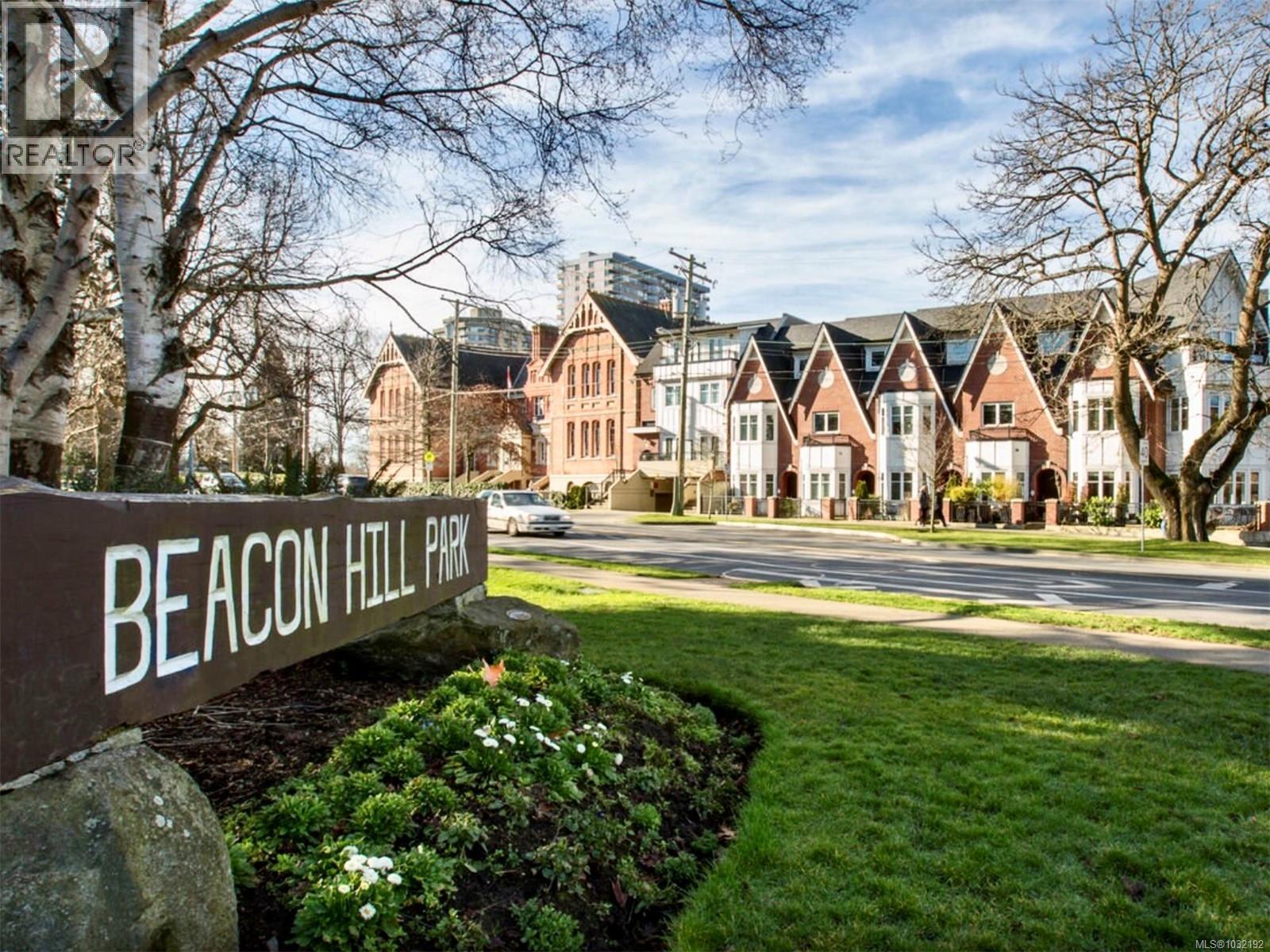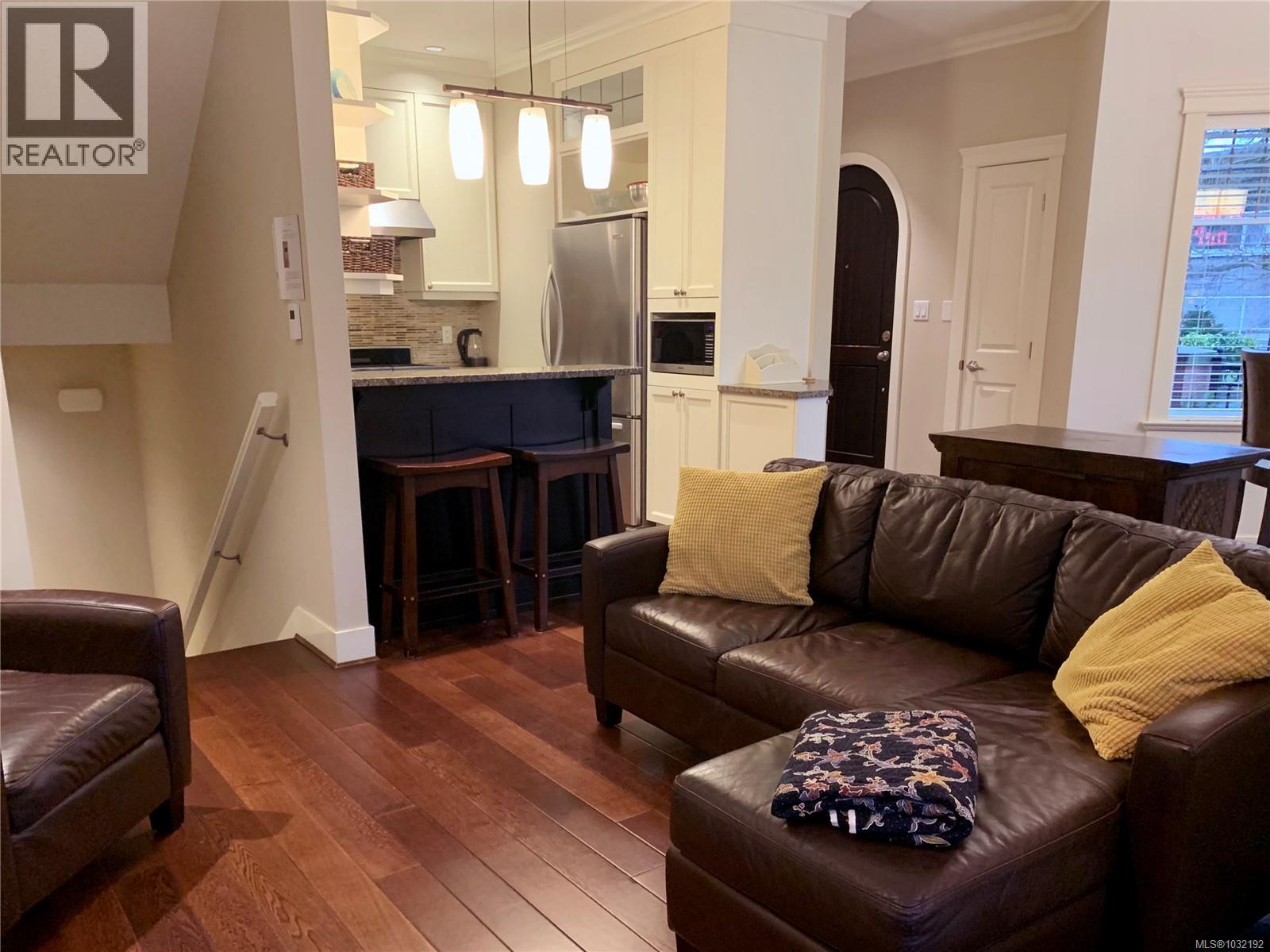 $630 MonthlyThis elegant 3-bed, 2.5 bath brownstone-style townhouse offers almost 1700 sq/ft of refined living on 3 levels and is ideally positioned just steps from Beacon Hill Park, the Royal BC Museum, Parliament, and Inner Harbour. The main level showcases a gourmet kitchen with granite counters and stainless Kitchen Aid appliances, a gas range, breakfast bar, an electric fireplace, and lovely east-facing views toward the park. French doors extend the living space onto an expansive patio with natural gas hookup for effortless outdoor cooking and entertaining. The second level includes two bright bedrooms with bay windows, a full bath, laundry, and a media room or office. The top level is dedicated to a generous primary suite, walk-in closet, Juliet balcony, and a spa-inspired ensuite with heated floors and oversized walk-in shower. This unit comes with 2 parking stalls, an EV charger and is the only unit in the complex with direct access to the secure underground garage. Well run strata. (id:44393)