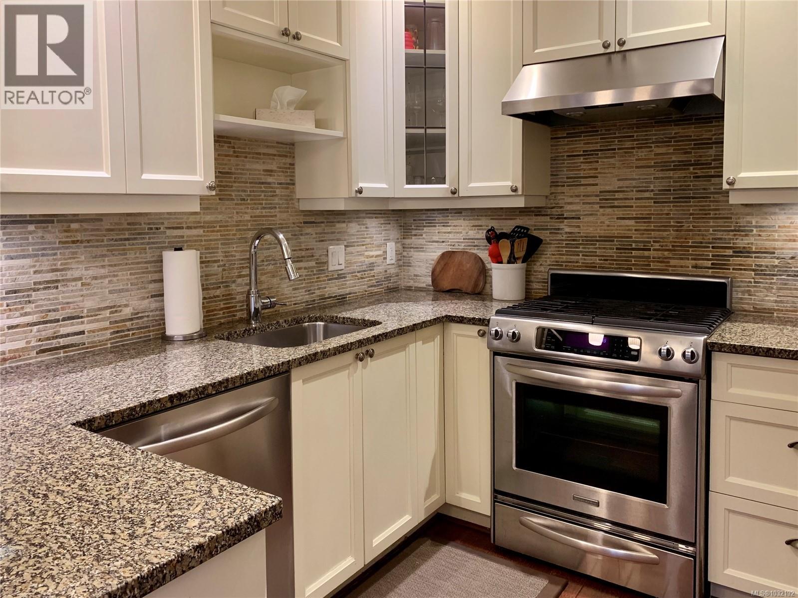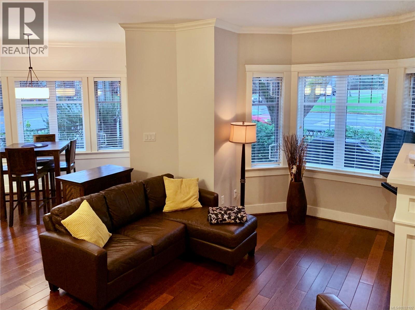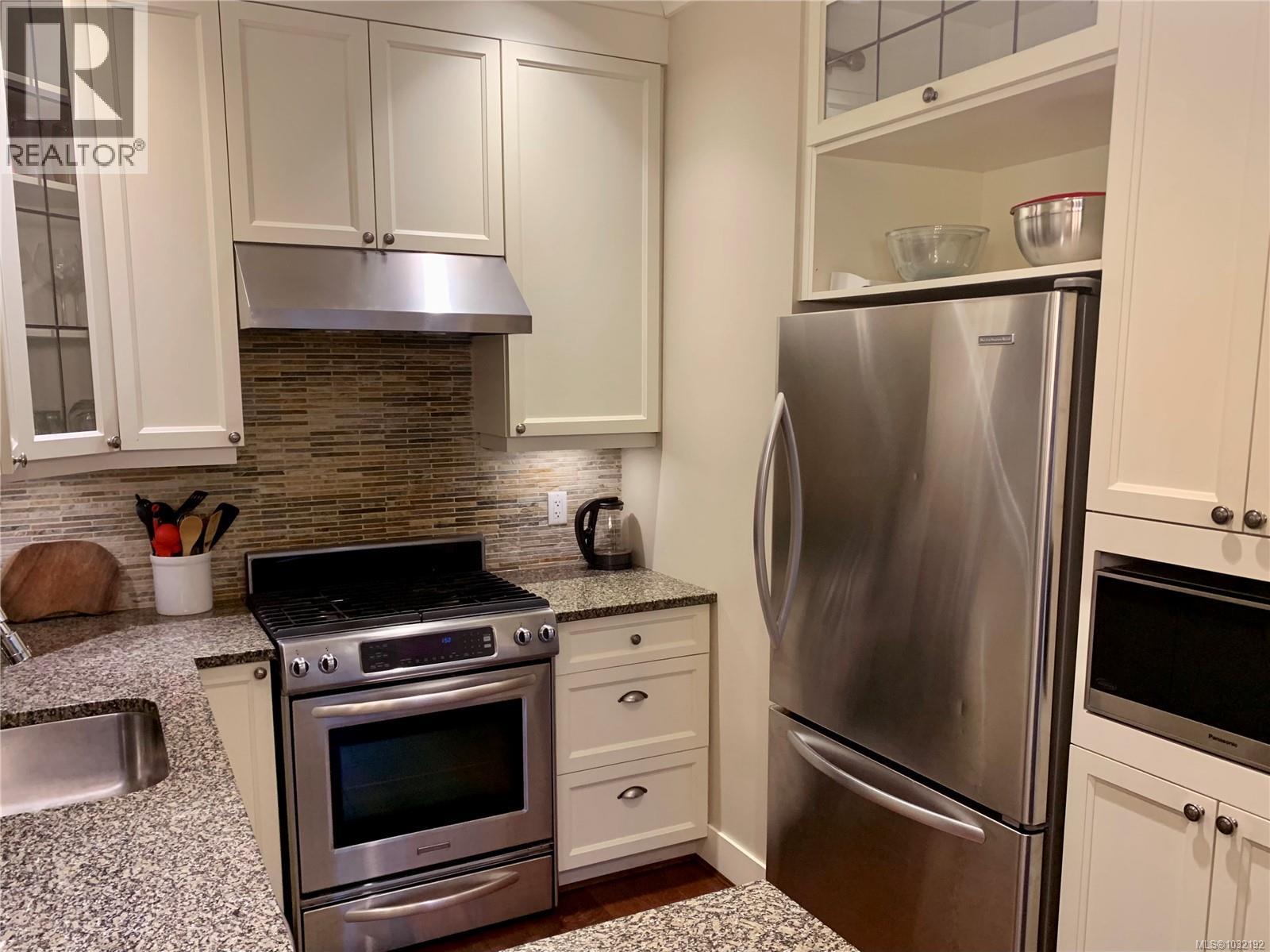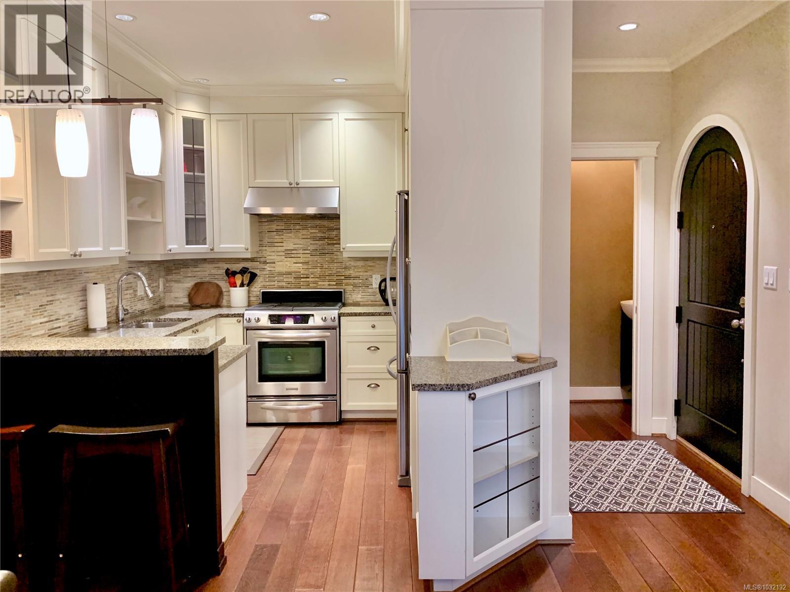$630 MonthlyThis elegant 3-bed, 2.5 bath brownstone-style townhouse offers almost 1700 sq/ft of refined living on 3 levels and is ideally positioned just steps from Beacon Hill Park, the Royal BC Museum, Parliament, and Inner Harbour. The main level showcases a gourmet kitchen with granite counters and stainless Kitchen Aid appliances, a gas range, breakfast bar, an electric fireplace, and lovely east-facing views toward the park. French doors extend the living space onto an expansive patio with natural gas hookup for effortless outdoor cooking and entertaining. The second level includes two bright bedrooms with bay windows, a full bath, laundry, and a media room or office. The top level is dedicated to a generous primary suite, walk-in closet, Juliet balcony, and a spa-inspired ensuite with heated floors and oversized walk-in shower. This unit comes with 2 parking stalls, an EV charger and is the only unit in the complex with direct access to the secure underground garage. Well run strata. (id:44393)