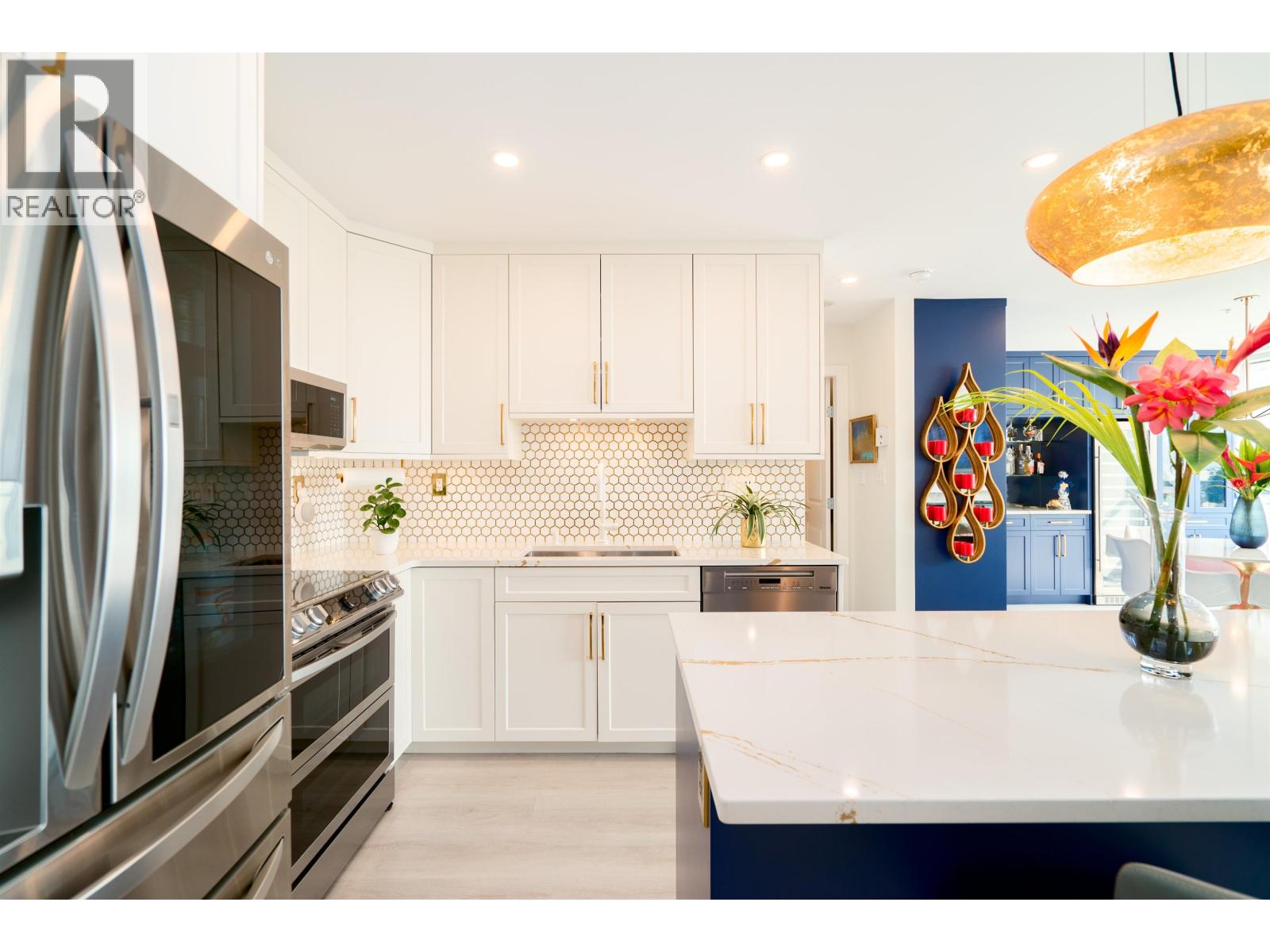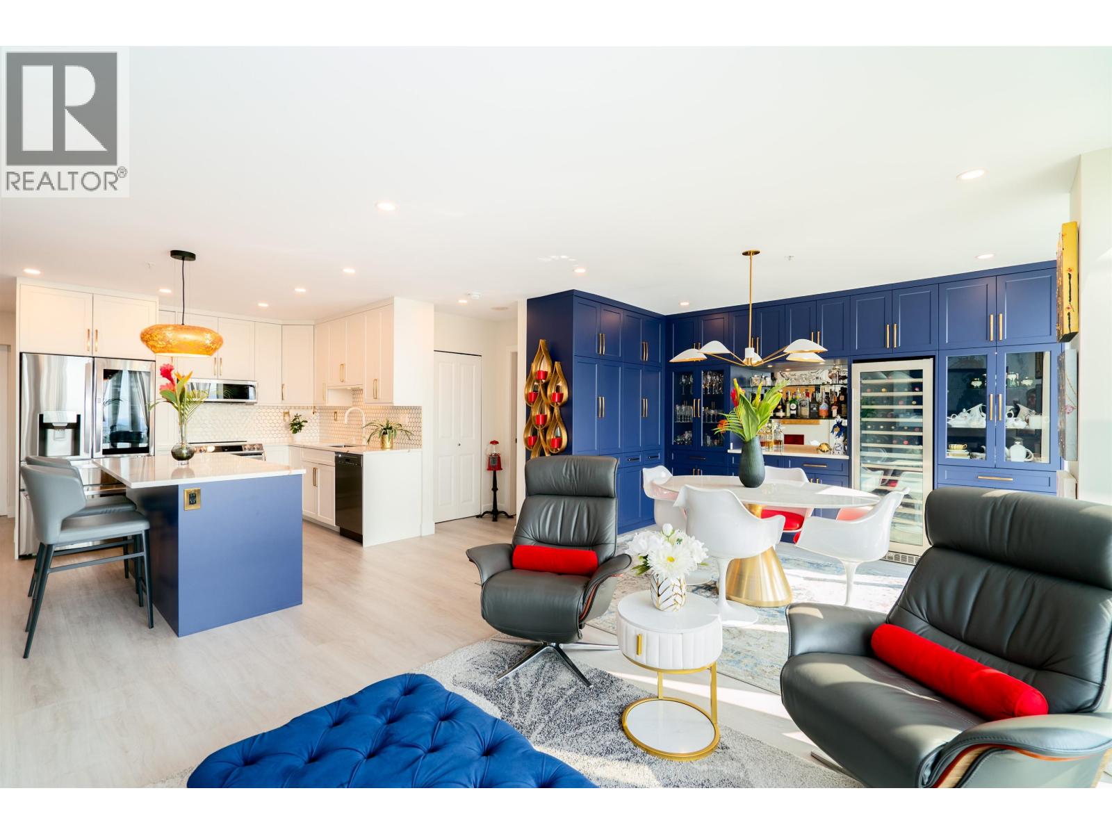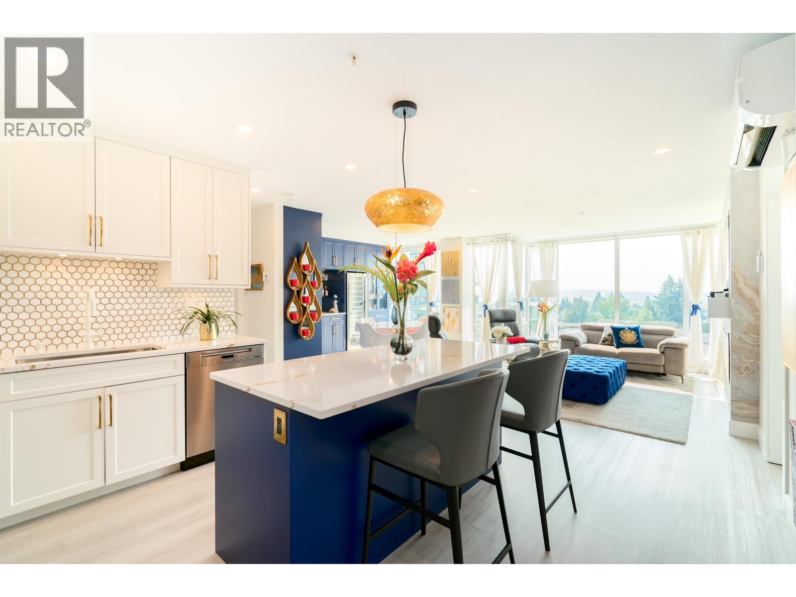 $565.51 MonthlyWelcome to the Solaris. Presenting a fully renovated, extra large 1 bed, 2 den luxury Pitt Meadows condo. West-facing, enjoy dramatic sunsets & stunning views of Vancouver, Gulf Islands, and Coast Mountains from every corner of this home. The stylishly renovated kitchen boasts new cabinetry, state-of-the-art appliances, and a sprawling island. The former 2nd bedroom is now an exquisite dining area with a stone top bar and 135-bottle wine fridge. Modern comforts include Mitsubishi A/C, bright vinyl flooring, & remote-controlled blinds. Flexible design allows easy conversion back to 2 beds. Pristinely outfitted office & pantry (dens) make every inch of this home completely functional. A must see! 1 parking, 1 storage. Call for full reno list/details. OPEN HOUSE: Sat. Sept 27, 12-2pm (id:44393)