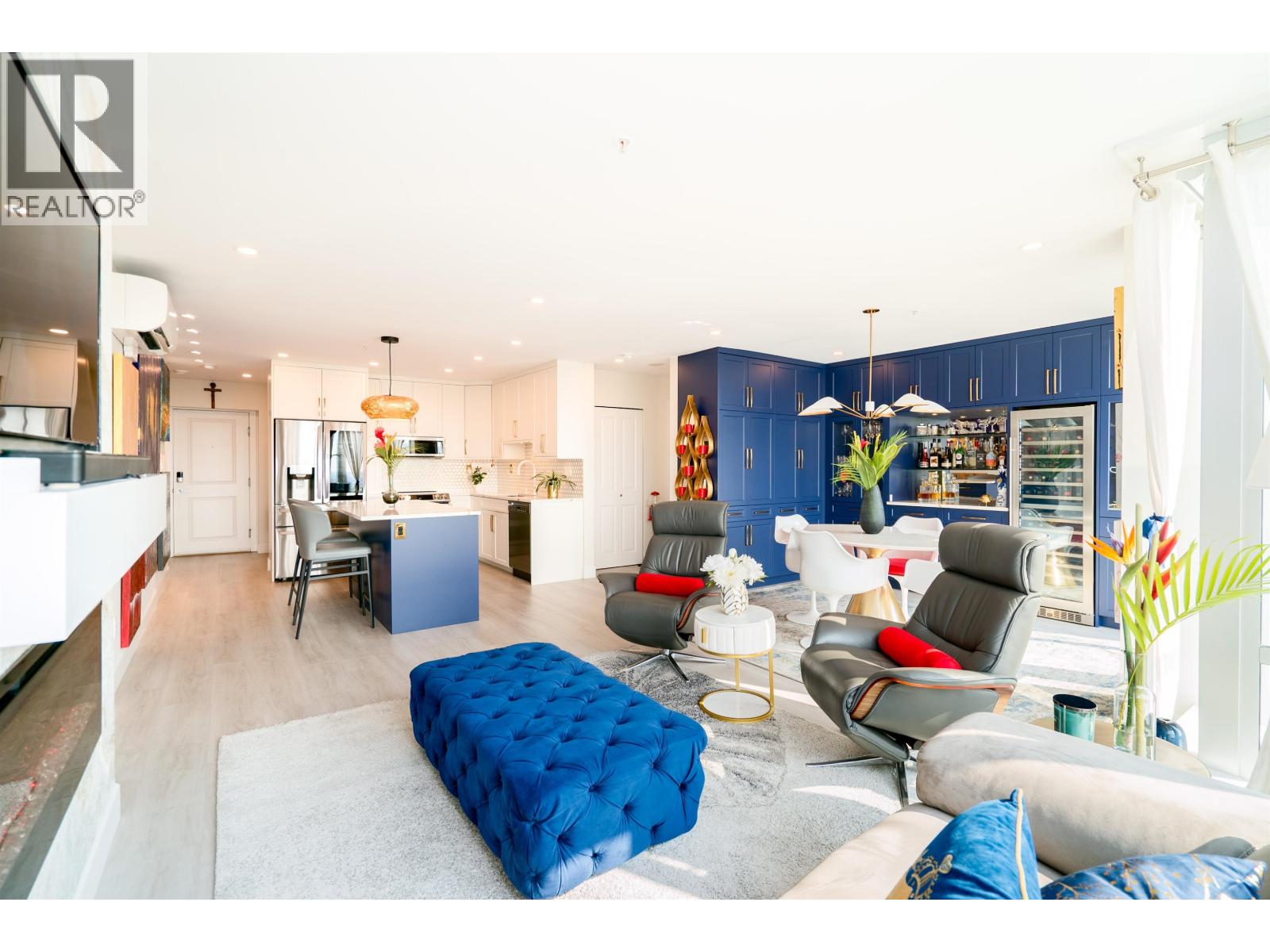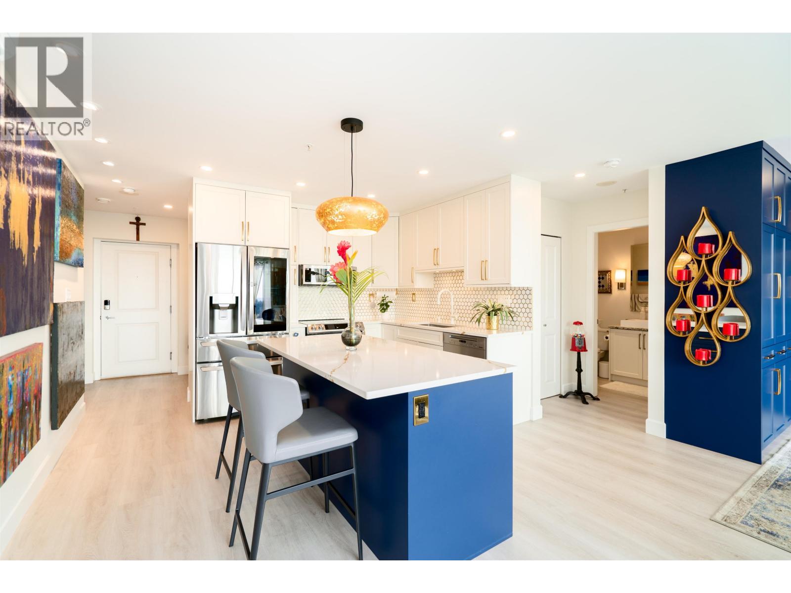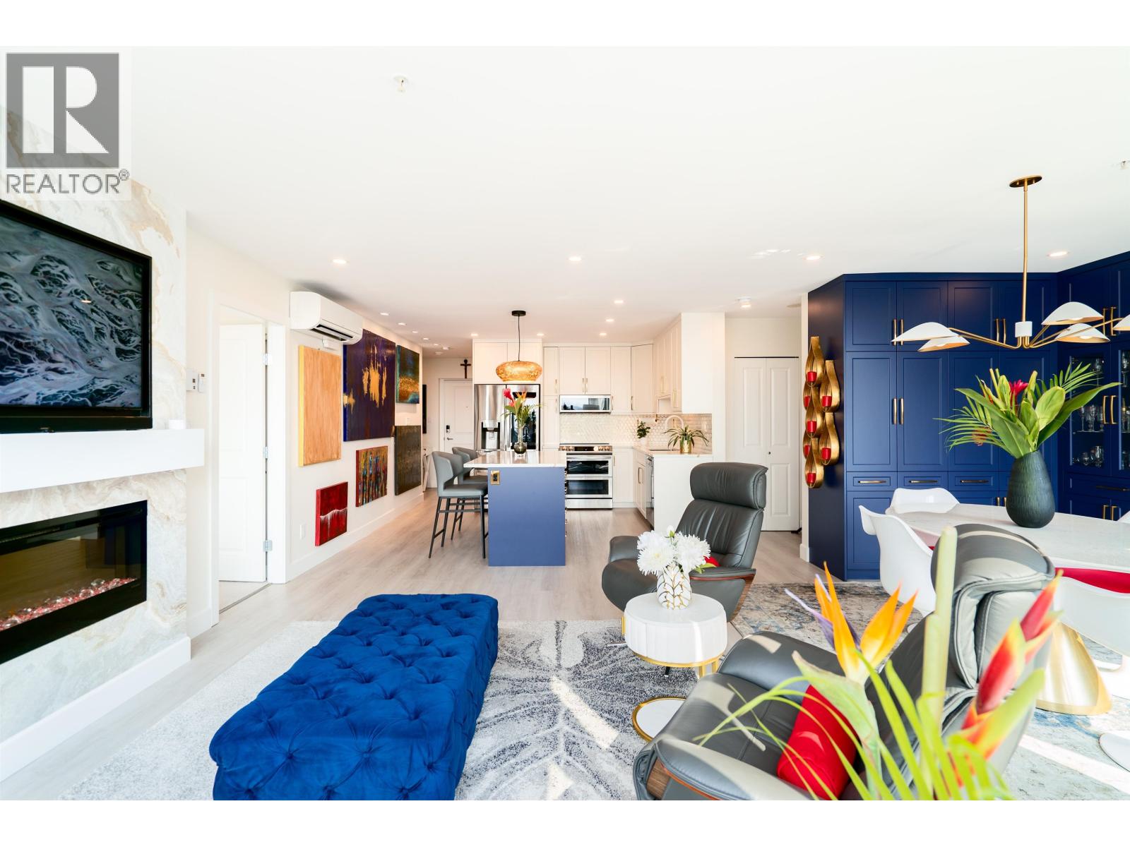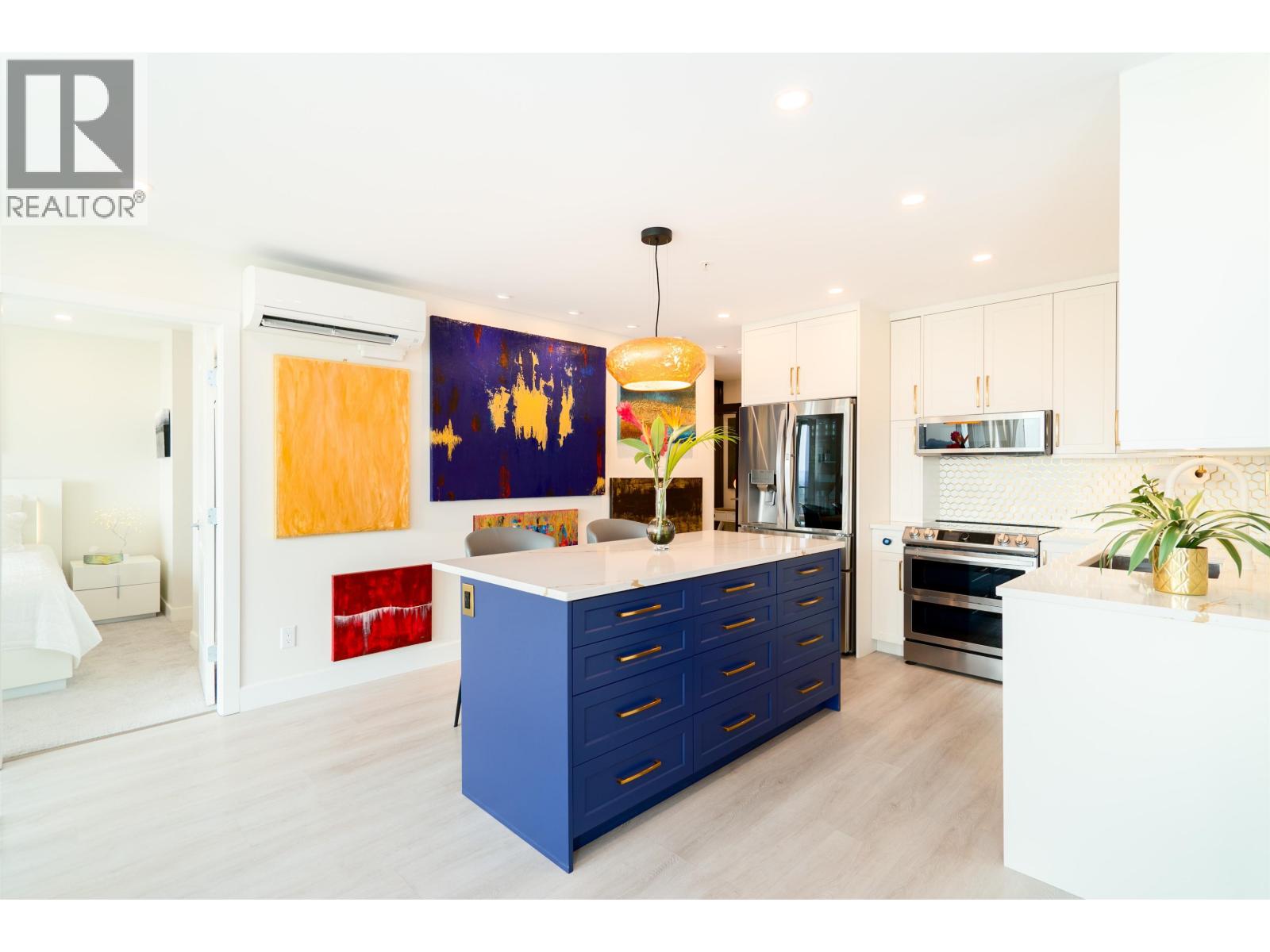 $565.51 MonthlyWelcome to the Solaris. Presenting a fully renovated, extra large 1 bed, 2 den luxury Pitt Meadows condo. West-facing, enjoy dramatic sunsets & stunning views of Vancouver, Gulf Islands, and Coast Mountains from every corner of this home. The stylishly renovated kitchen boasts new cabinetry, state-of-the-art appliances, and a sprawling island. The former 2nd bedroom is now an exquisite dining area with a stone top bar and 135-bottle wine fridge. Modern comforts include Mitsubishi A/C, bright vinyl flooring, & remote-controlled blinds. Flexible design allows easy conversion back to 2 beds. Pristinely outfitted office & pantry (dens) make every inch of this home completely functional. A must see! 1 parking, 1 storage. Call for full reno list/details. OPEN HOUSE: Sat. Sept 27, 12-2pm (id:44393)