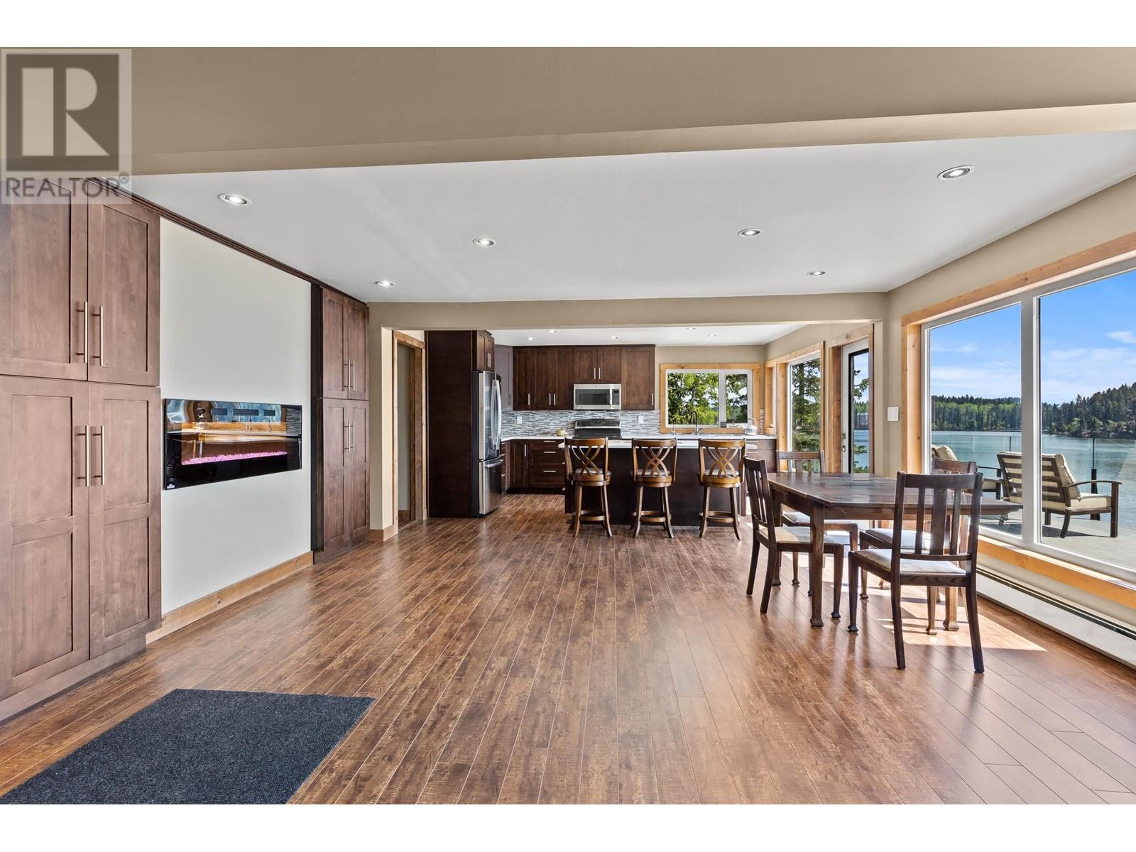 This Bridge Lake Waterfront Paradise Property is a remarkable estate offering a wide range of features and recreational activities. The property is situated on a south-facing 257' of waterfront, providing stunning lake views. Bridge Lake is known for its natural beauty and offers various activities throughout the year. The estate is situated on over one acre of land, offering ample space and privacy. This house features three bedrooms and three bathrooms providing comfortable living space. An added bonus is a luxurious four person sauna for those relaxing and enjoying those rejuvenating days. The open concept design ensures that every room in the house offers incredible lake views. Extensive renovations and upgrades have been carried out over the last decade including triple pane windows, 63 gallon hot water tank, RO system, laundry room, new flooring throughout, water filtration system, hydronic heating system, insulation, roof, siding, generator, and more. (id:44393)