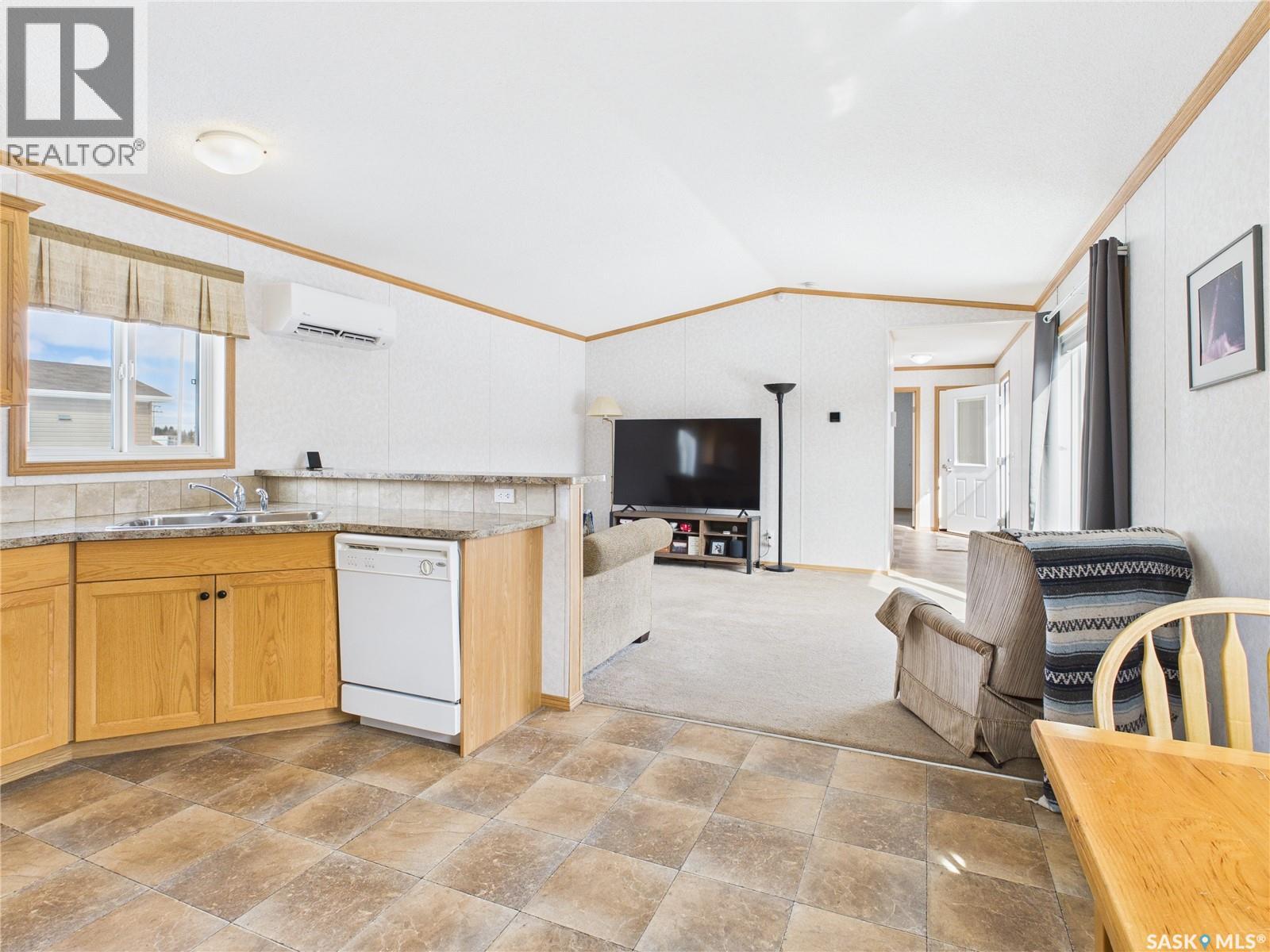 Looking for a move-in ready home with space, privacy, and thoughtful upgrades? This 2013 mobile located in the sweet town of Shellbrook delivers just that - on an owned .22-acre lot with no pad fees and room to spread out. With 3 bedrooms and 2 bathrooms, the layout offers great separation: two bedrooms and a full bath at one end, and the primary suite (with ensuite and laundry) at the other. The kitchen features maple cabinetry, under-cabinet lighting, a raised bar counter for casual dining, and space for a smaller table. The oversized living room provides flexibility for everyday living or entertaining family and friends. This home has been exceptionally well cared for, with upgrades including wall-mounted A/C units, dimmable light switches, and custom honeycomb blinds on every window, boosting the R-value and helping maintain consistent comfort year-round. Outside, the .22-acre lot has been landscaped with added lawn in the front and back, and stretches all the way to the back of the first row of trees, offering a natural backdrop and extra privacy. You’ll also find a freestanding carport, gravel driveway with space for 6–8 vehicles, and a covered pergola that’s perfect for catching some sunshine while having a cup of coffee in the morning. This property is clean, solid, and move-in ready - ideal for a first-time buyer, downsizer, re-starter, or anyone looking for a fresh start just on the outskirts of town. Be sure to check out the virtual walkthrough to get a closer look at everything this great home has to offer! (id:44393)