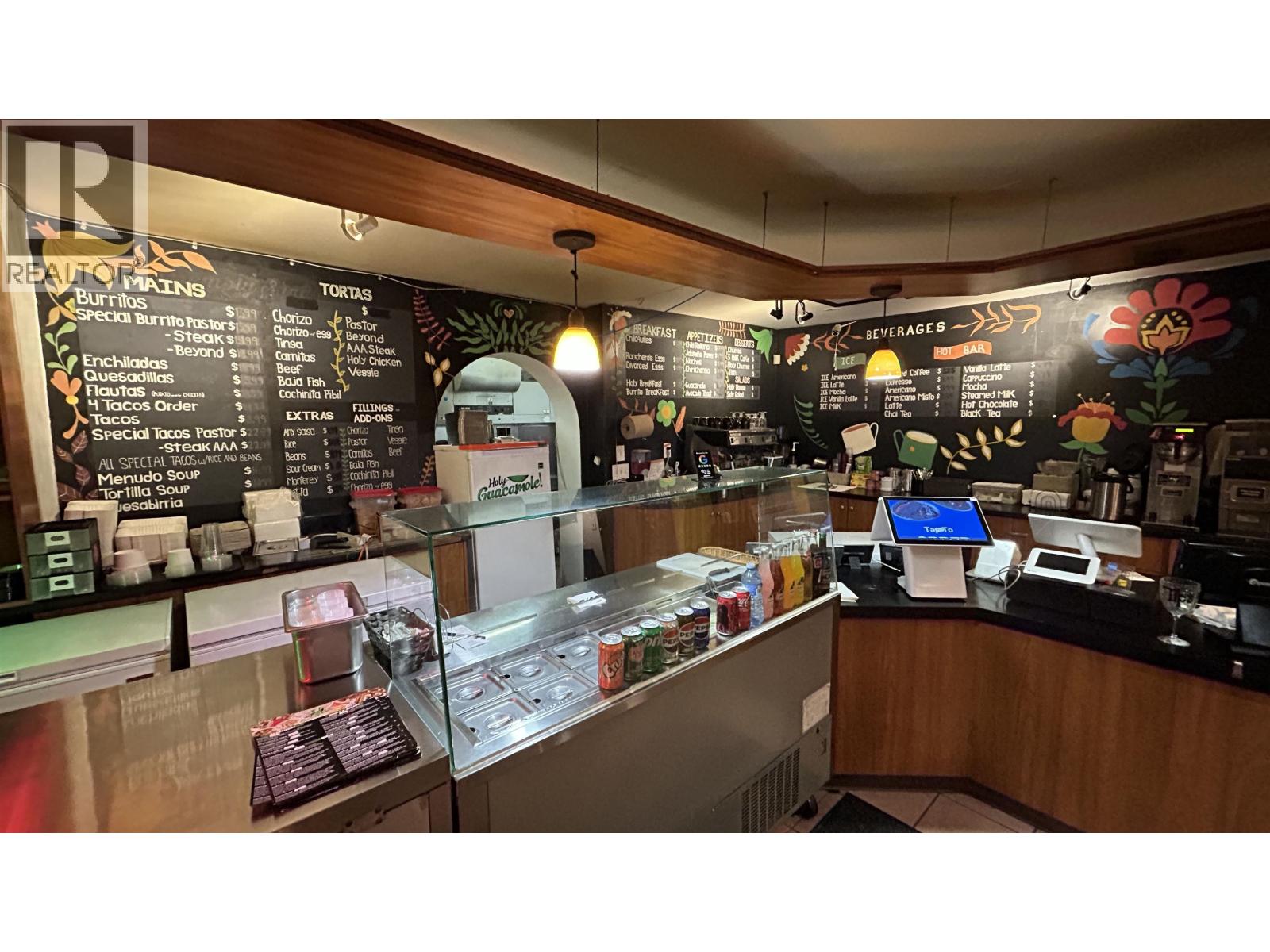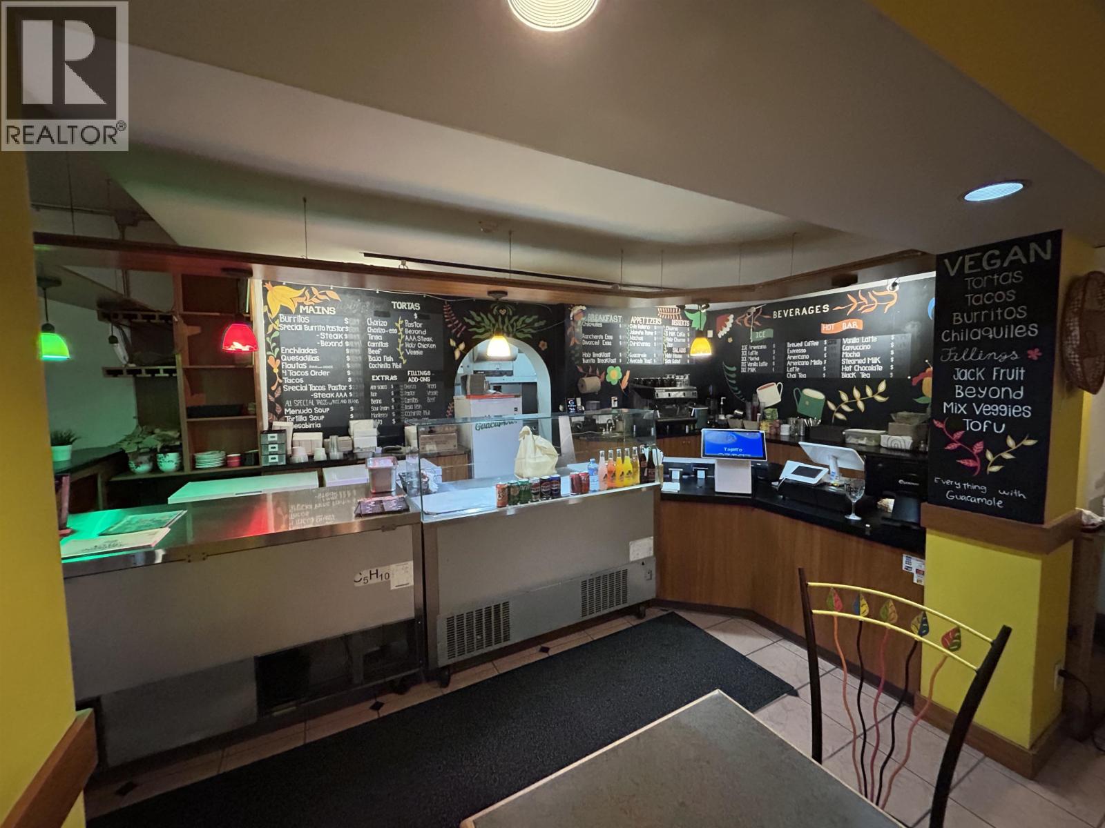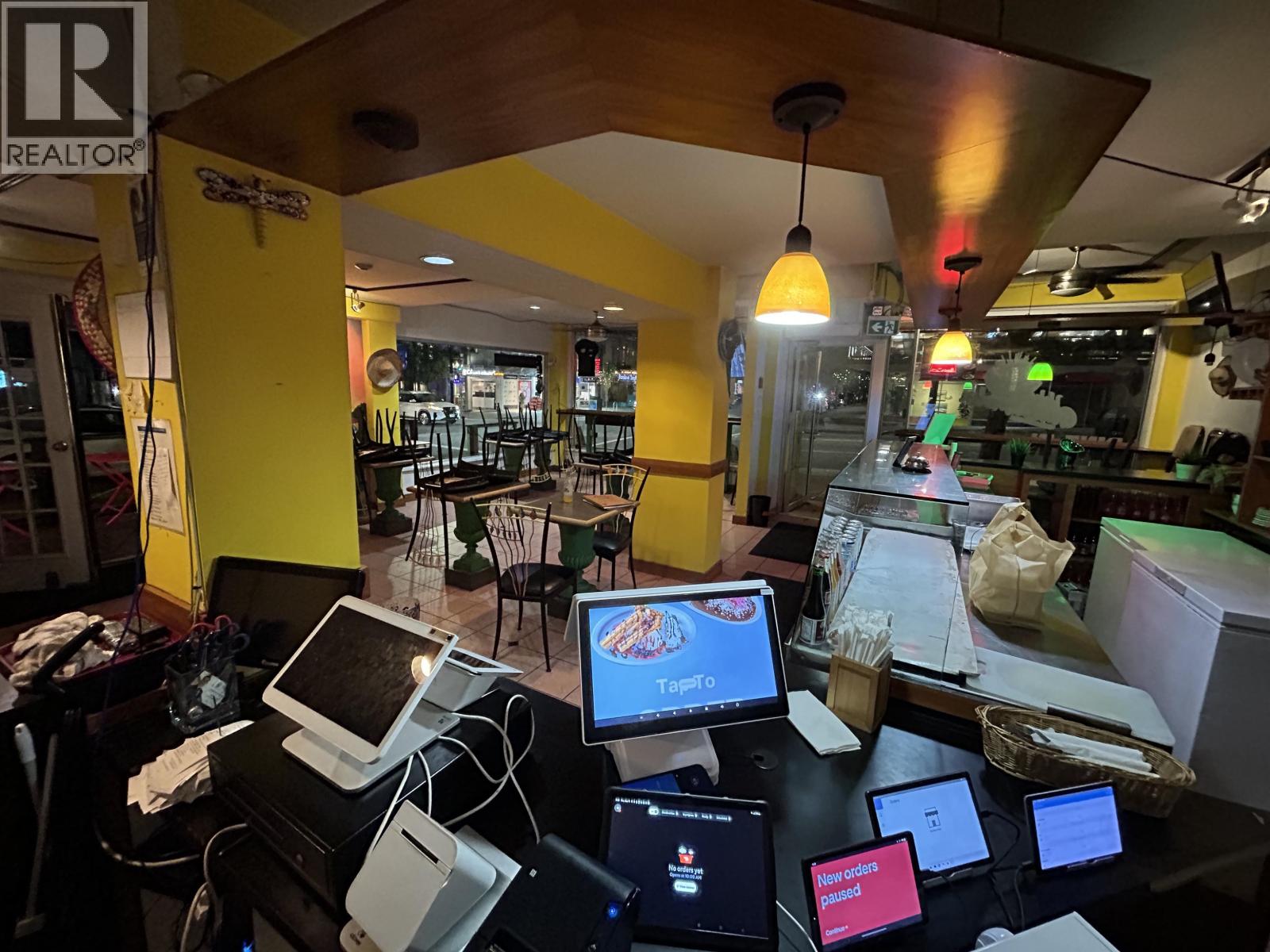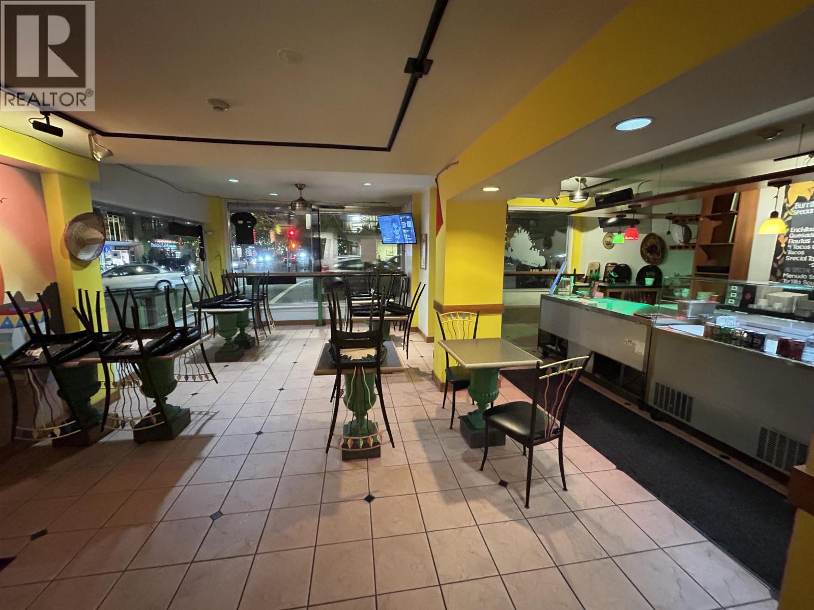 This excellent high-profile location at the corner of Denman and Robson Street is ready for its new owner. Super high sales volume. Lots of deliveries. This is a literal gold mine of a restaurant business. GILES 6 ft self-contained vented hood with fire suppression and a large grease trap allows for full cooking. There are 22 seats inside and 12 seats outside on the patio. The current gross rent is $11,900/month. A new 3-year lease is available from the Landlord. Easy to show with an appointment. Please do not disturb the business. TRADE NAME AND RELATED MEDIA IS NOT INCLUDED. (id:44393)