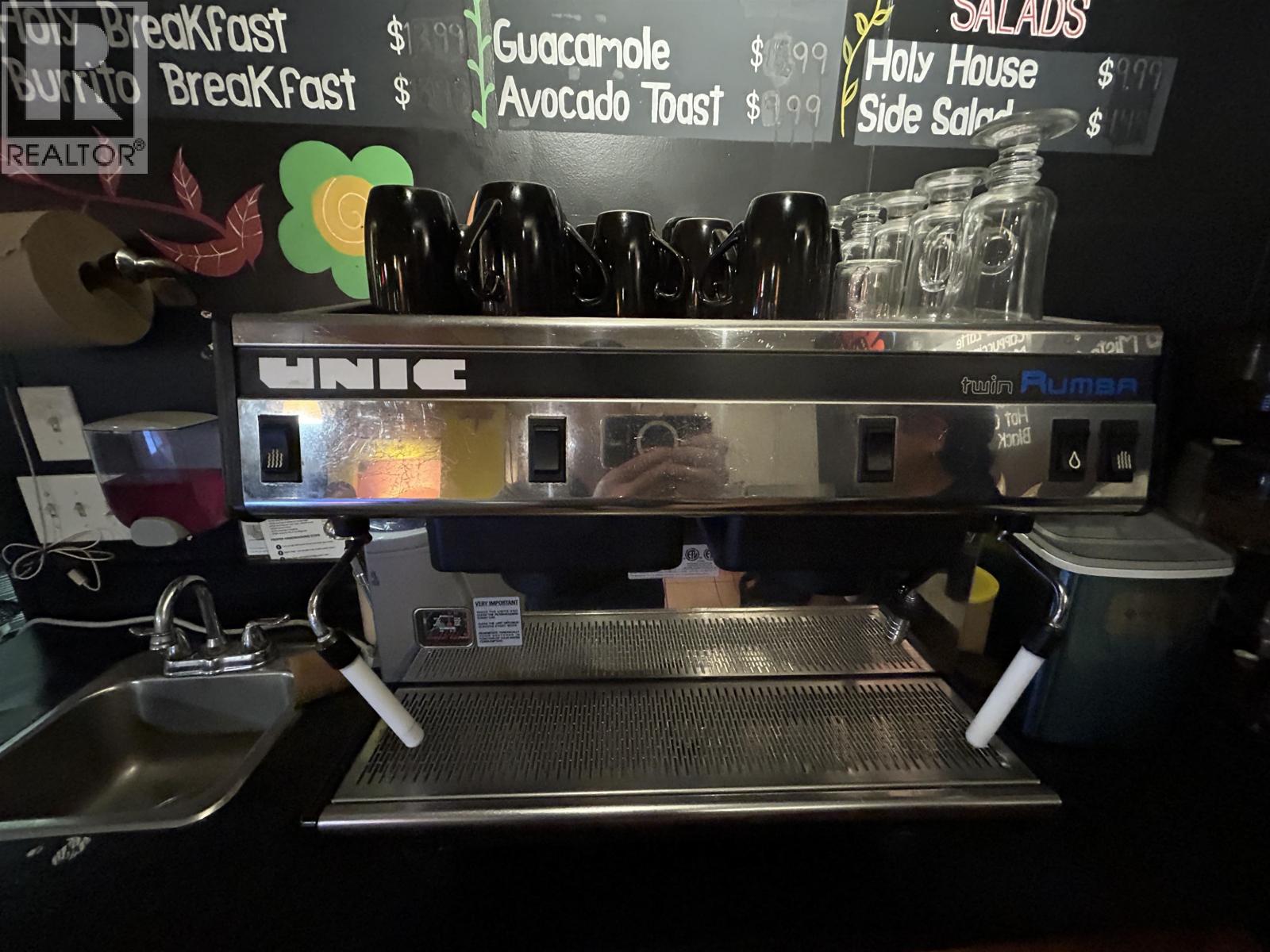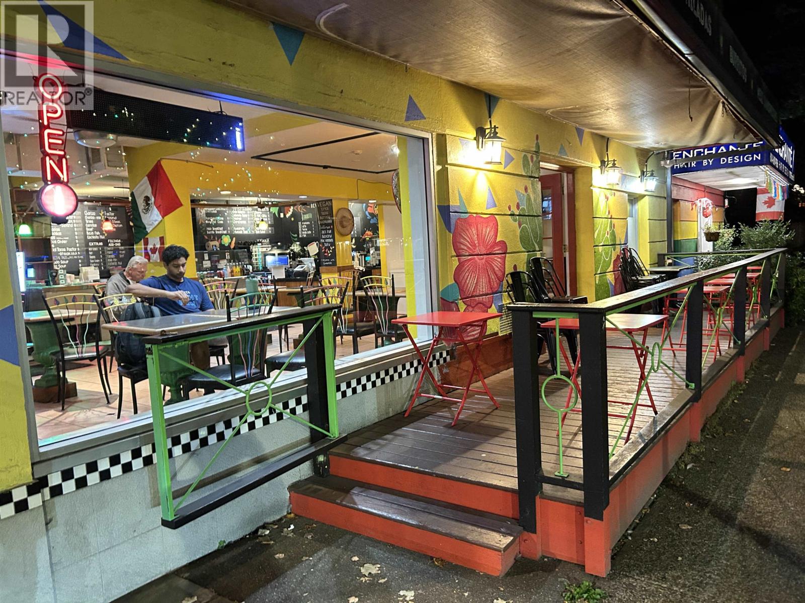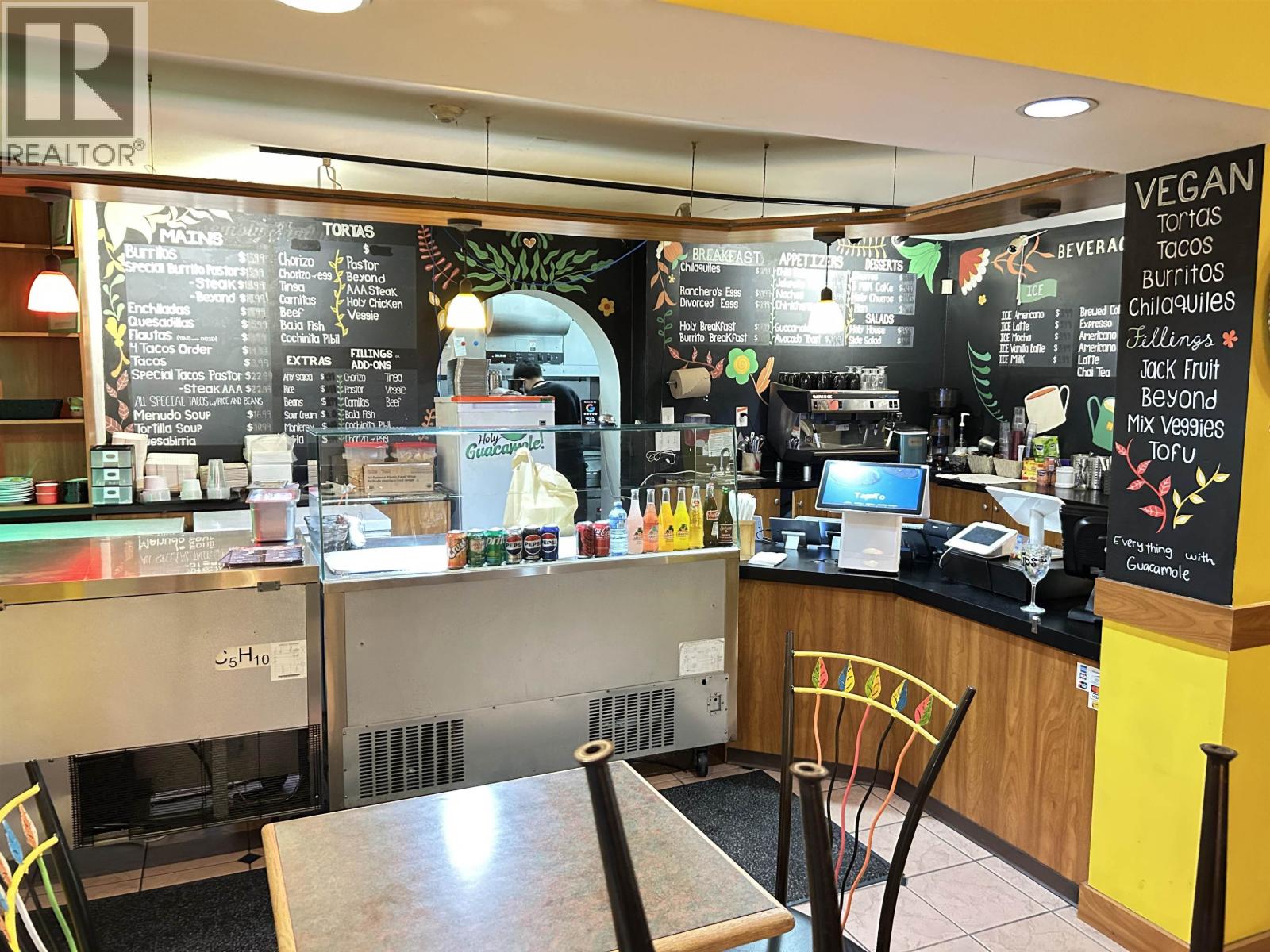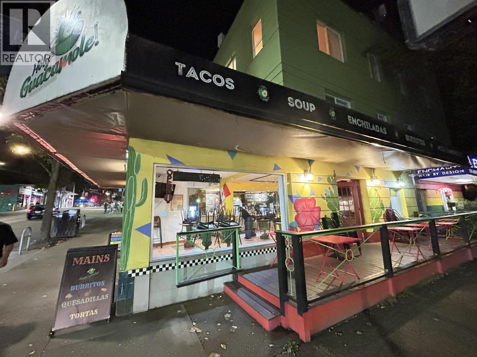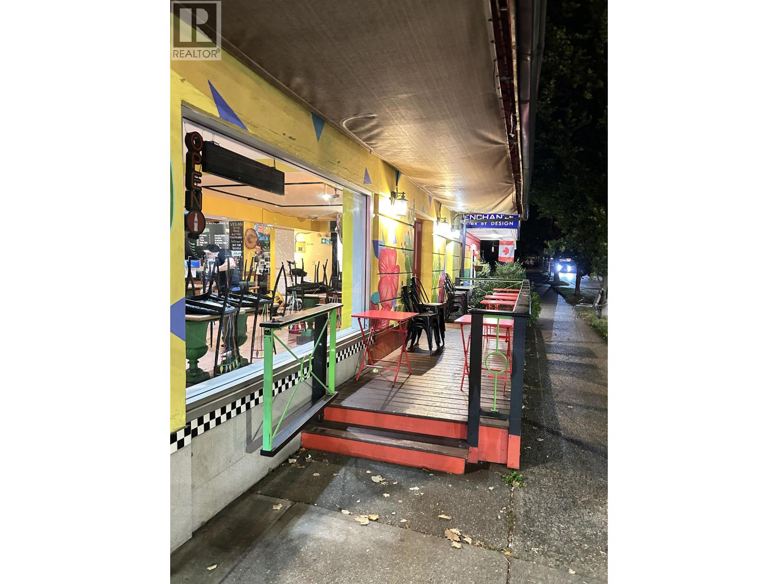 This excellent high-profile location at the corner of Denman and Robson Street is ready for its new owner. Super high sales volume. Lots of deliveries. This is a literal gold mine of a restaurant business. GILES 6 ft self-contained vented hood with fire suppression and a large grease trap allows for full cooking. There are 22 seats inside and 12 seats outside on the patio. The current gross rent is $11,900/month. A new 3-year lease is available from the Landlord. Easy to show with an appointment. Please do not disturb the business. TRADE NAME AND RELATED MEDIA IS NOT INCLUDED. (id:44393)