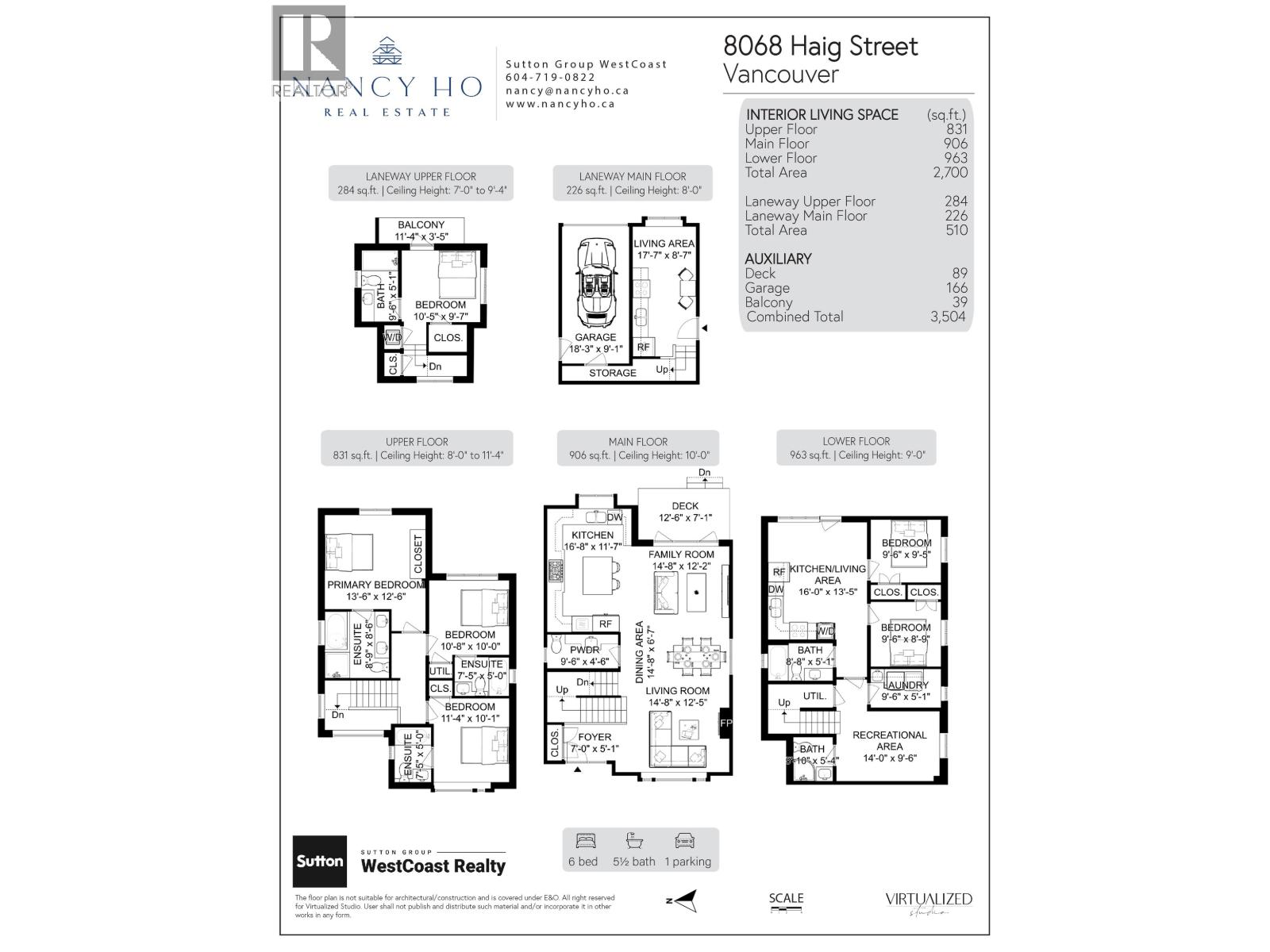This luxurious Westside home offers modern living and convenience with 10' ceilings, an open-concept layout, and a gourmet chef´s kitchen with high-end appliances and ample storage. Expansive accordion doors open to a rear deck, perfect for entertaining. Upstairs features three spacious ensuite bedrooms, including a spa-inspired primary ensuite with a steam shawer. The basement includes a recreation room, full bath, and laundry, plus a legal two-bedroom suite. A one-bedroom laneway house adds even more rental potential. Designed for efficiency and comfort, the home includes air conditioning, HRV, a high-efficiency furnace, and hot water tank, plus the remainder of the new home warranty for peace of mind. Parking includes a single-car garage and an open space. Located near David Lloyd George Elementary, Churchill Secondary, Marpole´s Shopping District, transit, parks, top private schools, UBC, YVR, and Richmond Malls, this home is a perfect blend of luxury and location. (id:44393)