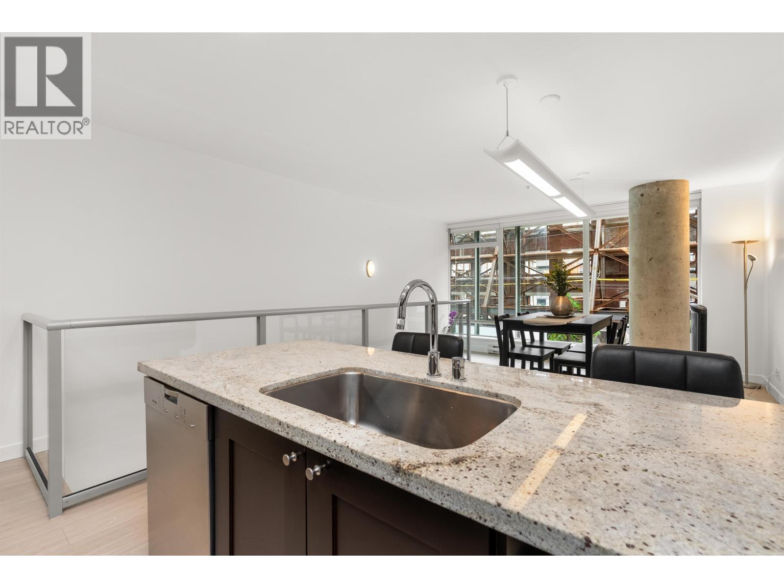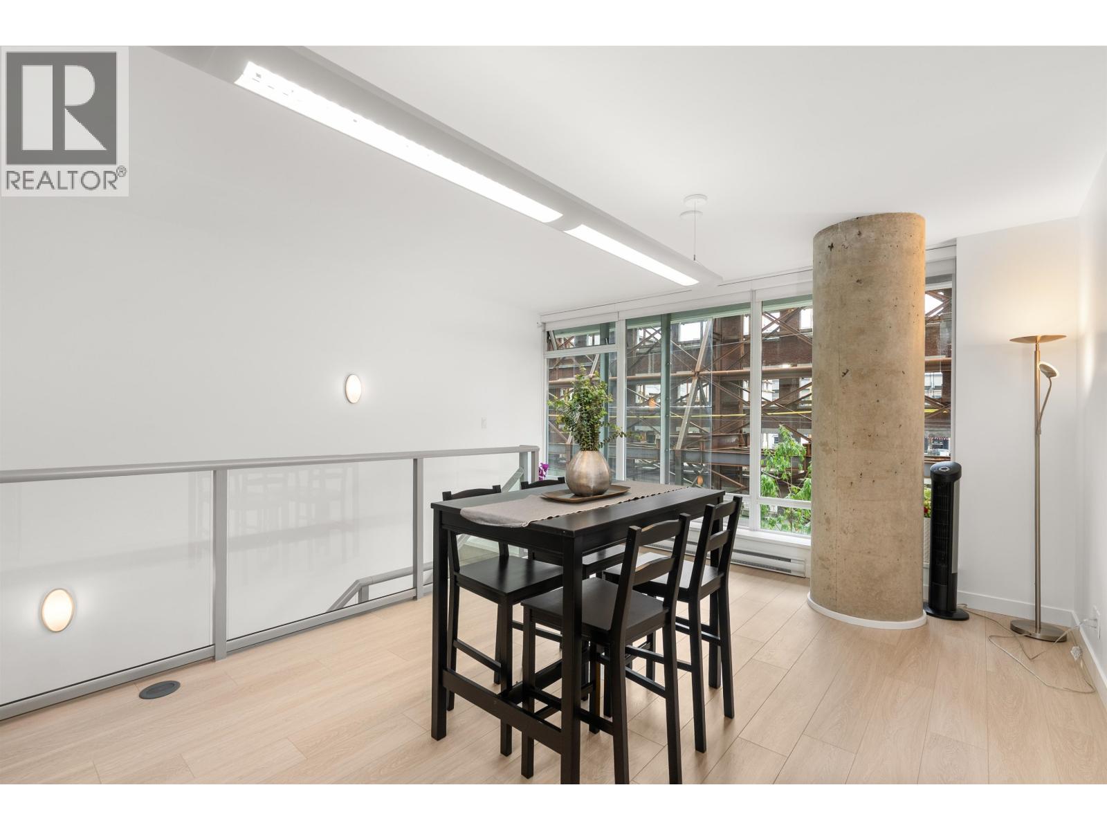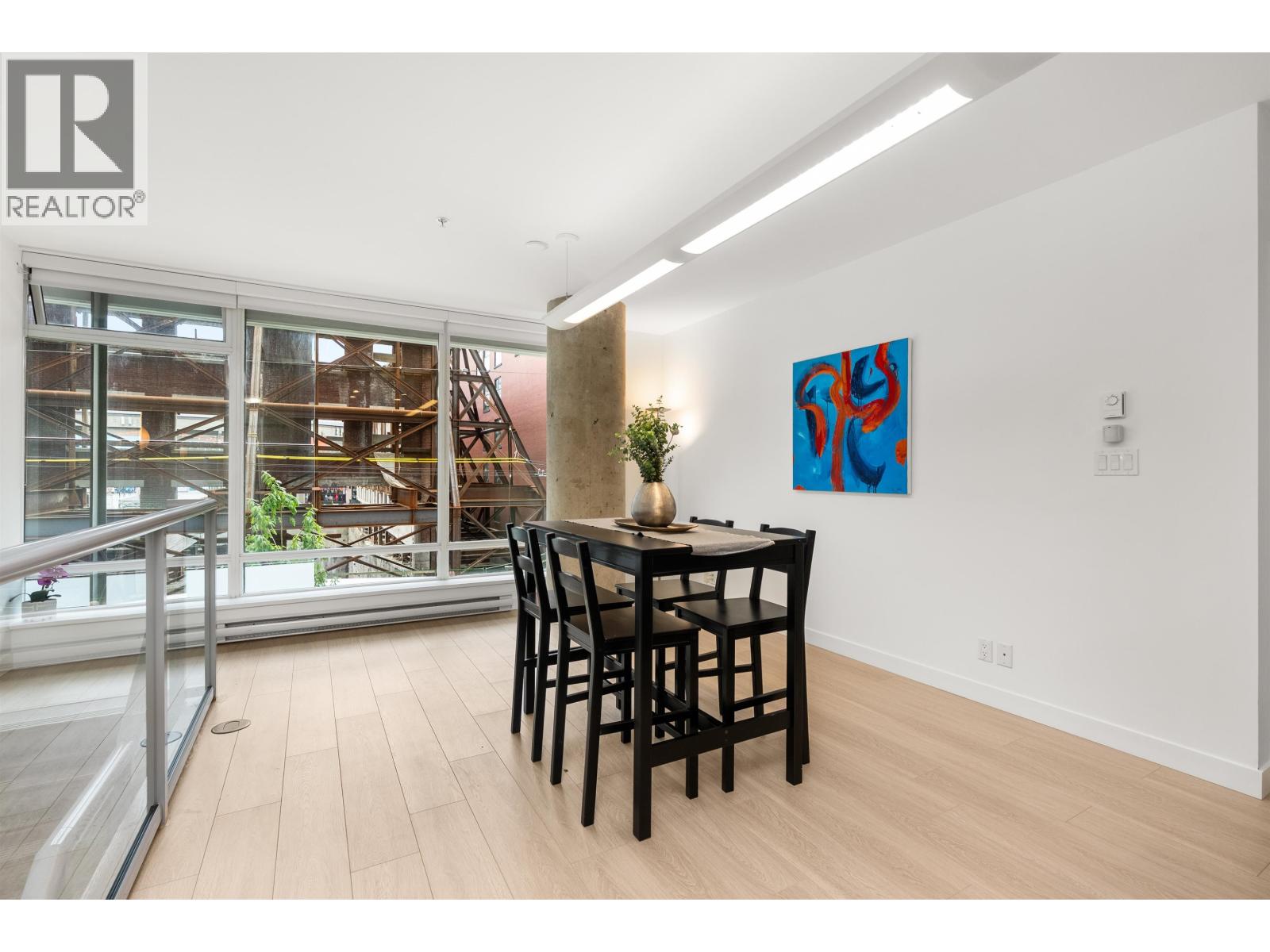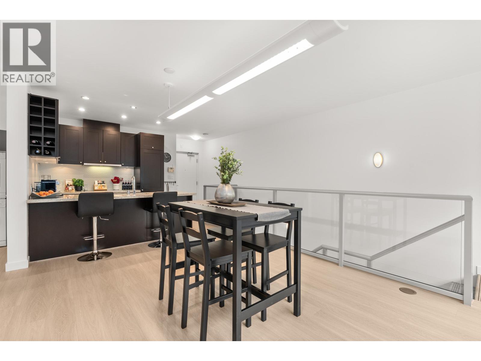 $892.26 MonthlyLIVE/WORK New York-style townhouse at Raffles...exceptionally rare! Offering 1 (or easily 2) bedroom, 2 bathrooms and 1183 sqft on the edge of Yaletown. The main level features soaring 13´ ceilings, floor-to-ceiling windows and a bright, flexible open space ideal for a studio, office, gallery or client-facing business. Upstairs is a private 1-bedroom suite with full bath, brand new washer/dryer, 9.5´ ceilings and a stylish kitchen with granite counters and breakfast bar. Recent updates include new laminate flooring, fresh paint and new blinds throughout. Each level has its own entrance - live upstairs and work below, or enjoy the whole home as a sophisticated urban residence. Proactive strata with concierge, one parking, and currently not subject to EHT. A truly unique offering! (id:44393)