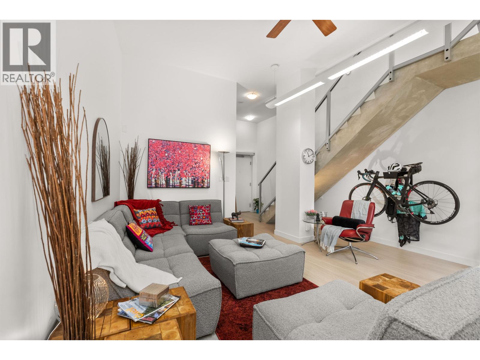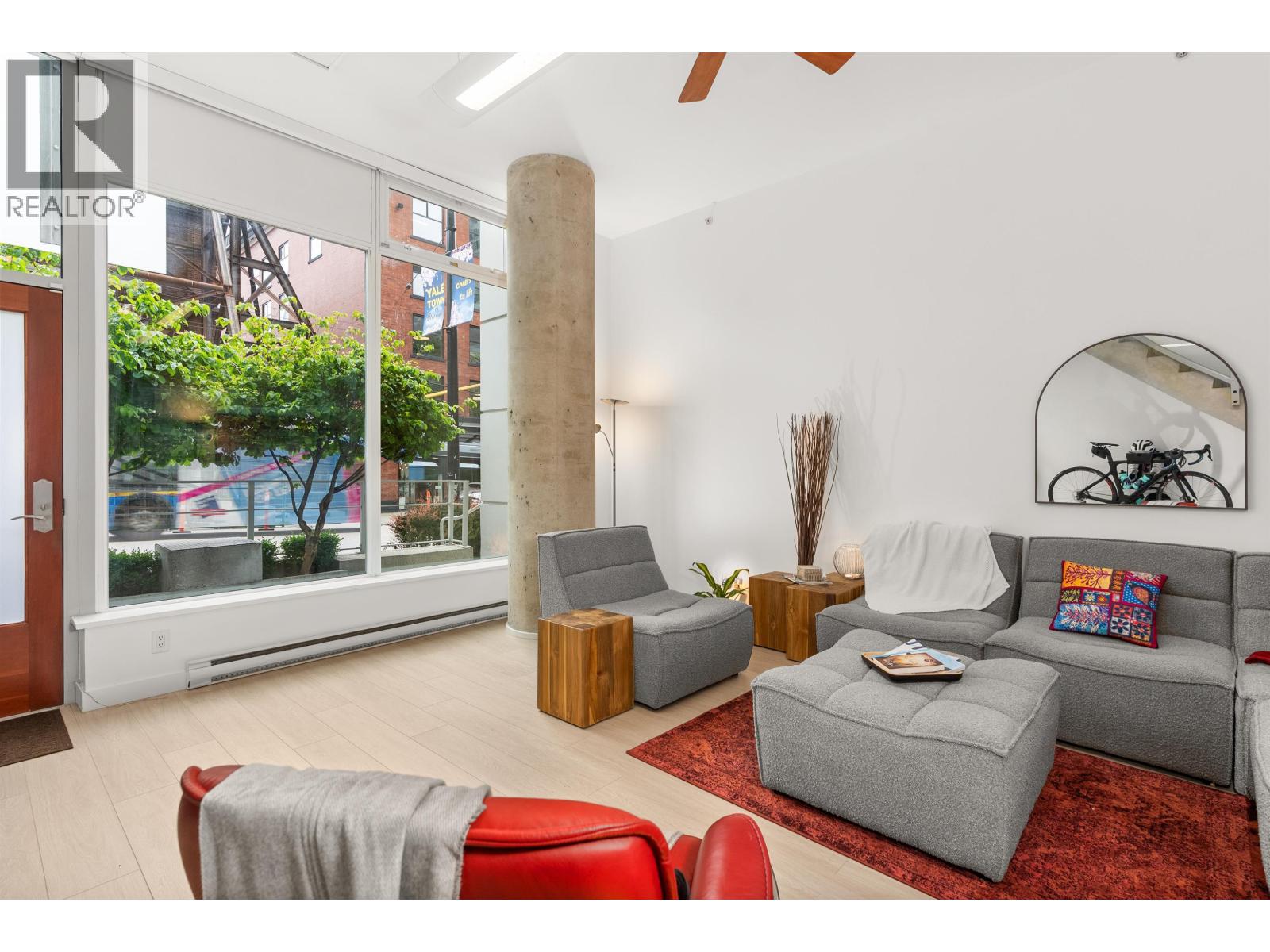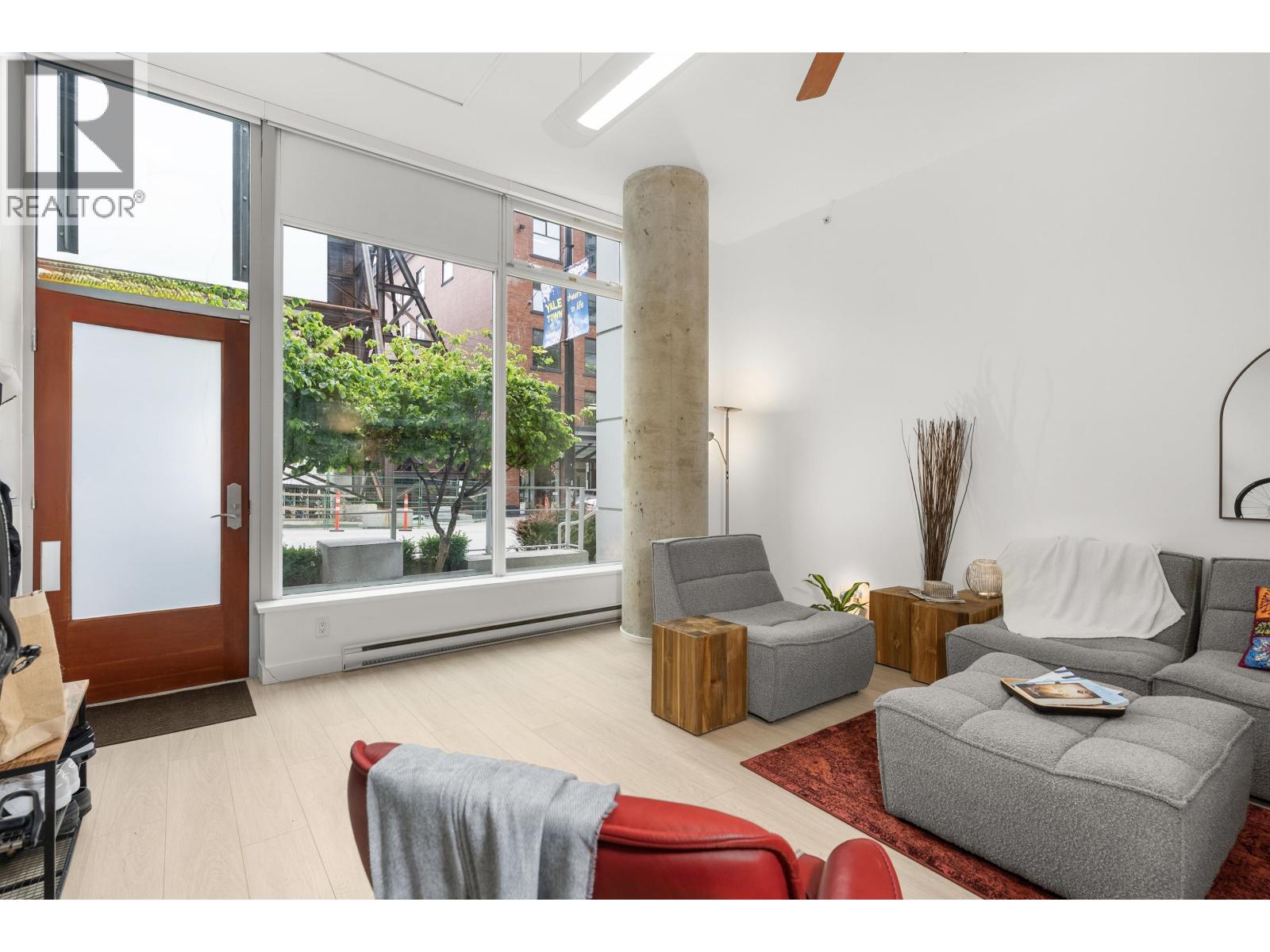 $892.26 MonthlyLIVE/WORK New York-style townhouse at Raffles...exceptionally rare! Offering 1 (or easily 2) bedroom, 2 bathrooms and 1183 sqft on the edge of Yaletown. The main level features soaring 13´ ceilings, floor-to-ceiling windows and a bright, flexible open space ideal for a studio, office, gallery or client-facing business. Upstairs is a private 1-bedroom suite with full bath, brand new washer/dryer, 9.5´ ceilings and a stylish kitchen with granite counters and breakfast bar. Recent updates include new laminate flooring, fresh paint and new blinds throughout. Each level has its own entrance - live upstairs and work below, or enjoy the whole home as a sophisticated urban residence. Proactive strata with concierge, one parking, and currently not subject to EHT. A truly unique offering! (id:44393)