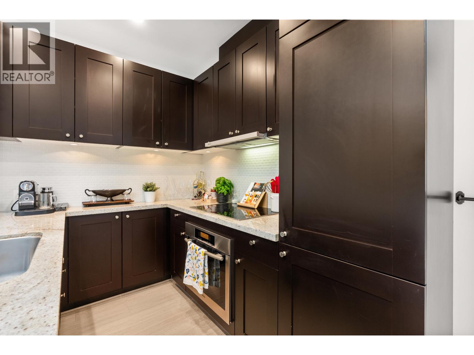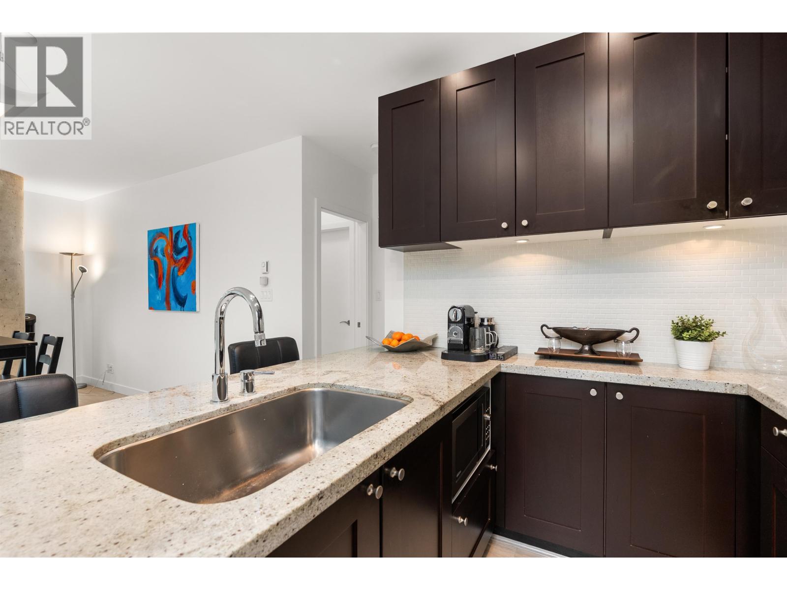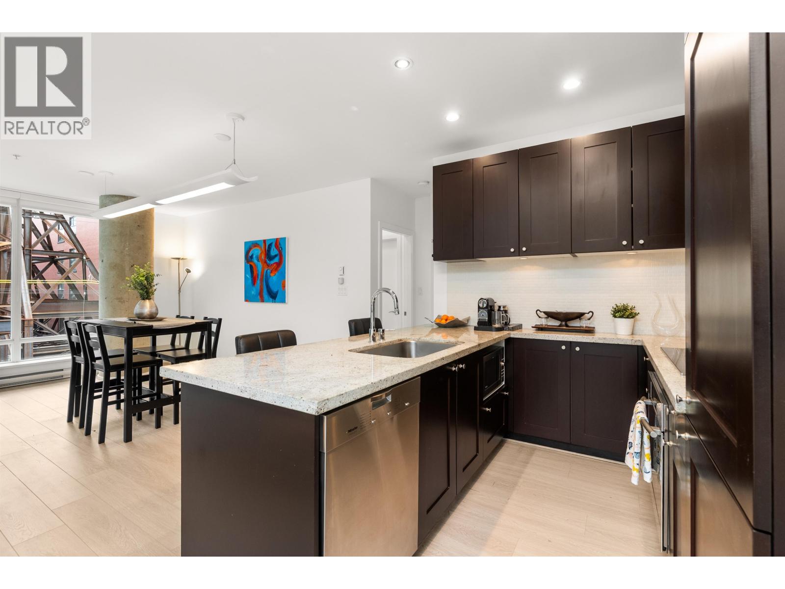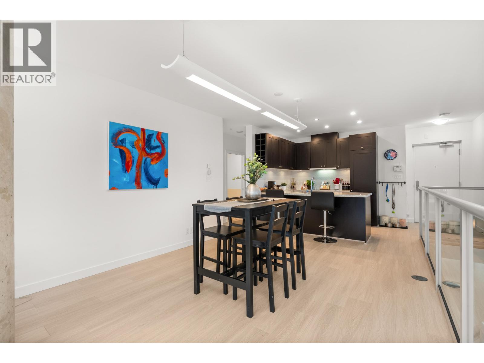$892.26 MonthlyLIVE/WORK New York-style townhouse at Raffles...exceptionally rare! Offering 1 (or easily 2) bedroom, 2 bathrooms and 1183 sqft on the edge of Yaletown. The main level features soaring 13´ ceilings, floor-to-ceiling windows and a bright, flexible open space ideal for a studio, office, gallery or client-facing business. Upstairs is a private 1-bedroom suite with full bath, brand new washer/dryer, 9.5´ ceilings and a stylish kitchen with granite counters and breakfast bar. Recent updates include new laminate flooring, fresh paint and new blinds throughout. Each level has its own entrance - live upstairs and work below, or enjoy the whole home as a sophisticated urban residence. Proactive strata with concierge, one parking, and currently not subject to EHT. A truly unique offering! (id:44393)