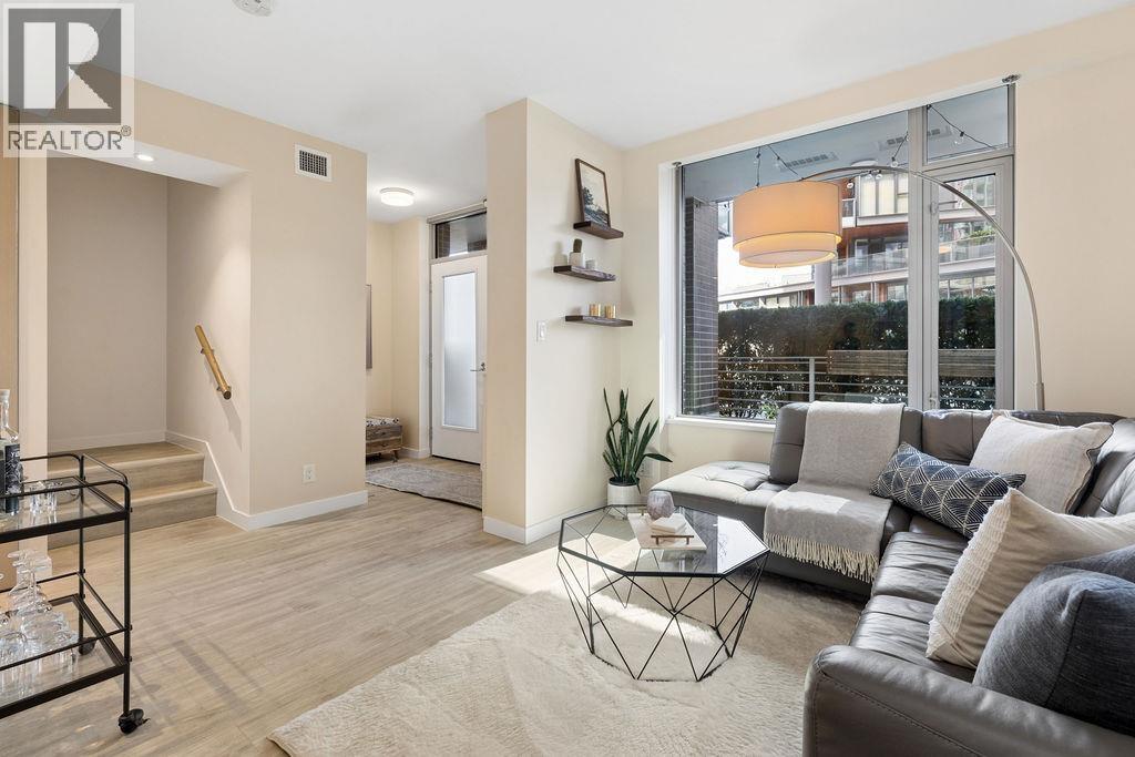 $840.22 MonthlyWelcome to this exceptional 2BED + DEN + FLEX TOWNHOME at VODA, a quality concrete building by CONCERT. With a PRIVATE ENTRANCE, this home spans two levels, providing separation between living and sleeping areas. Open-concept main floor features chef-inspired kitchen, OVERSIZE ISLAND with counter seating, bright living and dining areas which flow out to your PRIVATE PATIO. Unwind upstairs in your primary suite with walk-through closet & SPA-LIKE ENSUITE. The 2nd bedroom perfect for home office or guests. Soak in the sunset from your PRIVATE COVERED BALCONY. Enjoy year round comfort with AIR-CONDITIONING & premium amenities incl full-time CONCIERGE, FULLY EQUIPPED GYM, lounge, & rooftop deck with gardens. Just steps to the SEAWALL, SKYTRAIN, breweries, cafés, and restaurants. Includes 1 parking. (id:44393)
