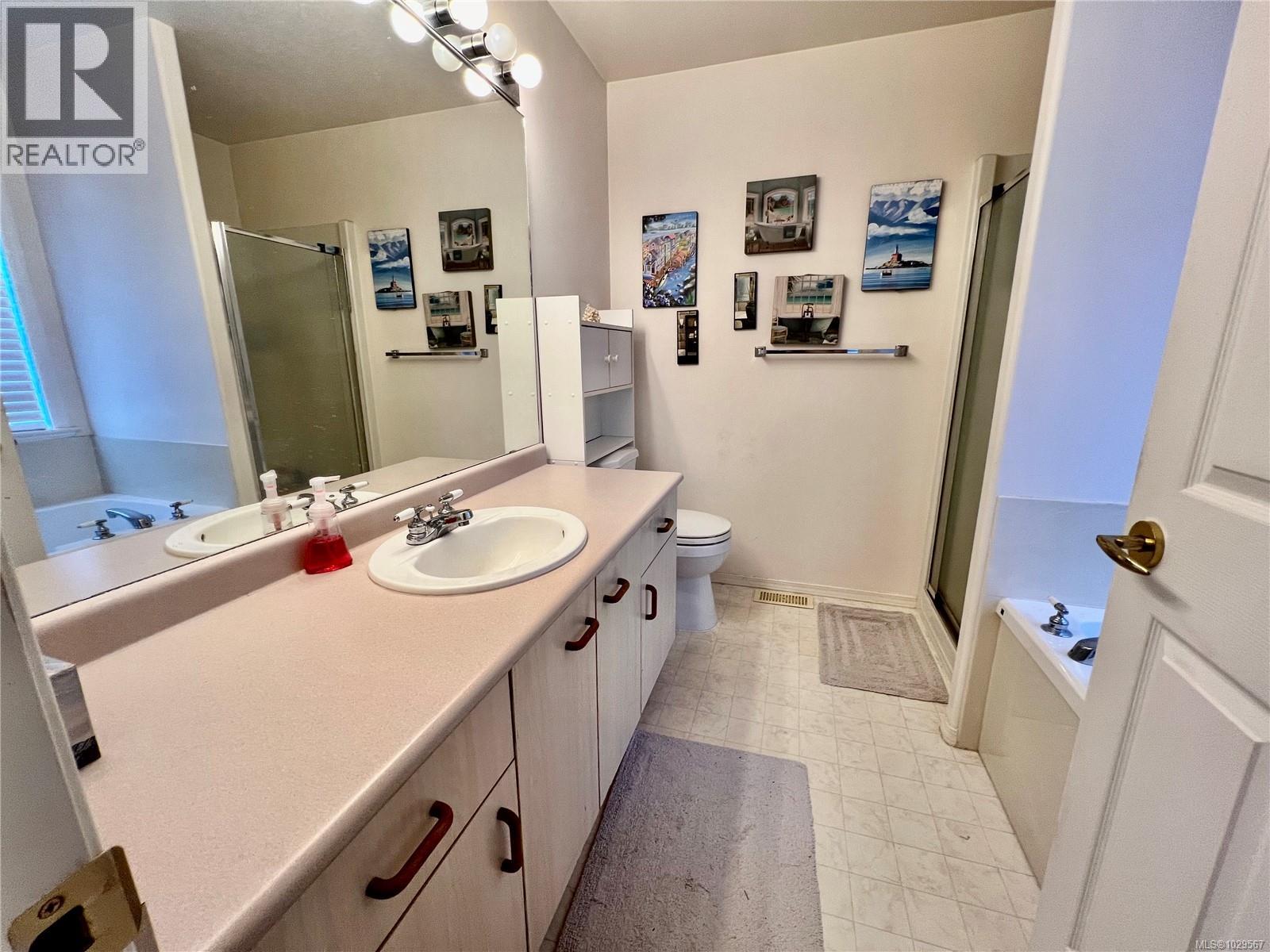$709 MonthlyUpdated laminate flooring... Just move in & enjoy this immaculate easy care home at popular Songhees Retirement Park. This beautiful 2 bdrm 2 bath home offers vaulted ceilings in the living room, gas FP, spacious kitchen w/ loads of cabinets, separate dining room, family room & great separation of the two bedrooms with a full ensuite in the master. Upgrades include newer laminate in kitchen, custom concrete patios, and fencing to name a few. The complex has great community spirit w/ organized card games, billiards, and clubhouse with guest accommodation. Located close to town & steps to shopping at Admirals Walk. (id:44393)