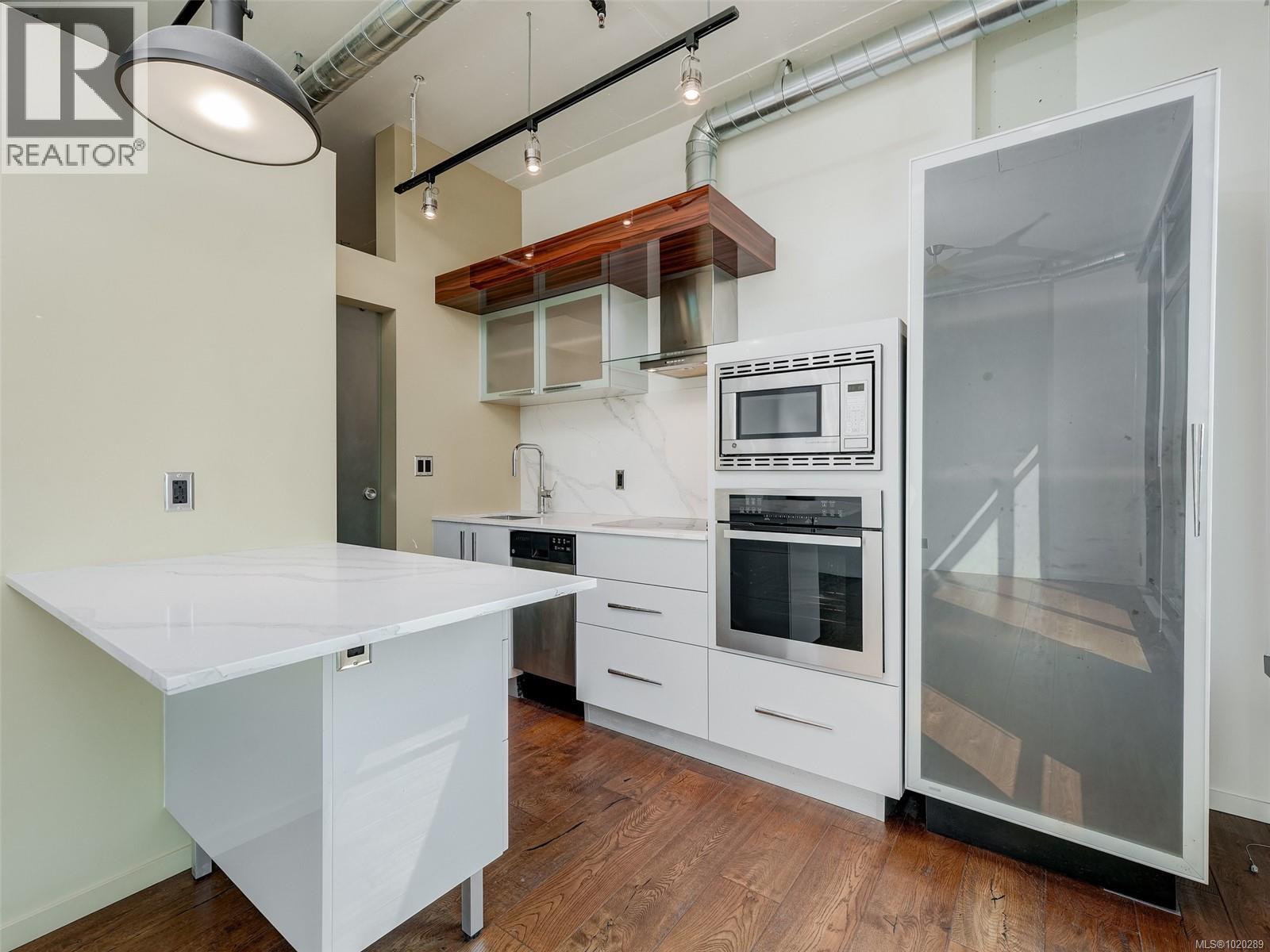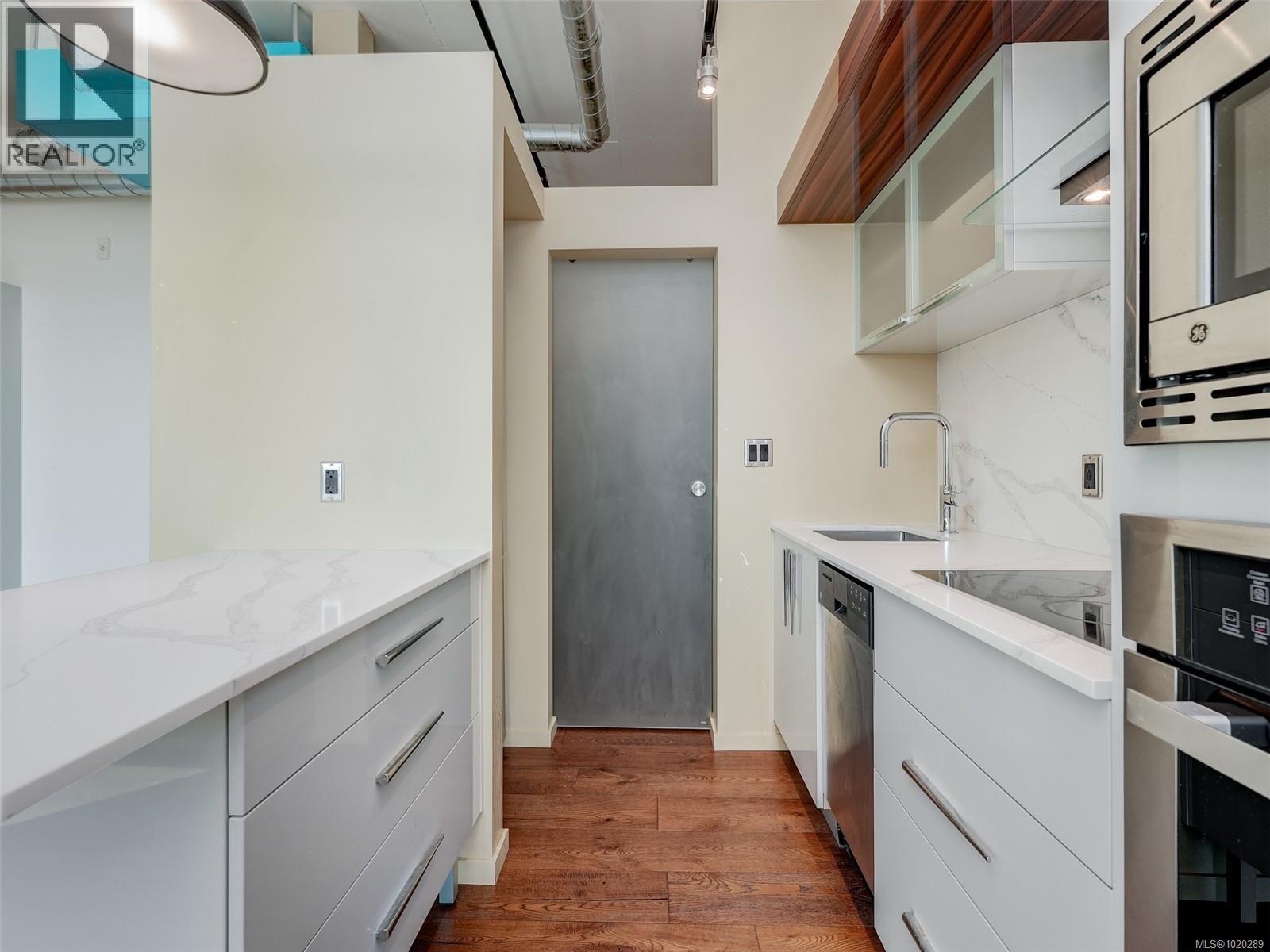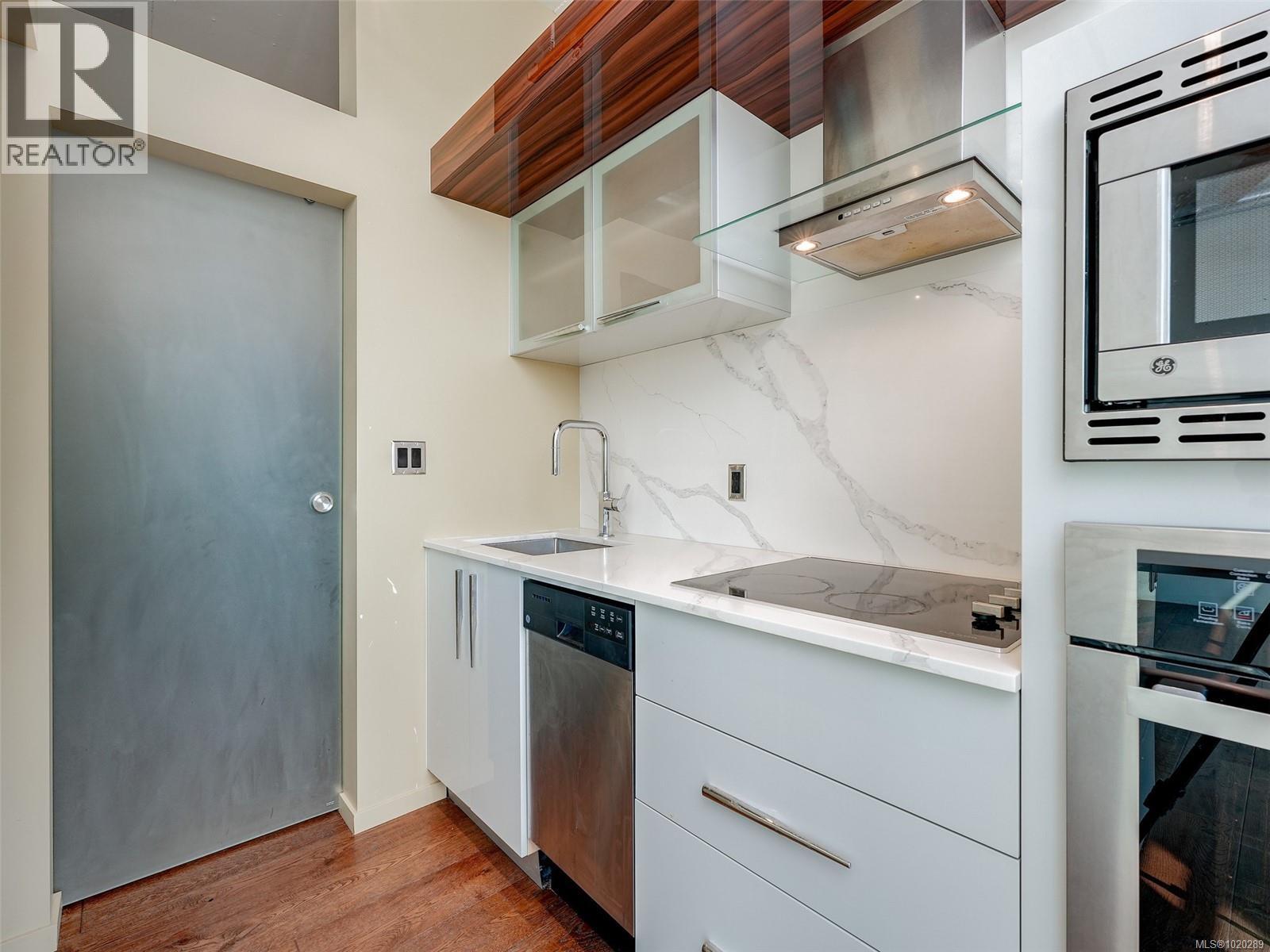 $273.20 MonthlyOpen Sat 1-2:30pm. Enjoy ocean views with southern exposure from this bright one-bedroom home at the sought-after steel and concrete Jukebox building. The open concept design features engineered hardwood floors, quartz countertops, and stainless-steel appliances, offering a modern and stylish living space. Step out onto your private balcony and take in the natural light and views. The building provides exceptional amenities, including a fully equipped fitness centre and a tranquil rooftop meditation garden. This unit comes with a secure underground parking stall and separate storage locker. With a new home warranty, low strata fees, and policies that welcome both pets and rentals, this is a perfect opportunity for homeowners or investors. Located in the vibrant Harris Green neighbourhood, you are just steps away from Victoria’s best restaurants, shops, the Inner Harbour, and downtown core. Vacant and ready for quick possession! (id:44393)