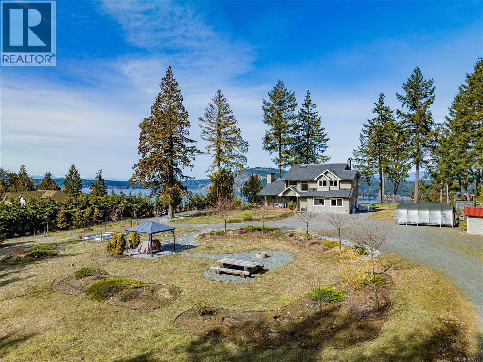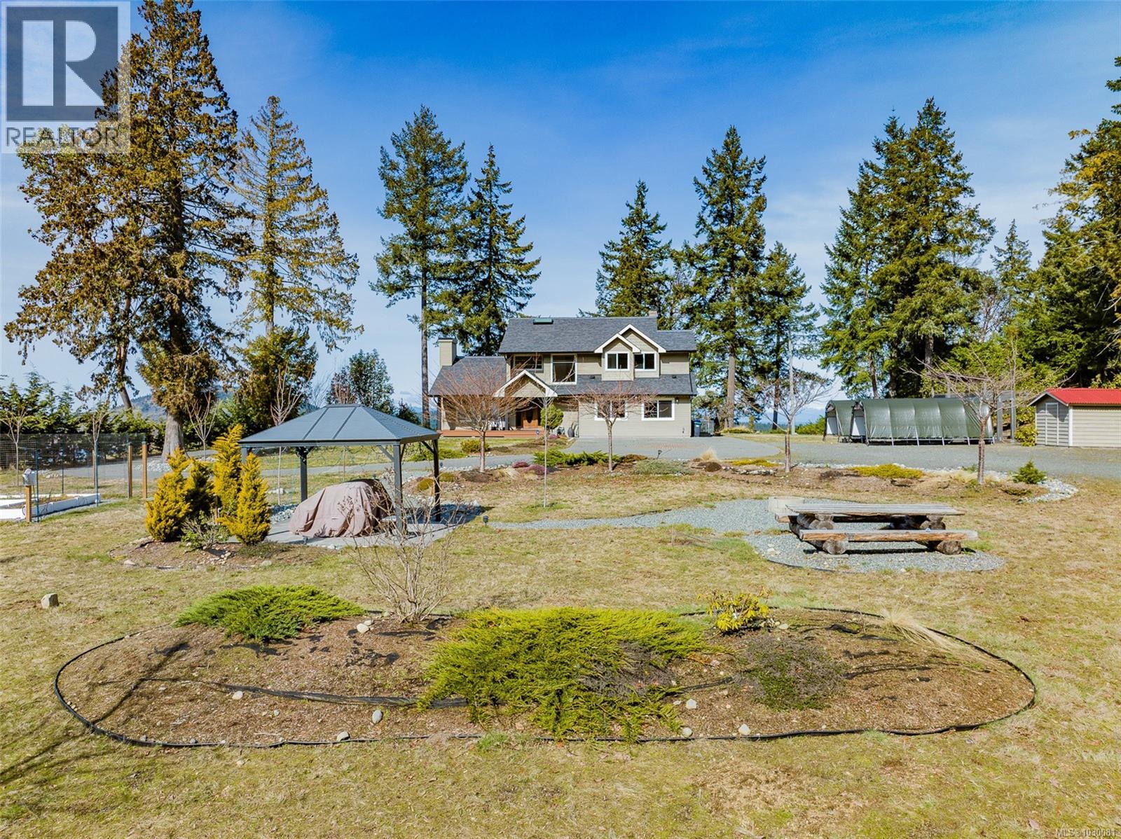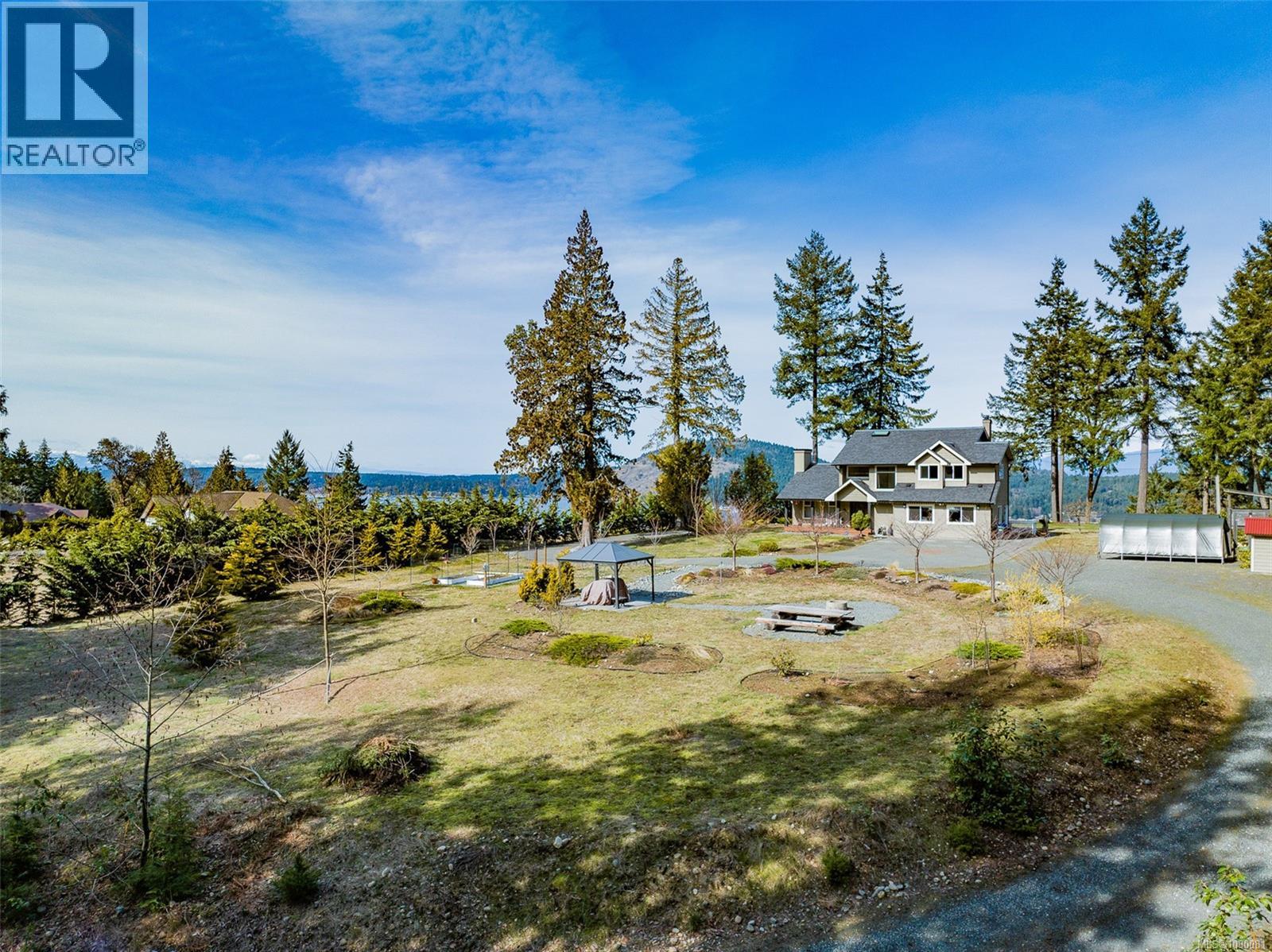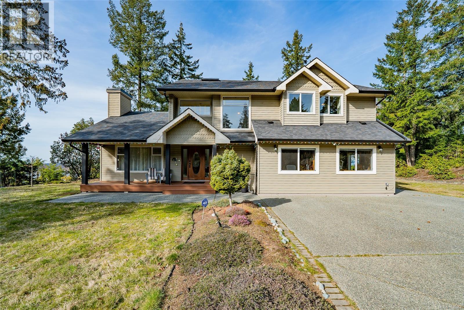 A Rare Hilltop Estate with Unmatched Privacy & Panoramic Views: Perched atop a 2.5-acre hilltop, this exceptional estate offers a rare, expansive flat plateau—combining elevation with functional, usable land. Ideally situated between Southwind Drive and Lorenzen Lane, the property features dual driveway access, offering convenience and flexibility for multi-generational living or future development. The Location & Lifestyle: Located just 7–8 minutes from Costco, Home Depot, and Woodgrove Centre, this home perfectly balances peaceful seclusion with urban convenience. Outdoor enthusiasts will love being steps away from the Copley Ridge Trail network for hiking, biking, and ATV adventures. Surrounded by mature trees, the property is a true sanctuary with no visible neighbors, providing total privacy for open fires, barbecues, and gatherings. Breathtaking Views: Enjoy stunning panoramas overlooking Nanoose Bay to the front and Copley Ridge to the back. Summer evenings are magical, featuring vibrant sunsets over the water. Turnkey Quality & Potential: The home features a renovated kitchen (2019), a studio (2016)—both permitted—a brand-new water heater (2025), and fresh interior/exterior paint. Year-round comfort is ensured by forced-air heating and AC. Huge future potential exists for a carriage house or subdivision (buyer to verify). Education: Located in the Seaview Elementary and Dover Bay Secondary catchments (with bus service), and just 8 minutes from the prestigious Aspengrove School. (id:44393)