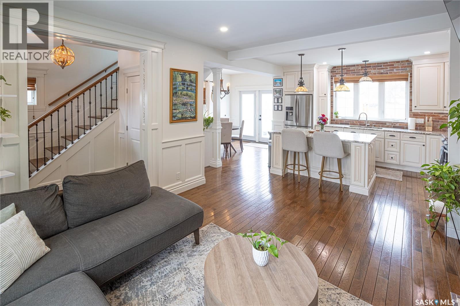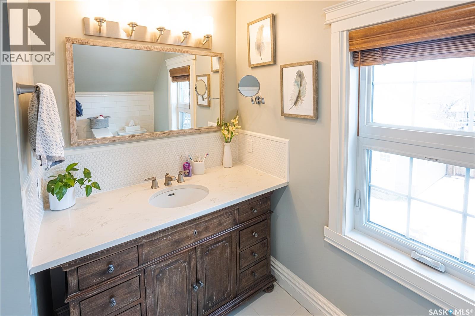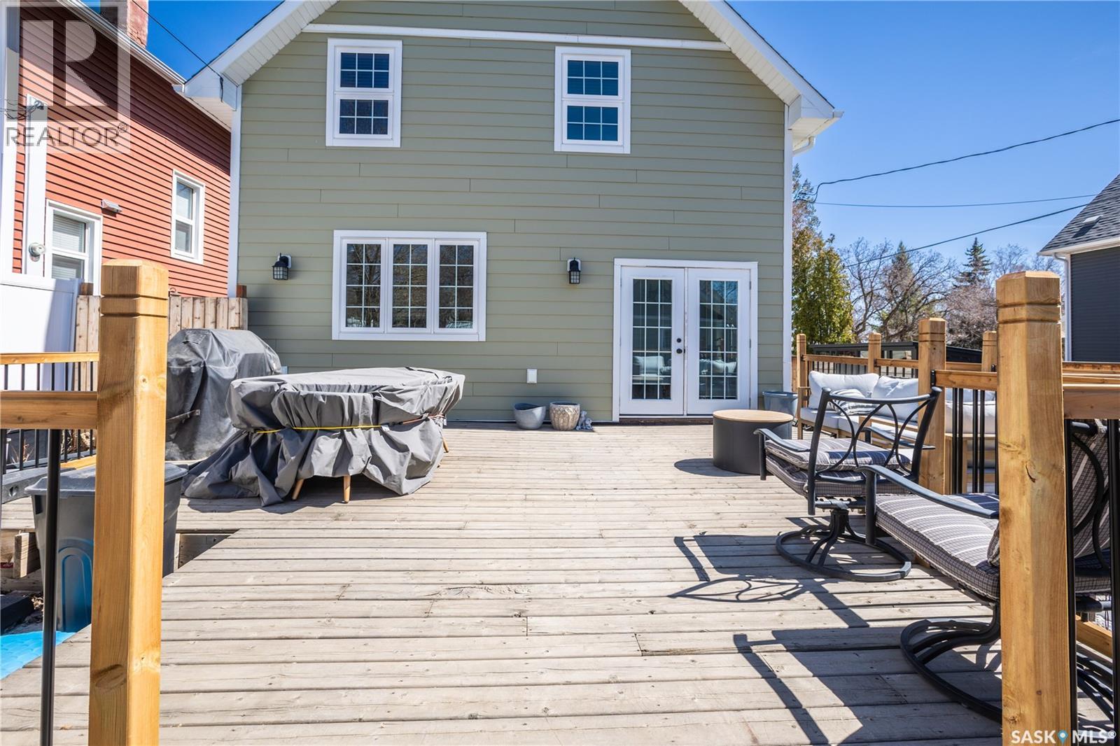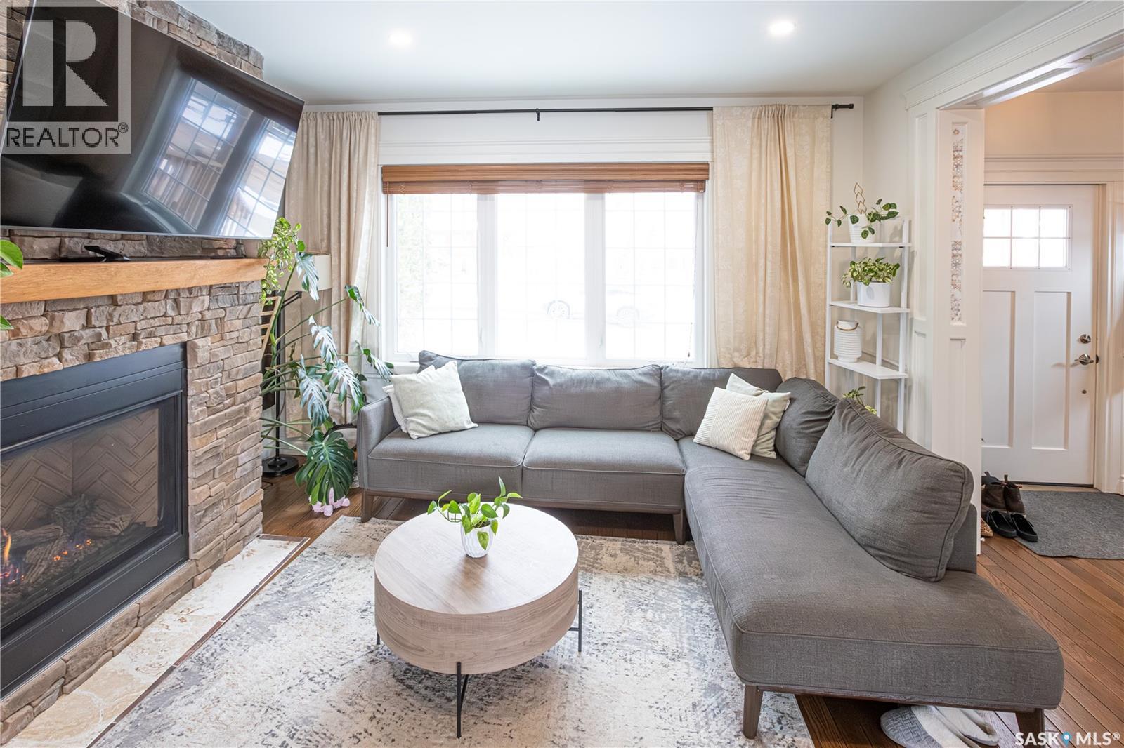 Stunningly timeless character home located in the Avenues, fully renovated in 2018/19 with quality craftsmanship and upscale finishes throughout. As you enter the foyer, you’re immediately welcomed by a warm, inviting atmosphere. The main floor features an open-concept design that’s ideal for hosting and entertaining guests. The living room showcases a gas fireplace with a stone mantle, adding both comfort and style. The custom-designed kitchen is a standout, offering maple cabinetry, granite countertops, a built-in convection oven, and a 30-inch professional-grade hood fan—perfect for any cooking enthusiast. From the dining area, garden doors lead out to a spacious 16x20 deck, ideal for relaxing or enjoying outdoor meals. Upstairs, a staircase with built-in lighting leads to a generous primary bedroom, an additional bedroom, and a luxurious bathroom featuring a clawfoot tub, separate glass-enclosed shower, and elegant white porcelain tile flooring. The finished lower level is currently set up as a bedroom and office space but could easily function as a cozy family room. A large three-piece bathroom with laundry and eye-catching custom marble mosaic tile flooring is also located on this level. The utility room includes built-in shelving for added storage. A newer heated double garage is accessible from the alley. Additional highlights include triple-pane windows, antique oak hardwood flooring throughout most of the home, updated plumbing, heating and gas lines, upgraded electrical service, and durable exterior finishes such as Hardie board siding, shake accents, and Fusion stone. The fully fenced backyard has also been landscaped, completing this exceptional property! (id:44393)