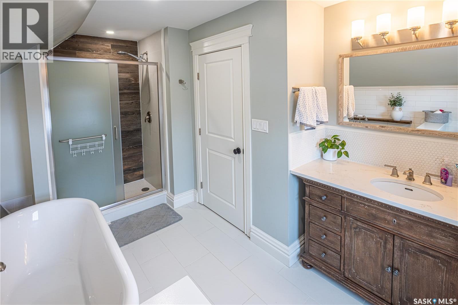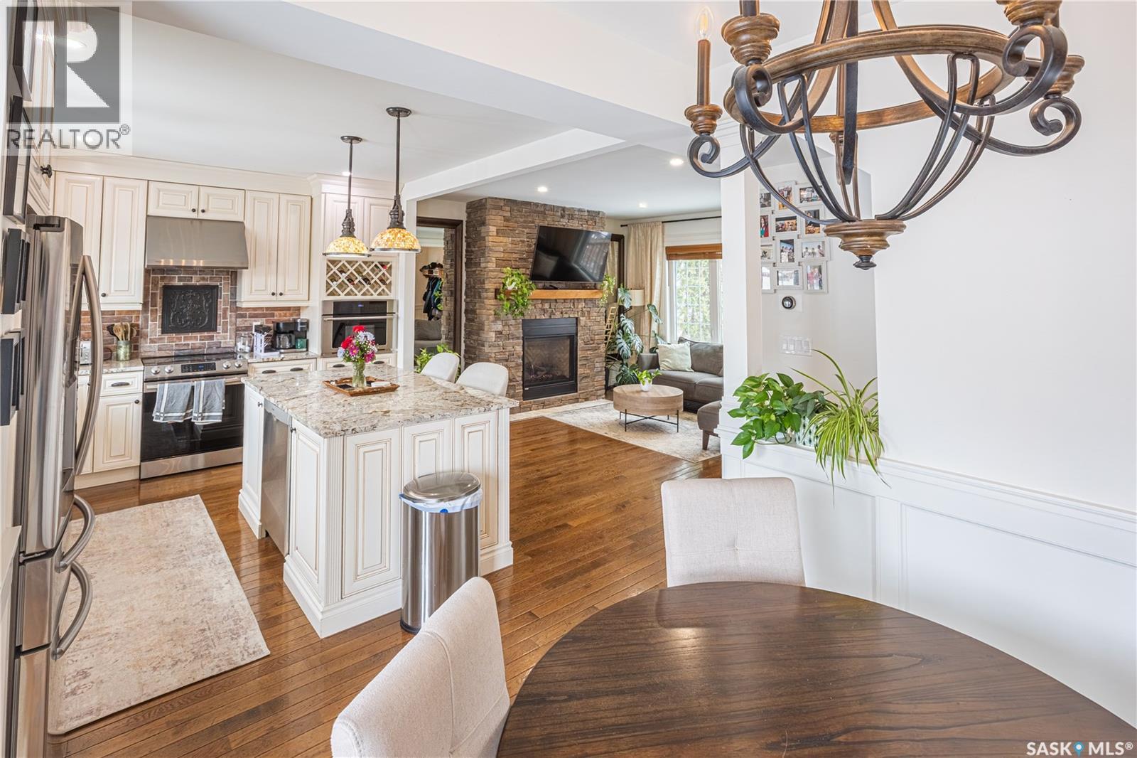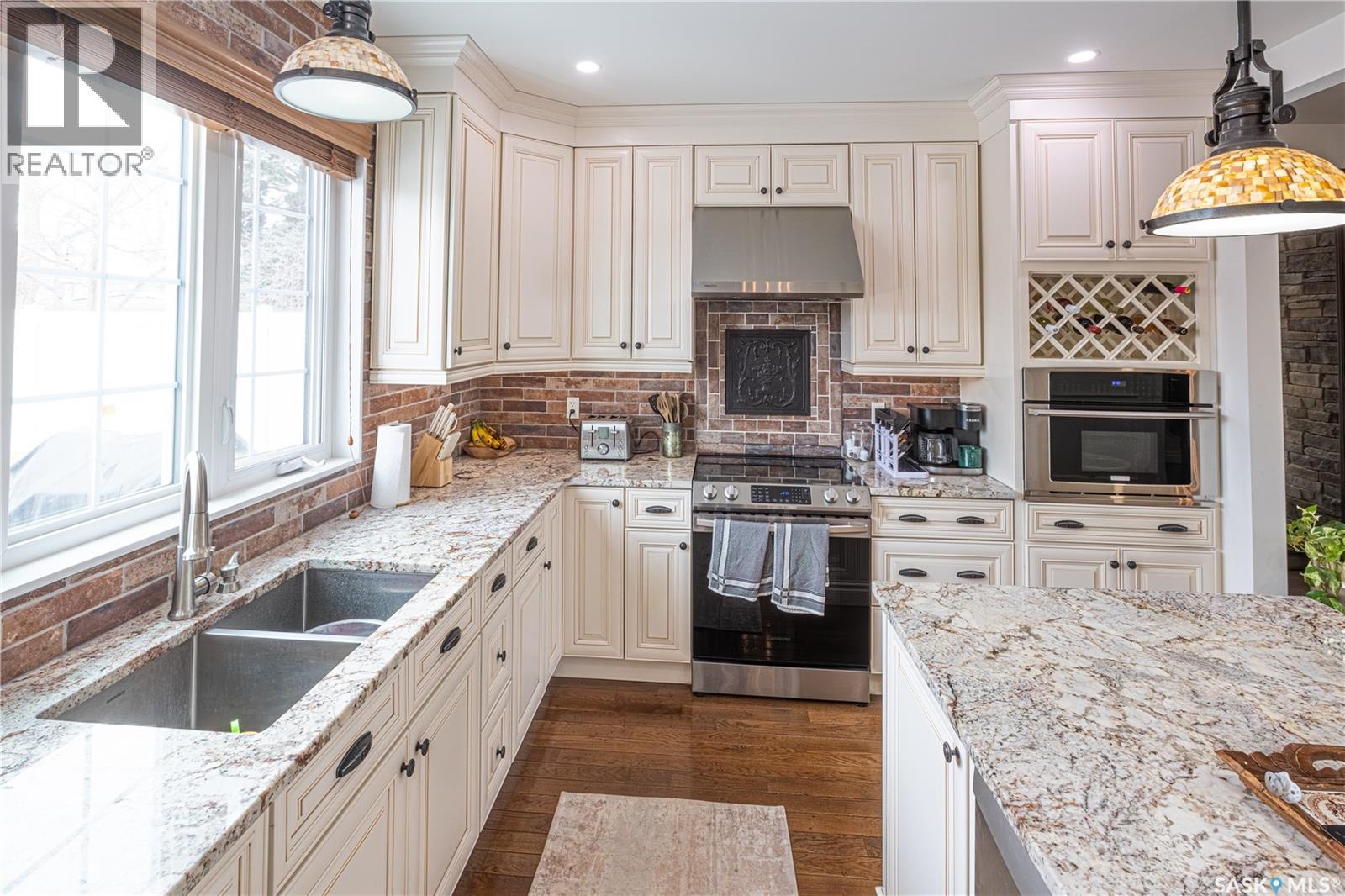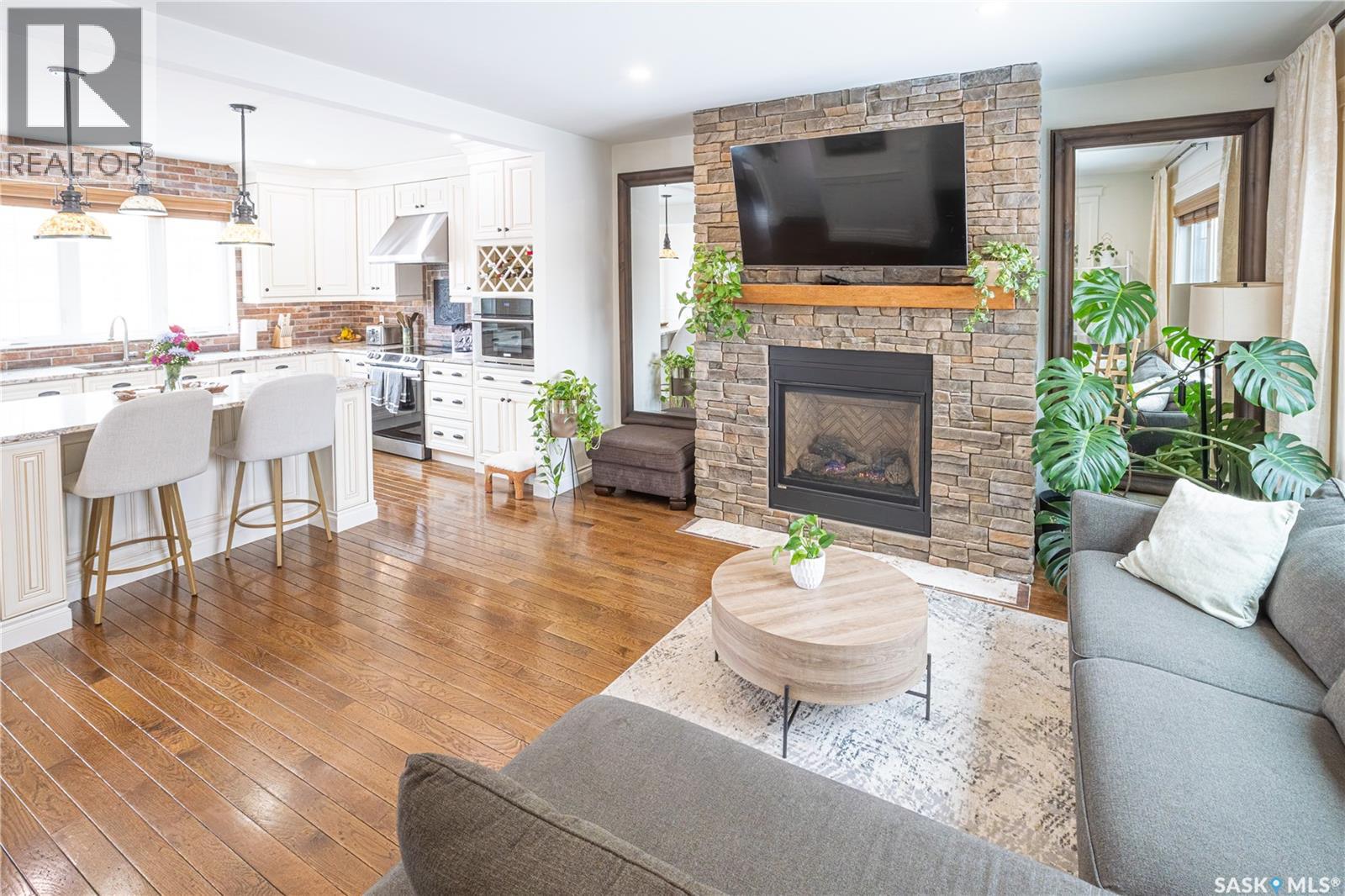 Stunningly timeless character home located in the Avenues, fully renovated in 2018/19 with quality craftsmanship and upscale finishes throughout. As you enter the foyer, you’re immediately welcomed by a warm, inviting atmosphere. The main floor features an open-concept design that’s ideal for hosting and entertaining guests. The living room showcases a gas fireplace with a stone mantle, adding both comfort and style. The custom-designed kitchen is a standout, offering maple cabinetry, granite countertops, a built-in convection oven, and a 30-inch professional-grade hood fan—perfect for any cooking enthusiast. From the dining area, garden doors lead out to a spacious 16x20 deck, ideal for relaxing or enjoying outdoor meals. Upstairs, a staircase with built-in lighting leads to a generous primary bedroom, an additional bedroom, and a luxurious bathroom featuring a clawfoot tub, separate glass-enclosed shower, and elegant white porcelain tile flooring. The finished lower level is currently set up as a bedroom and office space but could easily function as a cozy family room. A large three-piece bathroom with laundry and eye-catching custom marble mosaic tile flooring is also located on this level. The utility room includes built-in shelving for added storage. A newer heated double garage is accessible from the alley. Additional highlights include triple-pane windows, antique oak hardwood flooring throughout most of the home, updated plumbing, heating and gas lines, upgraded electrical service, and durable exterior finishes such as Hardie board siding, shake accents, and Fusion stone. The fully fenced backyard has also been landscaped, completing this exceptional property! (id:44393)