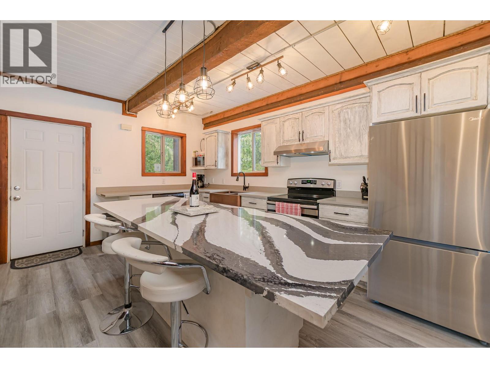 Enchantment of lakefront living with this breathtaking 1.29 acre property on Three Valley Lake. Offering a serene escape surrounded by unparalleled natural beauty, this residence is a true haven. The main home features four bedrooms and two and 1/2 bathrooms, designed to provide comfort and ample space. At the heart of the home, a wrap-around deck that is partially covered, invites you to unwind and take in the mesmerizing views of the lake and mountains. A hot tub, discreetly tucked under the covered portion of the deck, offers the combination of relaxation, privacy and scenery. Insulated oversized single garage, complete with a separate one-bedroom apartment above, adds versatility to the property and holds potential for rental income. Outside, the charm continues with a cozy fire pit area, private beach, and approximately 800 feet of pristine lakefront. The yard has a beachfront gazebo and a storage shed that has potential to be a bunkie. Adventure awaits, whether you prefer to canoe, kayak, or stand-up paddleboarding on the sparkling lake. Situated just 25 minutes from Sicamous or a 15-minute drive to Revelstoke, this location offers unparalleled access to a ski resort, a golf course, hot pools, and snowmobiling trails. The home is equipped with modern appliances, and the option to negotiate for furniture adds convenience to your move. This property is more than just a home; it’s a rare opportunity to embrace the lakefront lifestyle, blending adventure and tranquility. (id:44393)