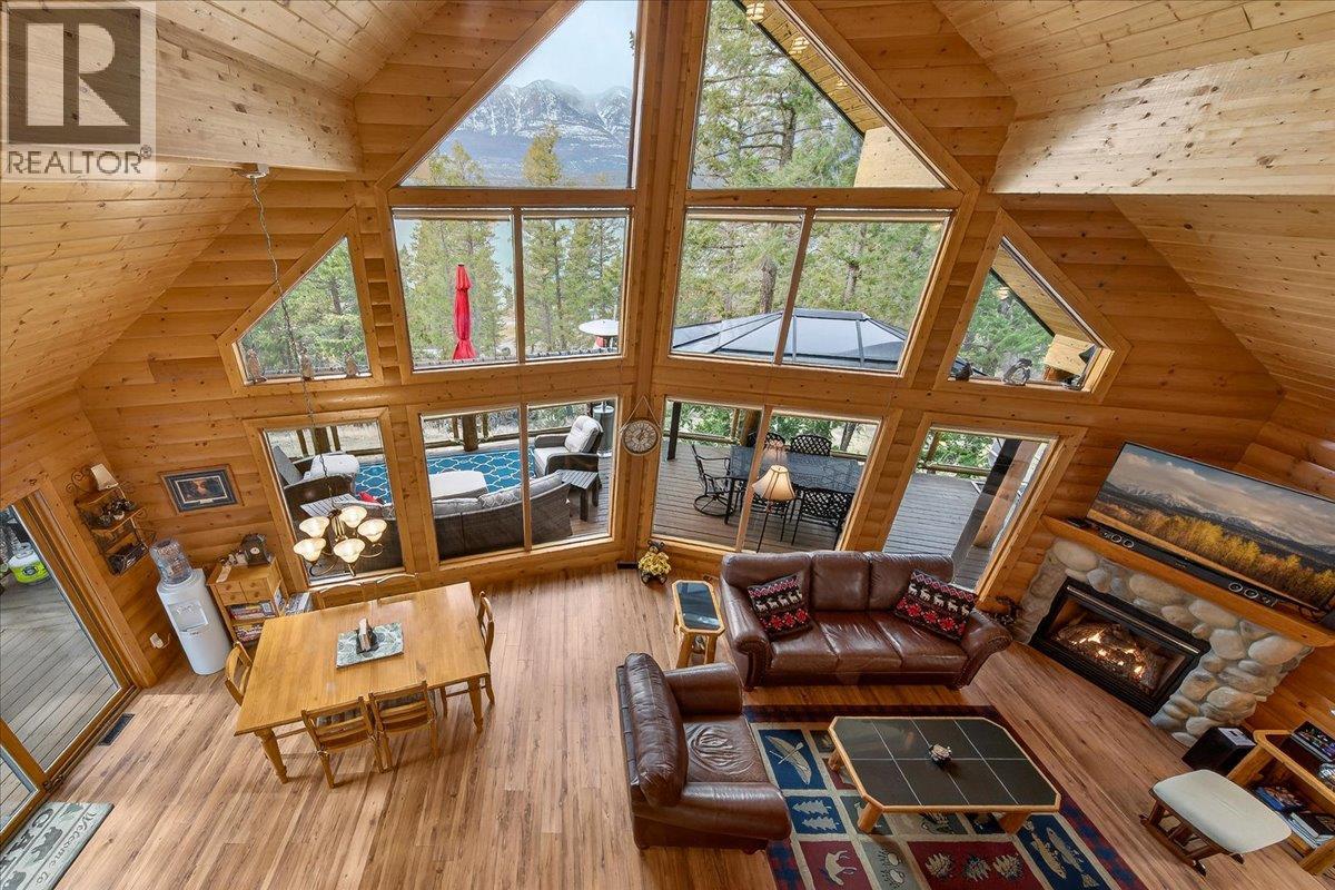Turn-Key Columbia Lake Retreat with Vaulted Ceilings, Walkout Basement, and Lake & Mountain Views! An immaculately maintained 1.5 storey mountain home offering the perfect blend of rustic charm and modern comfort. This 4-bedroom, 3-bathroom property features a fully developed walkout basement and is ideally situated just two blocks from the public beach and boat launch on Columbia Lake. The main living area showcases dramatic vaulted ceilings and a wall of windows that frame stunning lake and mountain views while filling the home with natural light. The open-concept design flows seamlessly onto an expansive wraparound deck—perfect for entertaining or relaxing in the peaceful, treed setting. Enjoy outdoor living at its finest with multiple seating areas, a covered gazebo, and a private hot tub below the deck—ideal for year-round enjoyment. Set on a spacious lot with a tranquil, rural feel, this property offers privacy without sacrificing convenience to lake access and recreation. Offered fully furnished and turn-key, this is a rare opportunity to own a move-in ready getaway in a highly desirable Columbia Lake location. (id:44393)
