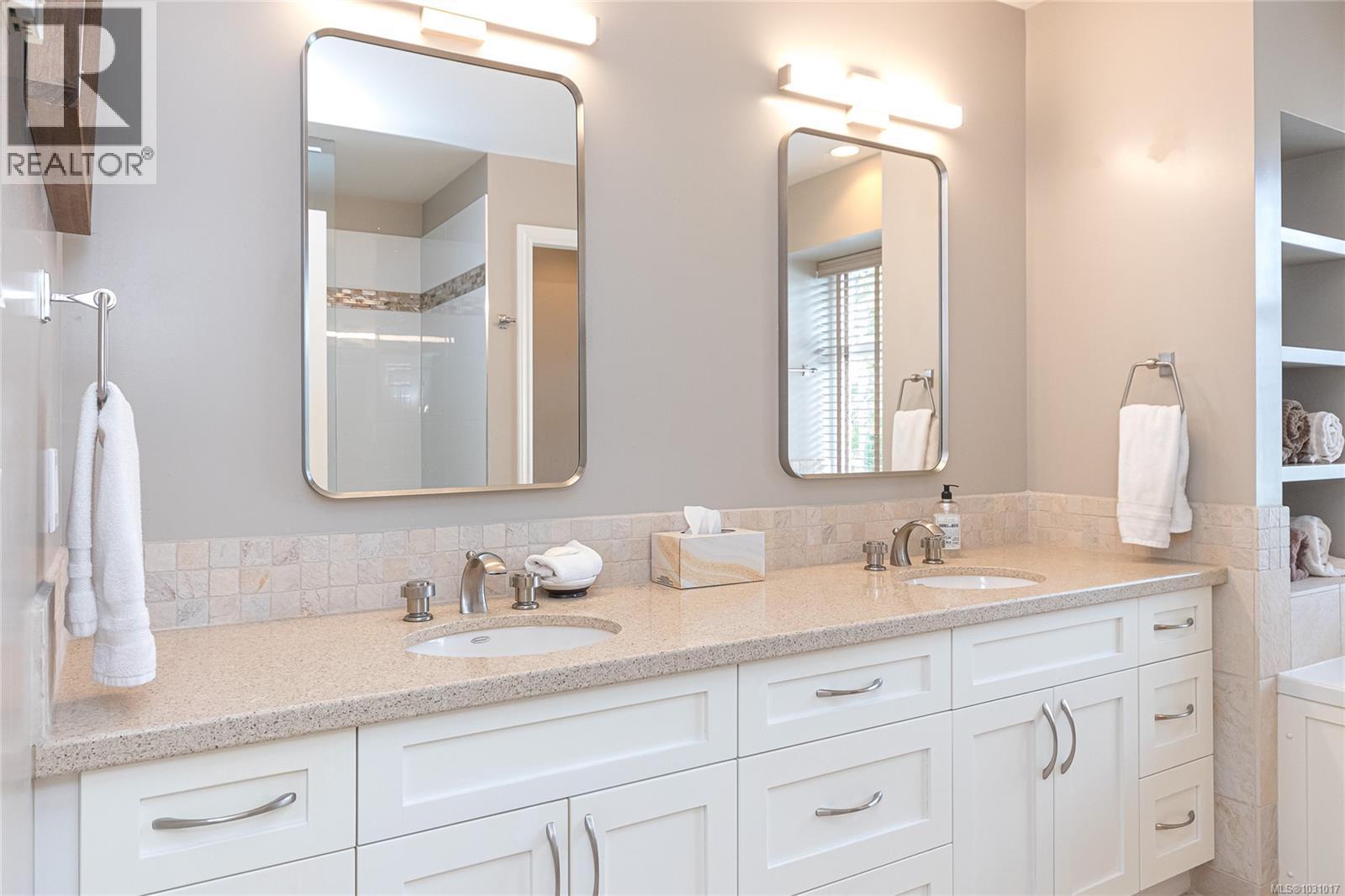 $499 MonthlyWelcome to 843 Country Club Dr located in the highly sought after 55+ gated community of Arbutus Ridge. Resort-style living with golf, tennis, pool, clubhouse, fitness centre, and 24hr security, all in a vibrant seaside community, just a short drive to Victoria and Nanaimo. Situated on one of the larger professionally landscaped lots with double car garage, this 2-bed, 3-bath residence offers over 2,800 sq ft of quality craftsmanship, bright open-concept main-level living, with sweeping panoramic golf course views extending to Salt Spring Island. This impeccable home showcases expansive windows, soaring 11-ft ceilings on the main floor, combines privacy and space with exceptional value. The main level is suited for entertaining, with spacious living, dining, and kitchen areas that flow seamlessly onto a wraparound deck with glass railings, perfect for taking in the stunning scenery. The kitchen is well-appointed with granite countertops, a tiered island, and premium S/S KitchenAid and Bosch appliances. The Primary bedroom, located on the main floor, features picturesque golf course views and French doors opening onto the deck. It includes a generous walk-in closet and a spa-inspired ensuite with granite counters, dual sinks, a glass shower, and a luxurious jetted tub. A bright office overlooks the front patio and tranquil water feature near the entry, while a conveniently located powder room completes the main level. The lower level offers 9ft ceilings with exceptional flexibility, walk-out covered desk access from the media lounge, a guest bedroom, full bath, functional spare room with murphy bed, large wall mirror, ideal to use as a fitness gym, and a separate large craft room connected to an oversize storage areas. EV Charger incl. Move-in ready, this is your opportunity to enjoy the very best of Vancouver Island living. Your new lifestyle awaits! To book an appointment or a private tour call the real estate listing agent, a long time resident of the community. (id:44393)
