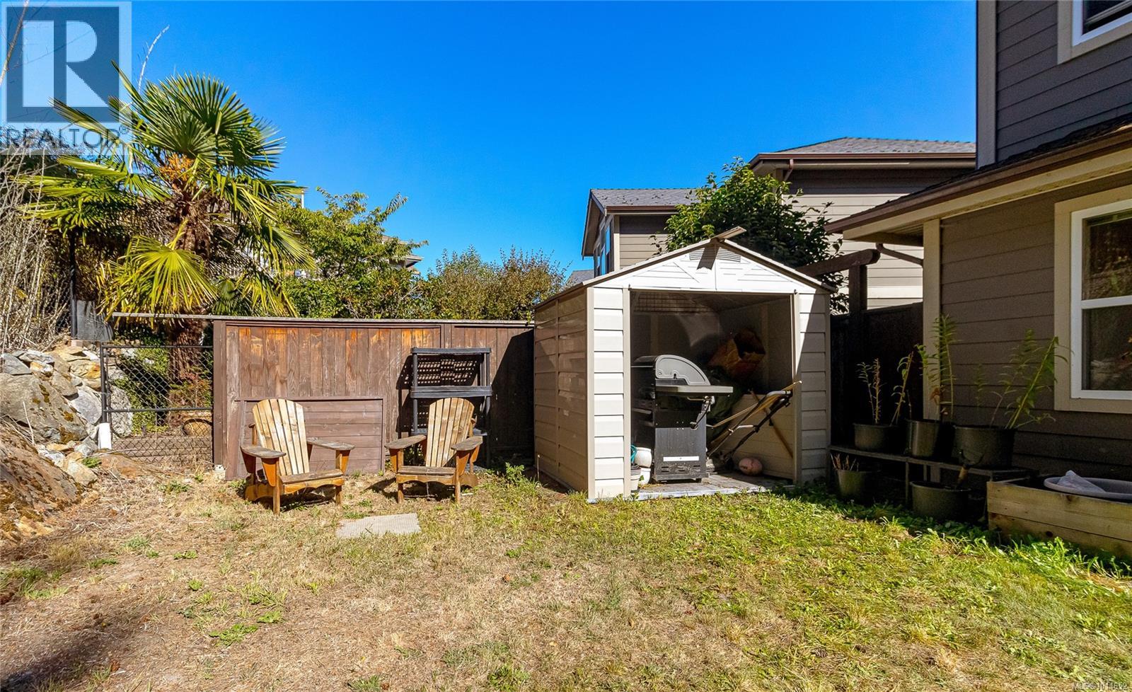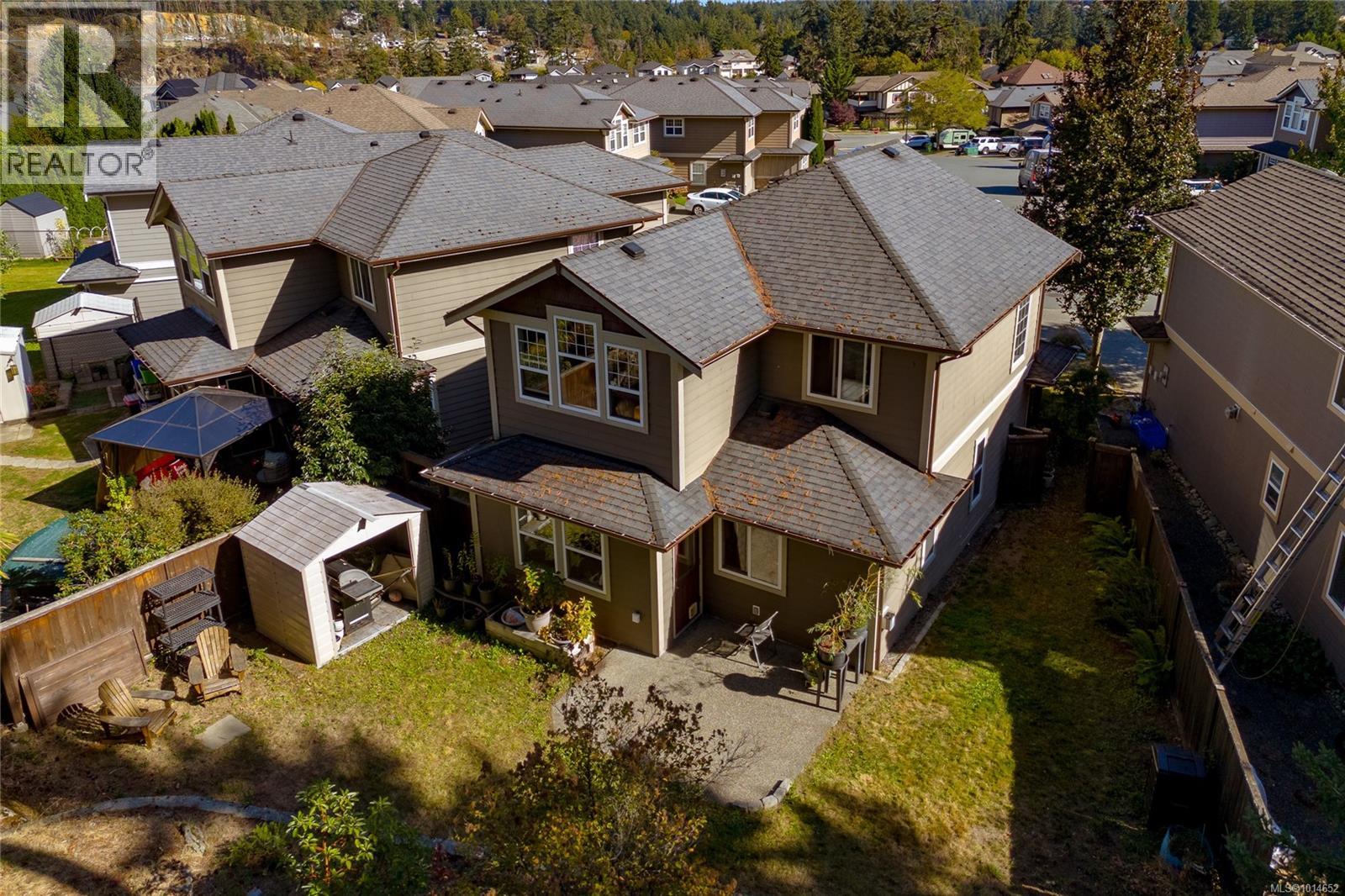 Follow your dream, home. This quality Bear Mountain home sits at the end of a no through road and is in an easy walk to Lakewood Elementary. The usable backyard backs onto green space for spacious privacy that you won't normally find in this price range. No compromises here! Excellent floor plan with spacious main level living and 3 bedrooms upstairs. Primary bedroom offers vaulted ceiling and a walk through closet leading into the cheater en-suite. Other features include natural gas fireplace, gas hook ups for the stove & BBQ, programmable irrigation system, roughed in central vac, laundry/mud room, covered front entrance and west facing rear patio. It also includes a new a dishwasher and microwave, and newer washing machine and h/w tank. Costco, numerous shops as well as Thetis Lake are all only minutes away. A home at this price in this area won't last long. Book your showing today! (id:44393)
