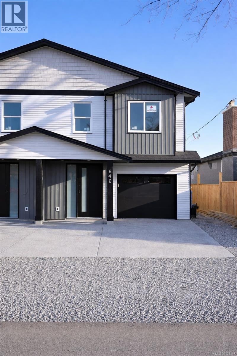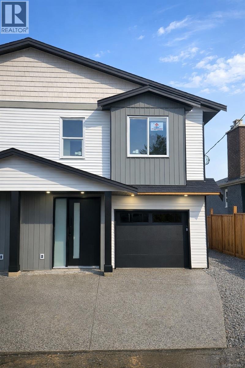 Discover modern living in this stunning newly constructed half duplex, perfectly positioned in the heart of central Nanaimo for ultimate convenience. Priced plus GST, this 3-bedroom, 3-bathroom home spans 1,670 sqft of thoughtfully designed space, blending style, comfort, and efficiency. Step inside to an open-concept layout flooded with natural light. The primary suite is a true retreat, featuring a private deck for morning coffee or evening relaxation, a spacious walk-in closet, and a luxurious ensuite bathroom. Two additional bedrooms offer flexibility for family, guests, or a home office. Enjoy the convenience of a dedicated laundry room, plus all appliances included so you can settle in effortlessly. Stay comfortable year-round with an efficient electric heat pump and natural gas furnace. Outside, a world of amenities awaits: stroll to nearby parks for outdoor adventures, shops for daily essentials – all contributing to a vibrant lifestyle. (id:44393)