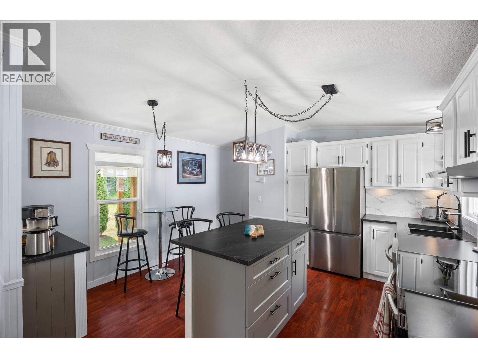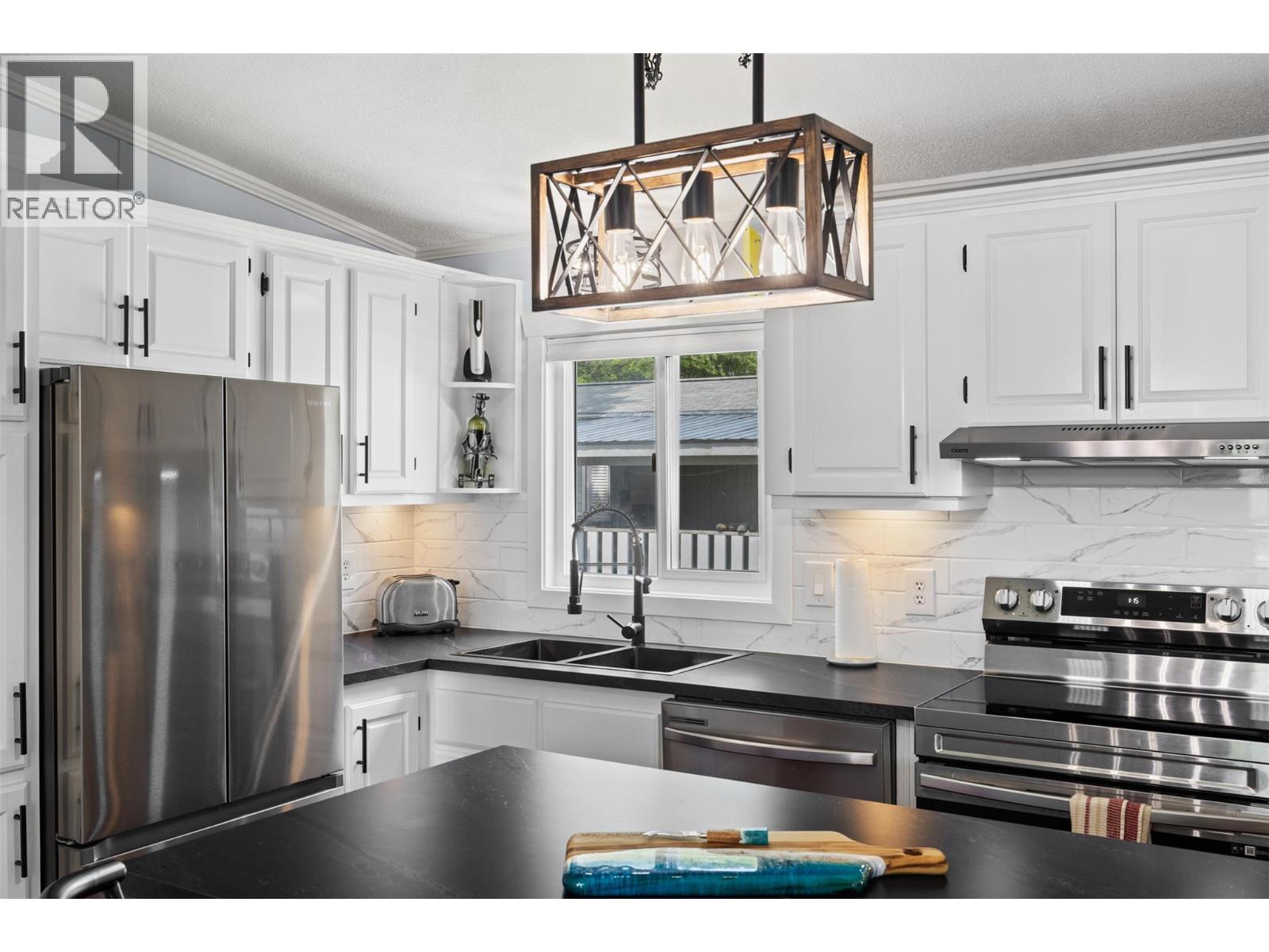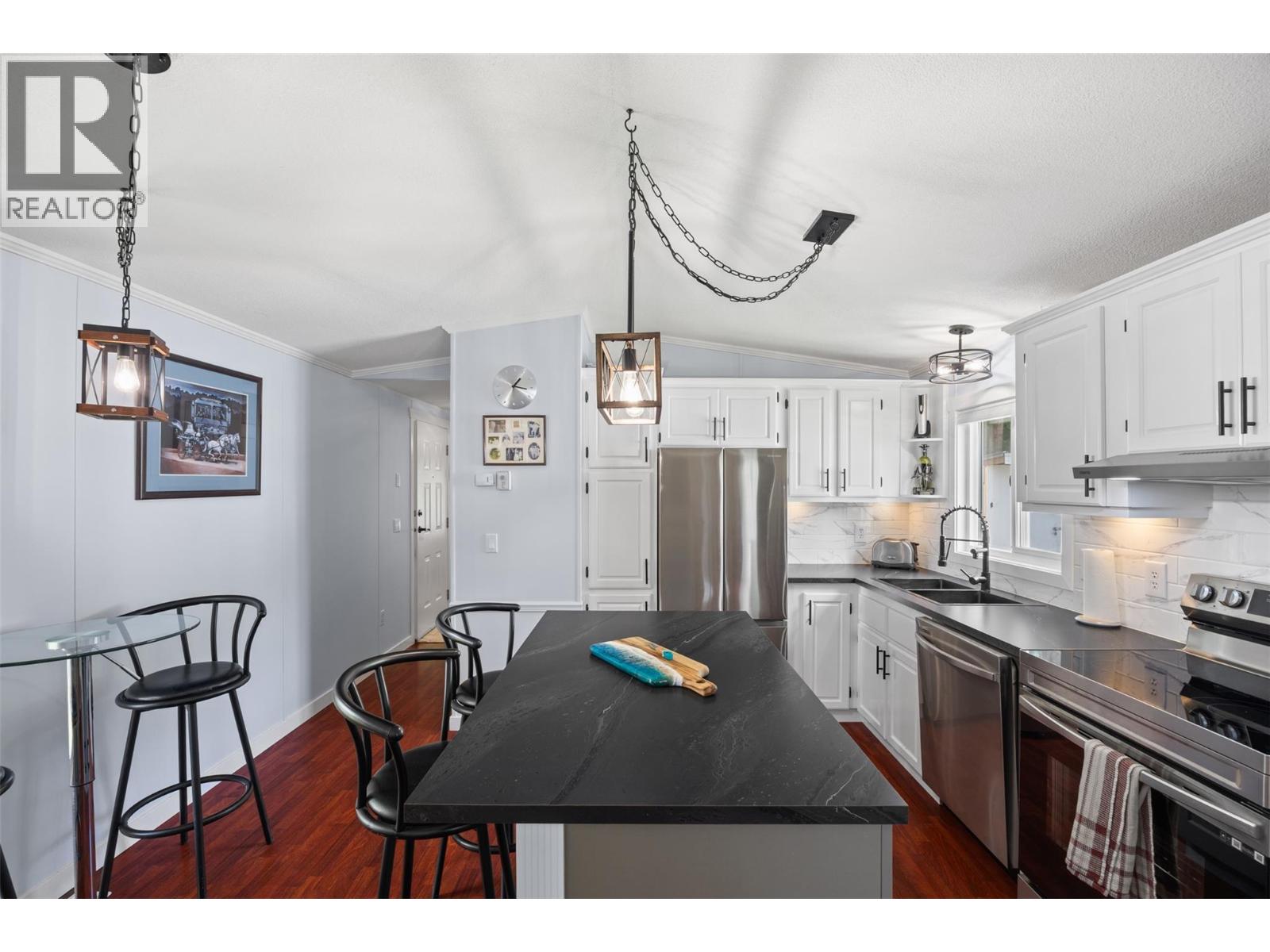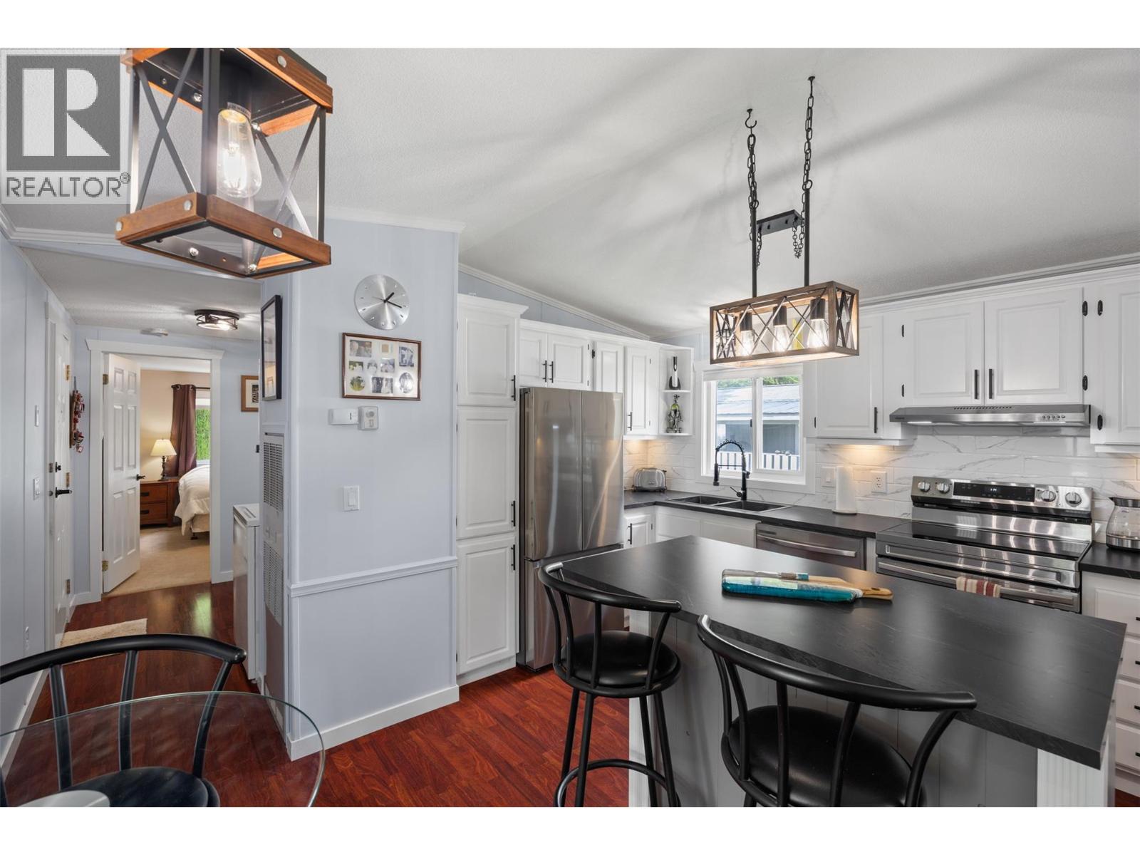 $375 MonthlyWelcome to 4-851 Old North Thompson Hwy, located in the friendly 55+ community of Sunset Village. This beautifully renovated 2-bedroom, 1-bath home has been thoughtfully updated throughout. The kitchen shines with new stainless steel appliances, sleek countertops, backsplash, cupboards, a kitchen island, coffee bar, updated lighting, hardware, black modern sink, all the finest finishes - you name it! The bathroom is equally impressive with a new tub surround, fresh tiling, stylish vanity with floating marble-look sink, and great lighting. With new paint, trim, doors, flooring and hardware throughout, all you can think of, all that’s left to do is move in and enjoy! (id:44393)