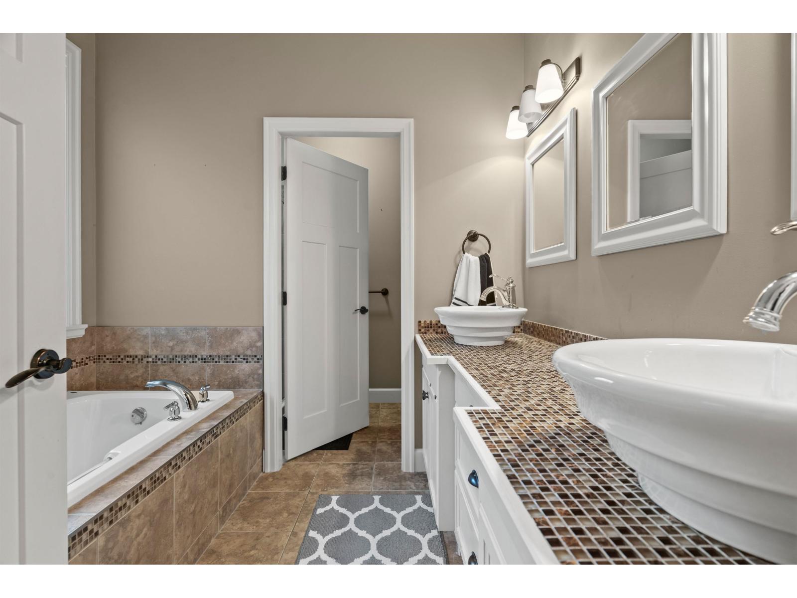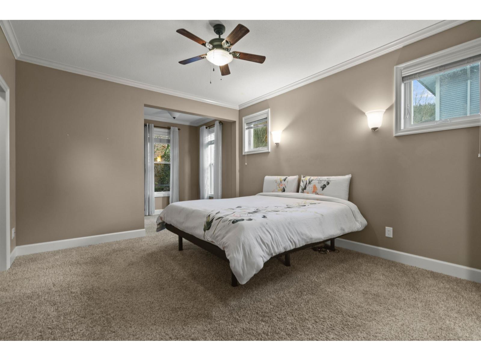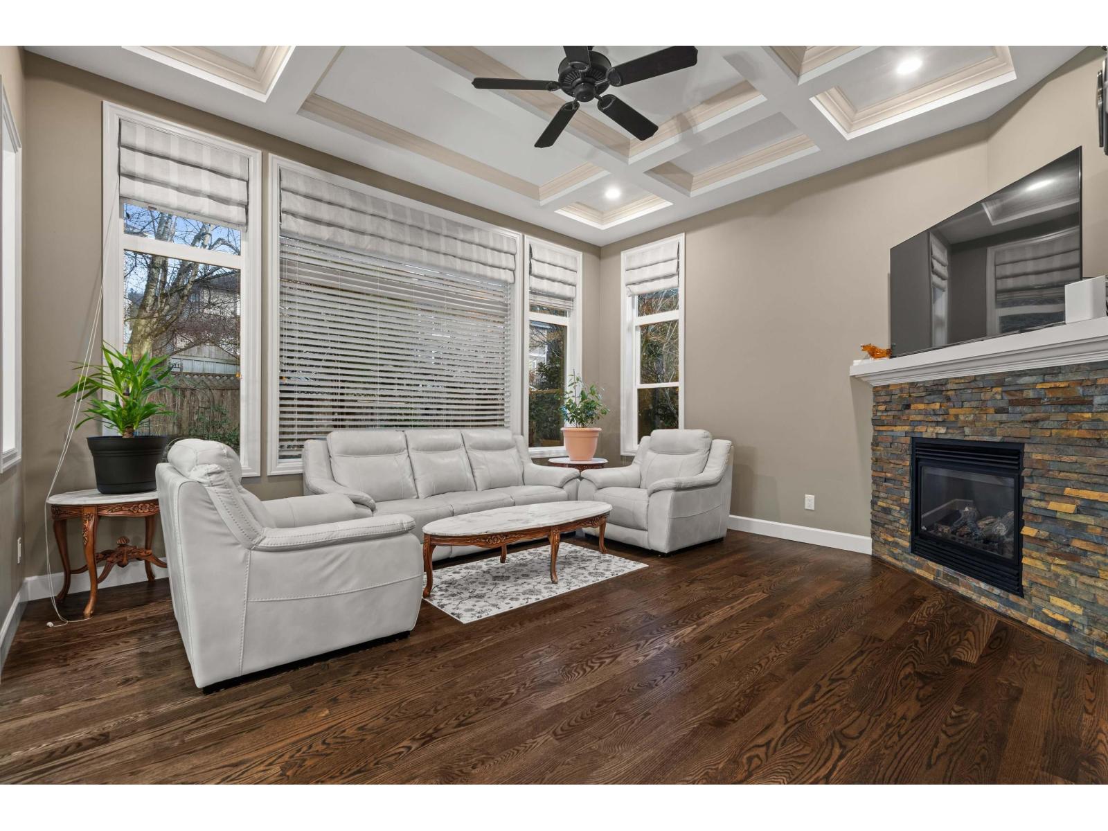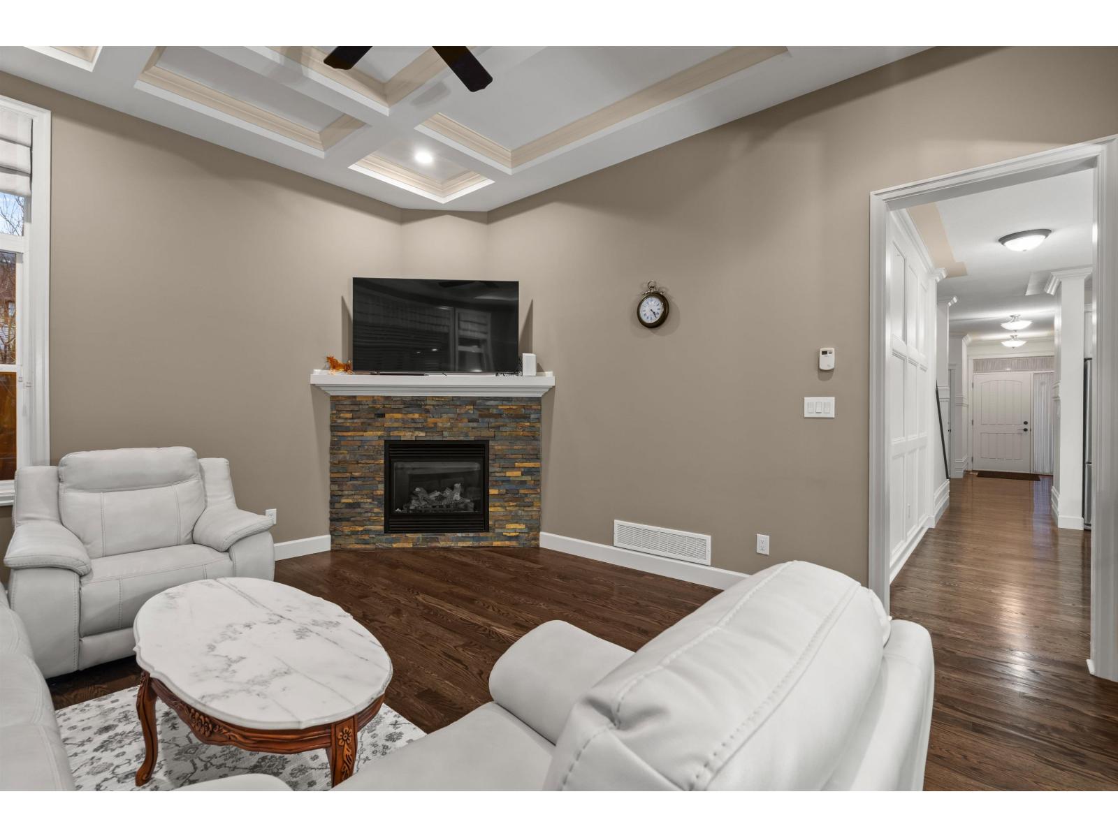 This unique and inviting floor plan is tucked away on a quiet cul-de-sac in desirable Eastern Chilliwack! Offering 4 bedrooms + loft and 3 bathrooms with convenient main floor living, this home is perfect for everyone! The main level features a spacious primary bedroom with ensuite bathroom including dual sinks and shower, plus a second bedroom and full bathroom ideal for guests or extended family. The bright kitchen showcases a large island, custom white cabinetry, backsplash, hardwood flooring, and detailed crown moulding, flowing seamlessly into the dining area and great room with coffered ceilings and a cozy gas fireplace. Upstairs, enjoy a versatile loft/flex space with electric fireplace. The basement offers two bedrooms, partially finished living space, and plenty of unfinished square footage ready for your ideas (recreation room and/or suite potential). Step outside to a private, fully fenced, low-maintenance backyard with stamped concrete, hot tub, shed, and a peaceful park setting. Excellent location (id:44393)