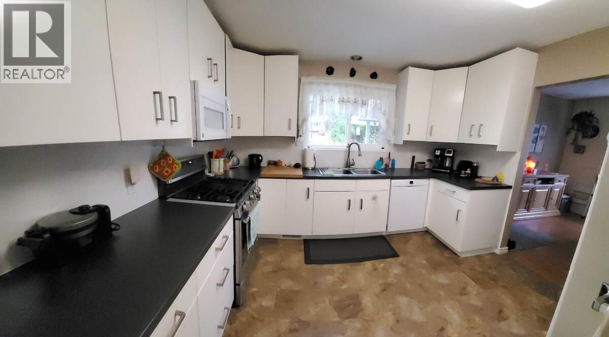 For more information, please click Brochure button. Escape the rat race and settle into the peaceful charm of Greenwood, BC - the smallest city in Canada. This spacious, move-in-ready home offers 2450 sq ft of living space with 3 bedrooms on the main floor and 2 additional bedrooms downstairs. There are three bathrooms, including a 2-piece ensuite, a full bath on the main floor, and a 3-piece bathroom in the basement. The kitchen is designed for convenience and function, featuring generous cupboard space, a pantry, and soft-close drawers and cabinets throughout. All windows on the main floor have been replaced with energy-efficient low-E windows, enhancing both comfort and efficiency. The lower level includes a large recreation or family room with plenty of additional storage, along with a laundry room for everyday practicality. A high-efficiency furnace was installed just nine years ago, complemented by gas fireplaces on both levels, which could be converted to wood-burning if desired. Hot water on demand and a water softener system were added seven years ago. Appliances include a newer washer and dryer, a gas stove, and a Bosch dishwasher. The exterior is finished with low-maintenance vinyl siding, and flooring includes a combination of laminate, tile, and carpet for a warm, inviting feel. The insulated shop provides additional functional space, while outdoor storage is abundant with a 20 ft sea can, garden shed, and storage area beneath the upper deck. (id:44393)