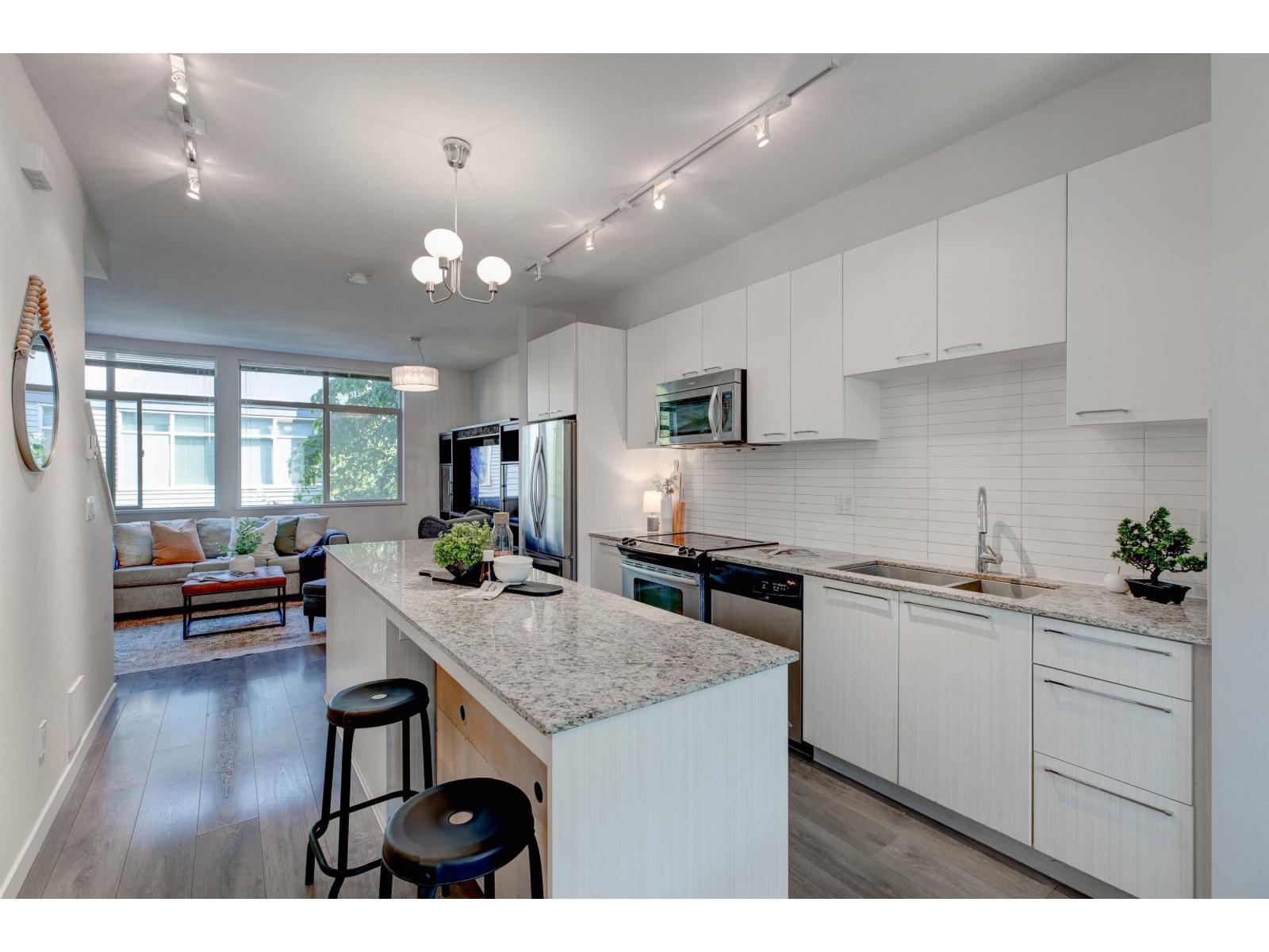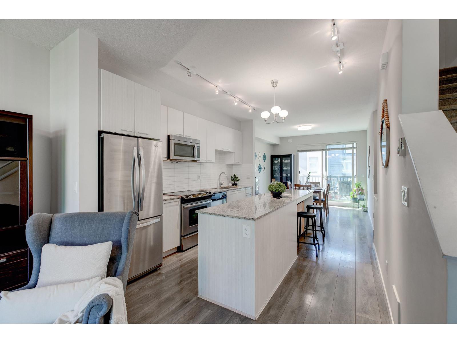 $350.35 MonthlyExperience elevated living at The Rockwoods, Fleetwood's premier Anthem Properties community blending modern design with everyday comfort. This stunning 3-bedroom townhome boasts nearly 10' ceilings and bright, open living areas perfect for entertaining. The gourmet kitchen features granite counters, stainless steel appliances, and a large island that makes every meal a delight. Unwind in your spacious master suite, designed as a private retreat with spa-like comfort. The versatile tandem garage provides ample storage or workshop space, adding function to style. Beyond your home, enjoy exclusive access to The Rockwoods Club-complete with a state-of-the-art gym, yoga studio, and chic entertainment lounge. Perfectly located near top schools, parks, shopping, and the future Surrey SkyTrain, this home offers convenience and community in a thriving neighborhood. Visit our open house this Saturday & Sunday, 2-4 pm, and see why The Rockwoods is more than a home-it's the lifestyle upgrade you've been waiting for! (id:44393)