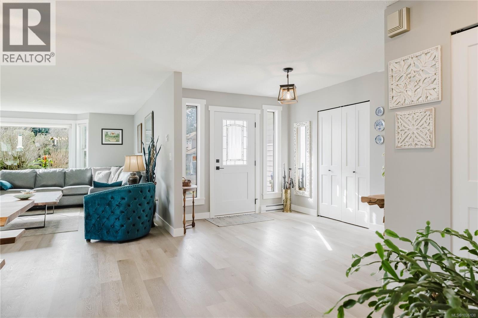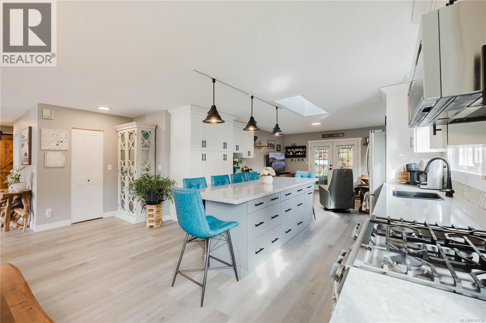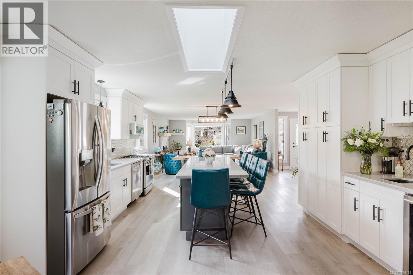 On a quiet street in Colwood Creek Estates, sits this extensively updated no-step RANCHER with a Double Car Garage. With almost 1,800 square feet of living space, 3 spacious bedrooms, 2 full bathrooms and a large level lot, this property is a must-see. The home has been stunningly updated, including new Luxury Vinyl flooring throughout with new carpets in the bedrooms; new kitchen featuring quartz counters, Large island with bar seating, tile backsplash and S/S appliances; 2 updated bathrooms with decorative tile flooring and new vanities; new light fixtures, trim, doors and baseboards; and fresh paint. The ductless heat pump makes this home very efficient, as does the new gas fireplace in the living room, featuring a custom wood mantle. Outside you will find a huge driveway, an additional space big enough for an RV, & a large, flat, fenced backyard. The location is quiet, yet central, & within walking distance to the Galloping Goose Trail, Colwood Creek Park & Belmont Shopping Centre. (id:44393)