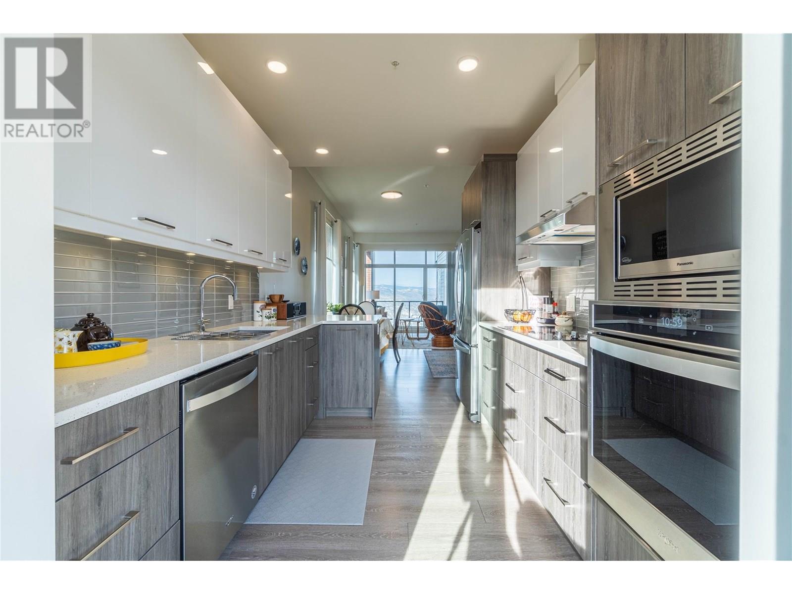 $491.65 MonthlyWelcome to this beautiful north south corner unit in Creston House. Featuring 2 bedrooms, 2 baths, 2 decks and two secure underground parking stalls! It has been single owner occupied for only 3 years so it’s still virtually new. Gorgeous stainless appliances, featuring a cooktop, wall oven, wall microwave, refrigerator and dishwasher. Solid surface counters and beautiful kitchen & bathroom cupboards are just some of the upscale finishes in this unit. Stacking washer and dryer, window blinds & curtains, large walk in master closet, triple width hall closet, proper entryway area, and extra storage unit in parking garage are just some of the amazing amenities. Located on the TRU campus it has on campus security and emergency call posts. The building has a rooftop garden box & relaxation area, an elevator, is in a walkable location, and has a green space with park benches in the back. Campus boasts, a Starbucks, a Subway, a large recreation facility with a gym, pool, and sporting events. Strata fees include, professional management, insurance, water, sewer, heat and AC, and garbage. The beautiful views of the mountains and valley are unobstructed. Pets and rentals (with restrictions) allowed. Come and view this beautiful property and you will see how truly special it is. All measurements are approximate and to be verified by buyer if deemed important. Quick possession is available. (id:44393)