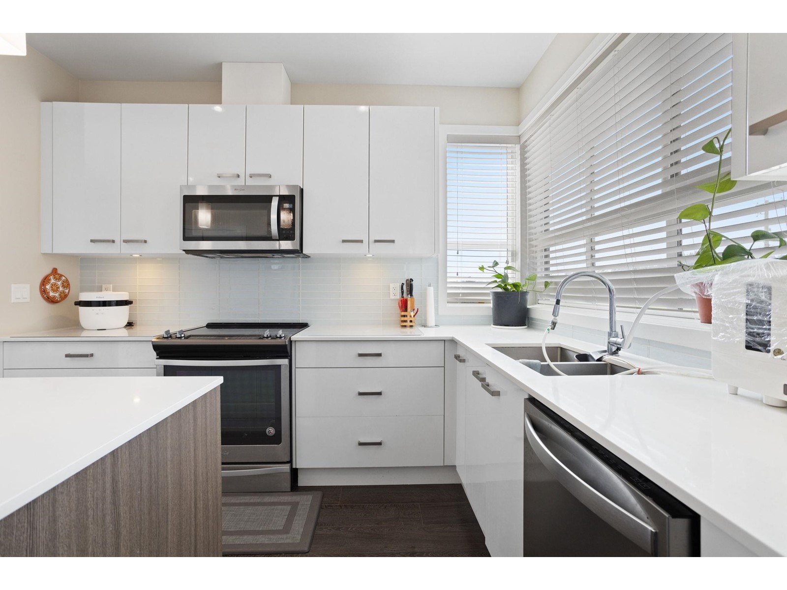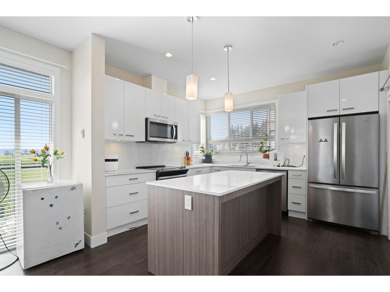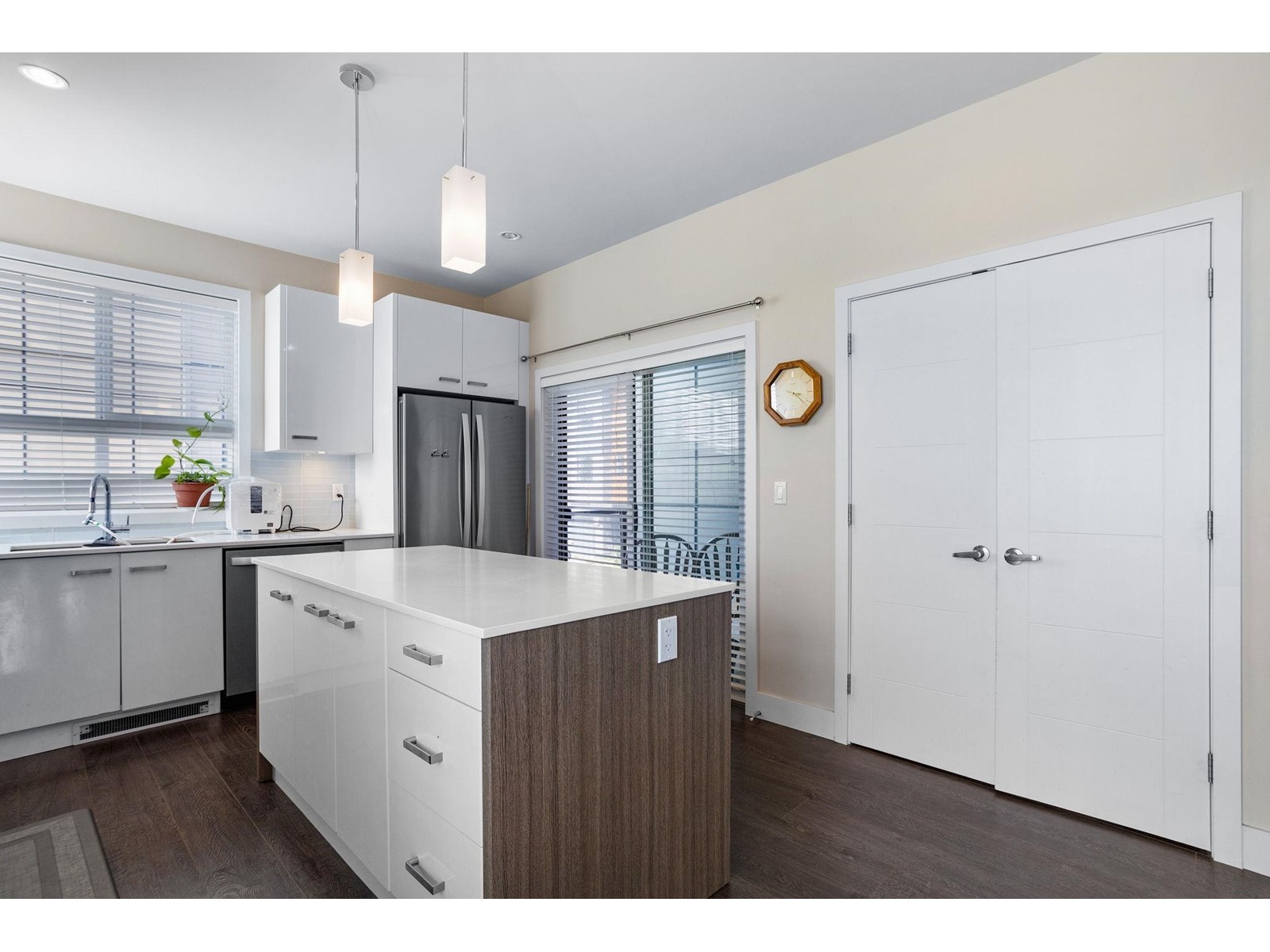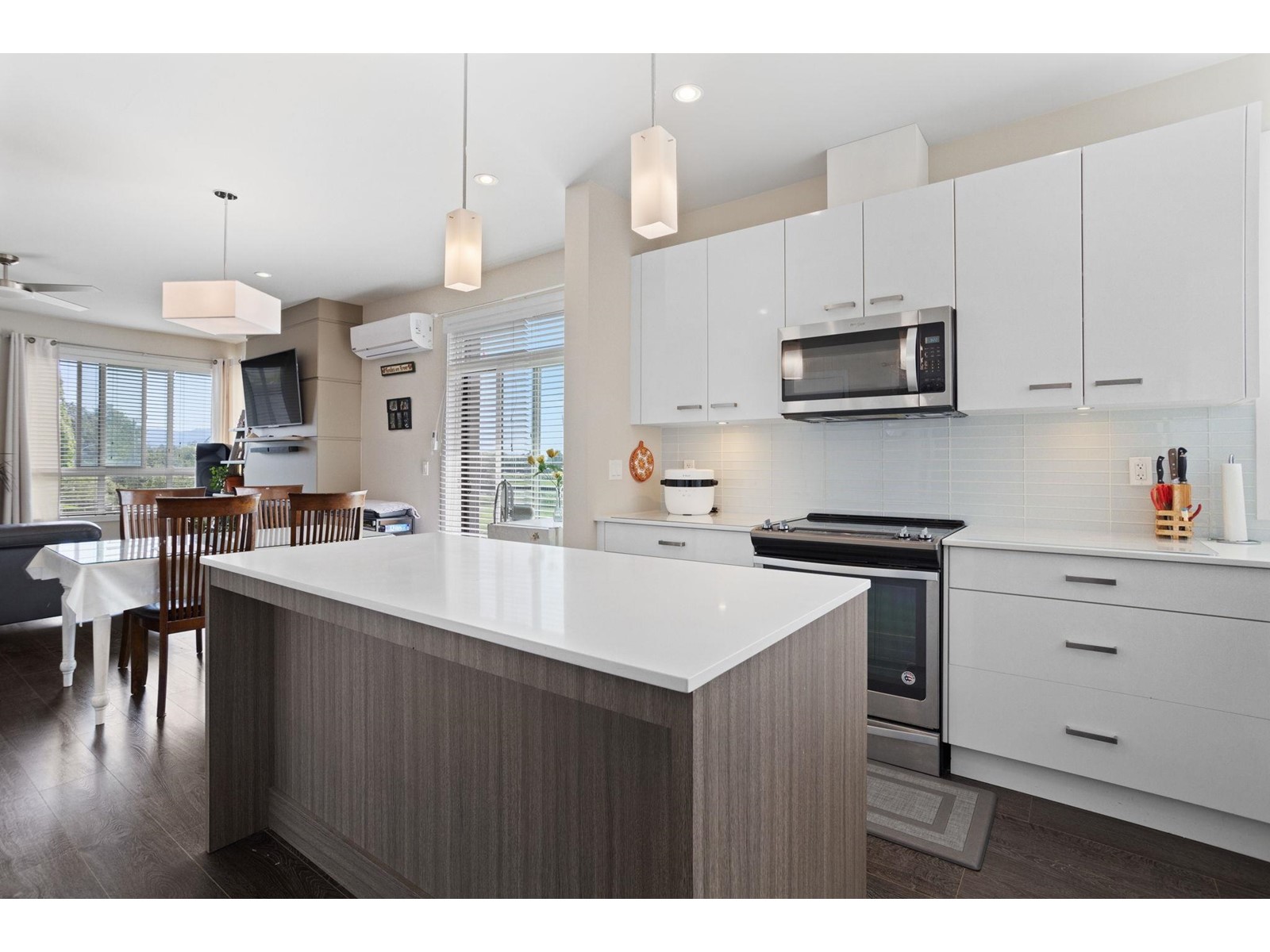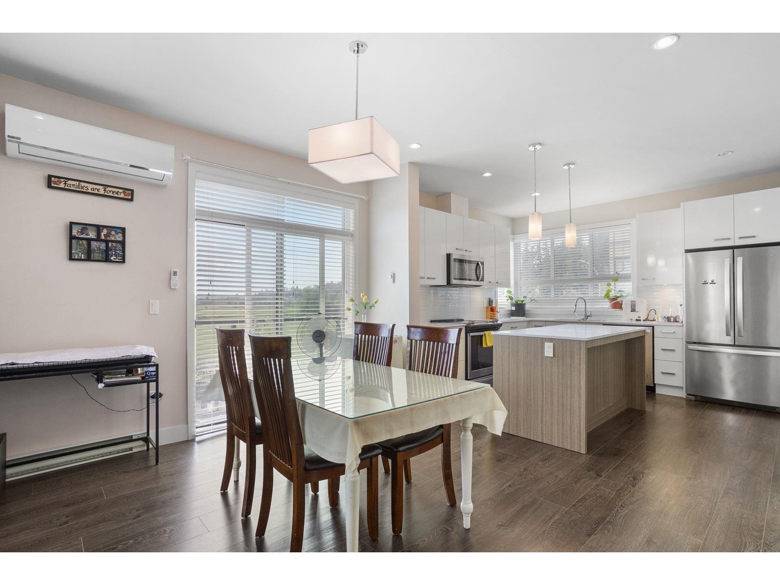 $260.79 MonthlyBeautiful East Abbotsford End unit in the sought after Parallel South townhouse development! Enjoy modern living with an open concept kitchen and living area with an array of natural light throughout. Kitchen features quartz countertops, stainless steel appliances, and large island perfect for entertaining. Unique to this unit there are 2 decks off of the main floor as well as a Heat Pump/AC for those warm summer days and nights. Vaulted ceilings in the primary bedroom, walk-in closet, gorgeous ensuite bathroom, and stunning Mt.Baker views. Two additional bedrooms upstairs and a BONUS room on the ground floor perfect for an office, play room or den. Large double garage plus one spot outside. Pet friendly and rentals allowed. Low maintenance fees. You don't want to miss out on this unit! (id:44393)