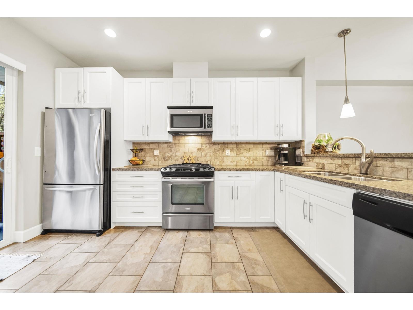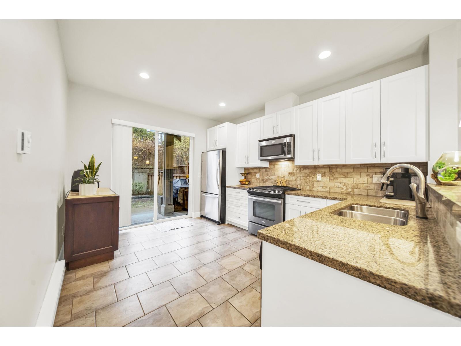 $403 MonthlyBacking onto a quiet protected greenbelt, this freshly updated 2-bedroom townhome in the sought-after Enclave community offers bright, comfortable living. The main floor features an open layout with a spacious living area, kitchen, and dining space, plus walk-out access to a private backyard-perfect for relaxing or hosting friends. Upstairs you'll find a generous primary bedroom, a second bright bedroom, a full bathroom, and convenient his-and-hers closets. Fresh paint and updated kitchen cabinetry give the home a clean, modern feel. Complete with a double tandem garage and ideally located just minutes from the shops, restaurants, and amenities of Grandview Heights and Morgan Crossing. Catchment: Sunnyside Elementary and Semiahmoo Secondary (IB Program). (id:44393)