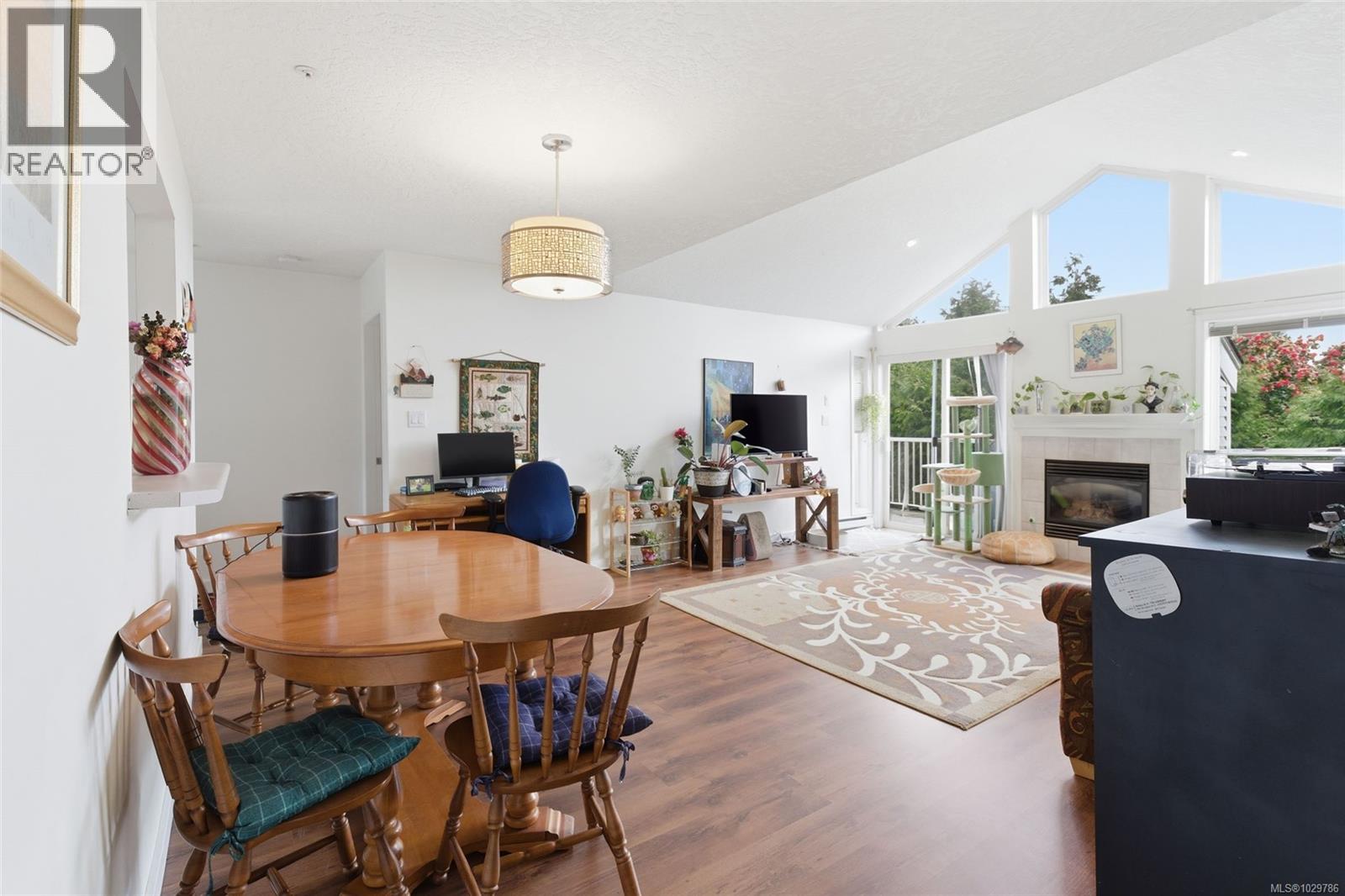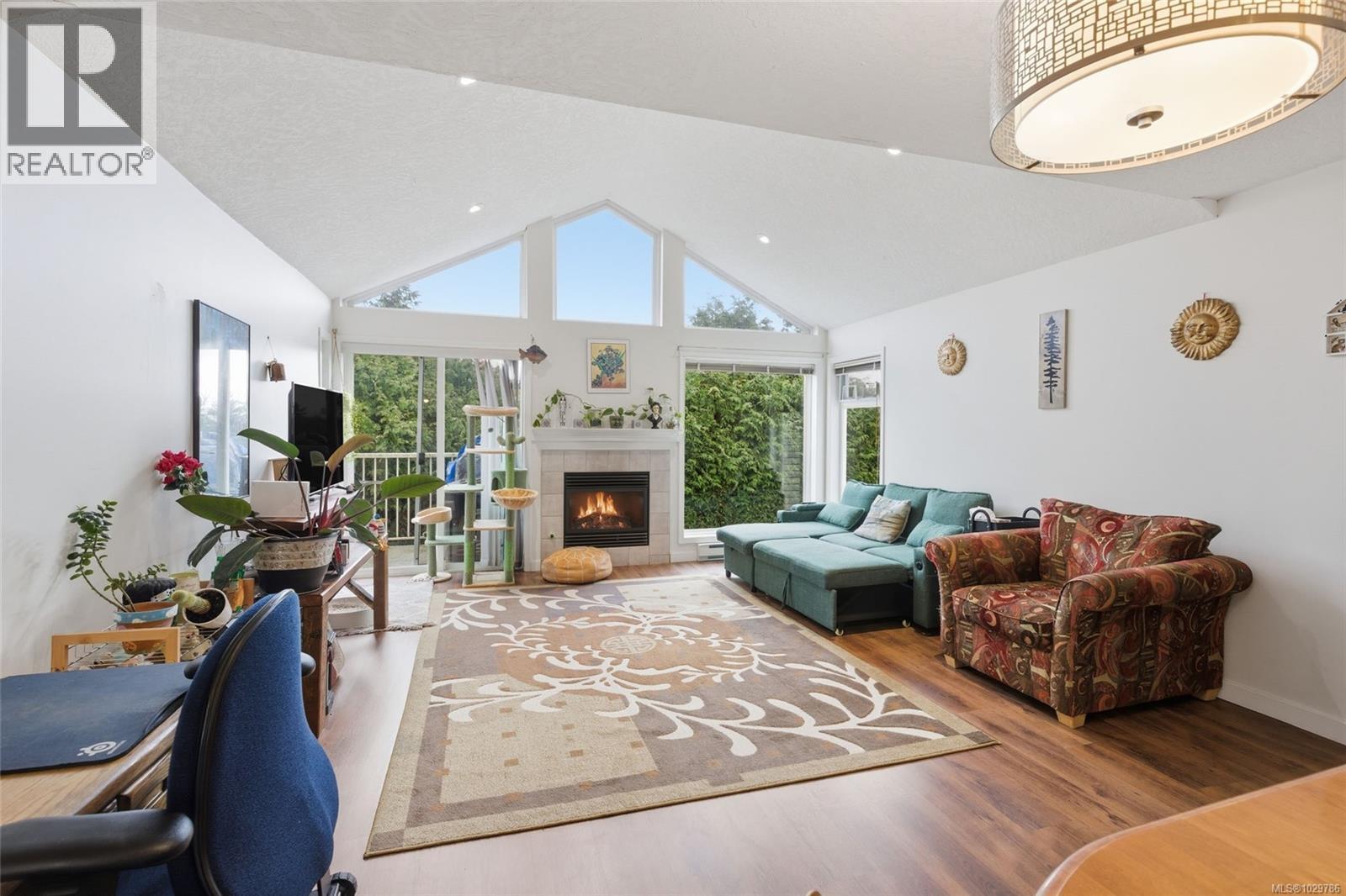 $420.45 MonthlyWelcome to Park Ridge Place! This bright upper-level 2-bedroom, 2-bathroom townhome offers a spacious, open-concept design in a central Nanaimo location. Vaulted ceilings in the living room enhance the sense of space, while the cozy gas fireplace creates a warm focal point. The home features newer appliances throughout for added comfort and peace of mind. The kitchen flows seamlessly into the dining and living areas—ideal for everyday living and entertaining. Step out onto the deck from both the living room and primary bedroom, perfect for relaxing outdoors. Enjoy the convenience of a single-car garage with mezzanine storage plus an additional parking stall right beside the garage. Located within walking distance to Bowen Park’s trails and amenities, the Nanaimo Seawall, transit, and shopping, this home supports an active, connected lifestyle. A fantastic opportunity for low-maintenance living in a desirable community. (id:44393)