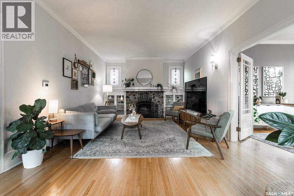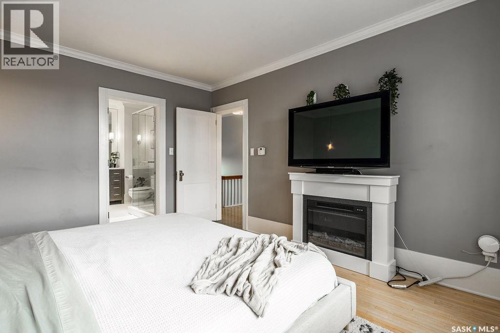 Like a private estate in the heart of the city, this beautifully updated 1,958 sqft two-storey captures your breathe from the moment you arrive. This huge lot has great street appeal with a 10ft hedge that surrounds the property. Step inside to a beautiful foyer that showcases the charming staircase. To the left of the foyer is a formal dining space and an updated modern kitchen with stainless steel appliances, gas range, built-in microwave and plenty of cabinetry. On the other side of the foyer there is a large living room with a wood burning fireplace, built-in cabinetry and two stained glass windows. A pair of french doors leads you into the bright sun-filled office. Upstairs, the primary bedroom features an electric fireplace and leads to a modern 3-pc ensuite with a walk-in tiled shower, and large walk-in closet. There are two more bedrooms and another 3-pc bathroom with a standalone soaker tub. Through one of the bedrooms is a bonus room with 2 walls of windows and tons of natural light, perfect for an office, another bedroom, sunroom or gym.. Downstairs, the fully finished basement has a spacious family room with an electric fireplace, another bedroom, a 3-pc bathroom, extra storage and a laundry room with a sink. The entire home has the perfect balance of original character details and modern updates. The yard leaves you wanting for nothing except more time outside with a firepit area, garden area, two large sheds, and tons of privacy. An oversized double detached garage with heated floors makes for easy convenience in the winters. There is also a long paved driveway perfect for RV parking. This private estate-style home is unique and impressive. Schedule your showing today! (id:44393)