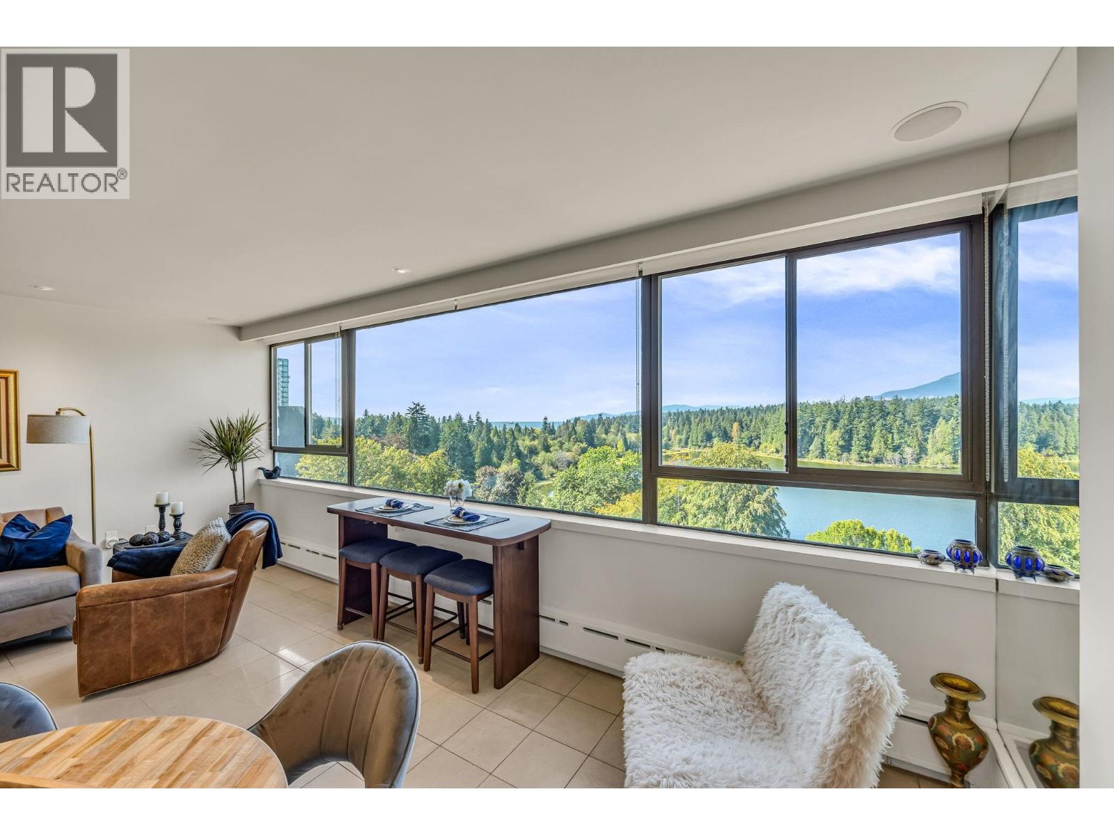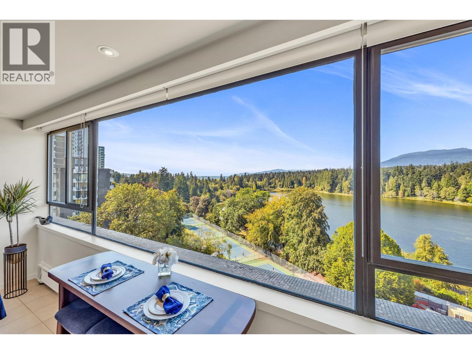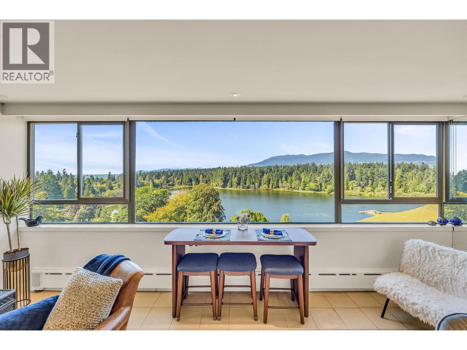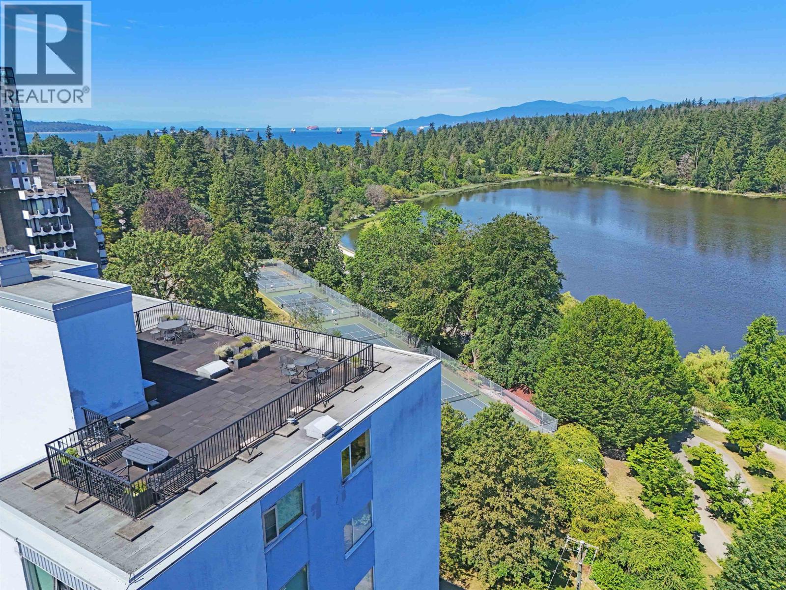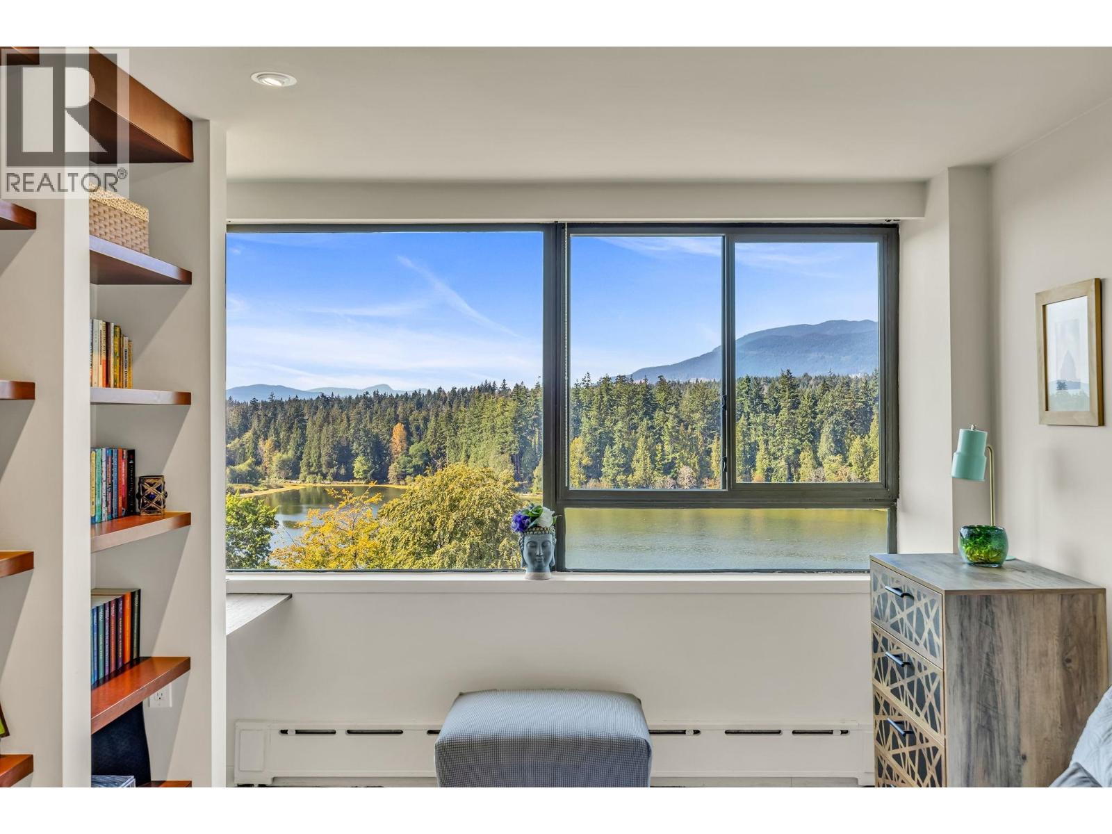 $895.49 MonthlyExperience urban living right next to 1,000 acres of lush forest! This top-floor, open-plan 1 BR home delights with truly stunning, unobstructed vistas sweeping over Lost Lagoon, N.S Mnts, and the freighters. Custom millwork throughout, hideaway TV cabinet, ceiling speakers, and art lighting. Perfect for entertaining, the living/dining/kitchen area lets you soak in those breathtaking scenes from every angle. The XL bedroom features built-in drawers and a beautifully finished closet, complemented by a luxurious bath with a heated floor. Step outside to endless recreation: the Seawall, tennis courts, and bike trails. Abundant visitor parking, plus a spectacular roofdeck just upstairs. Includes storage, indoor parking. No pets, no rental, 19+. Open by APP: Oct 12th 2-3. (id:44393)