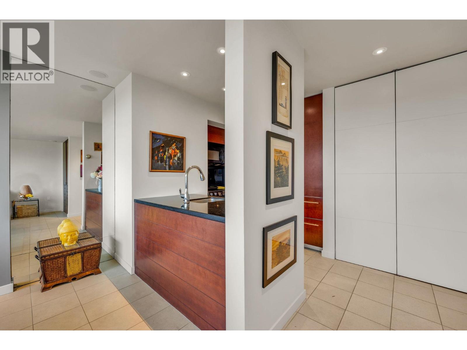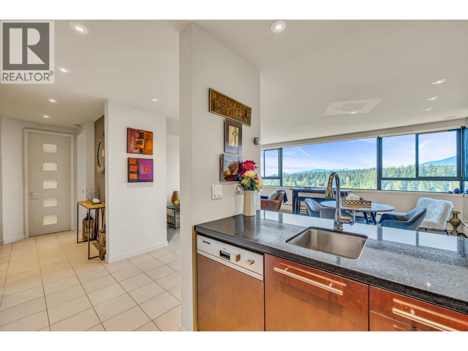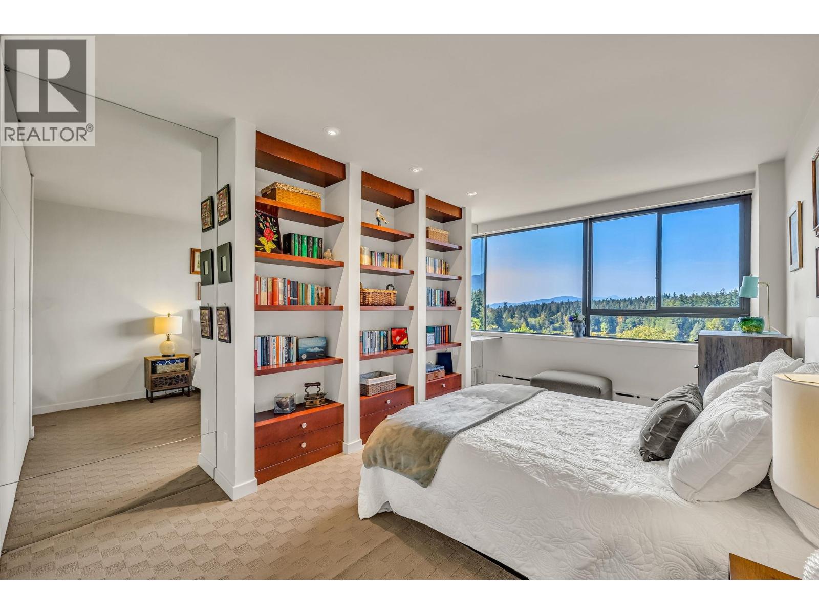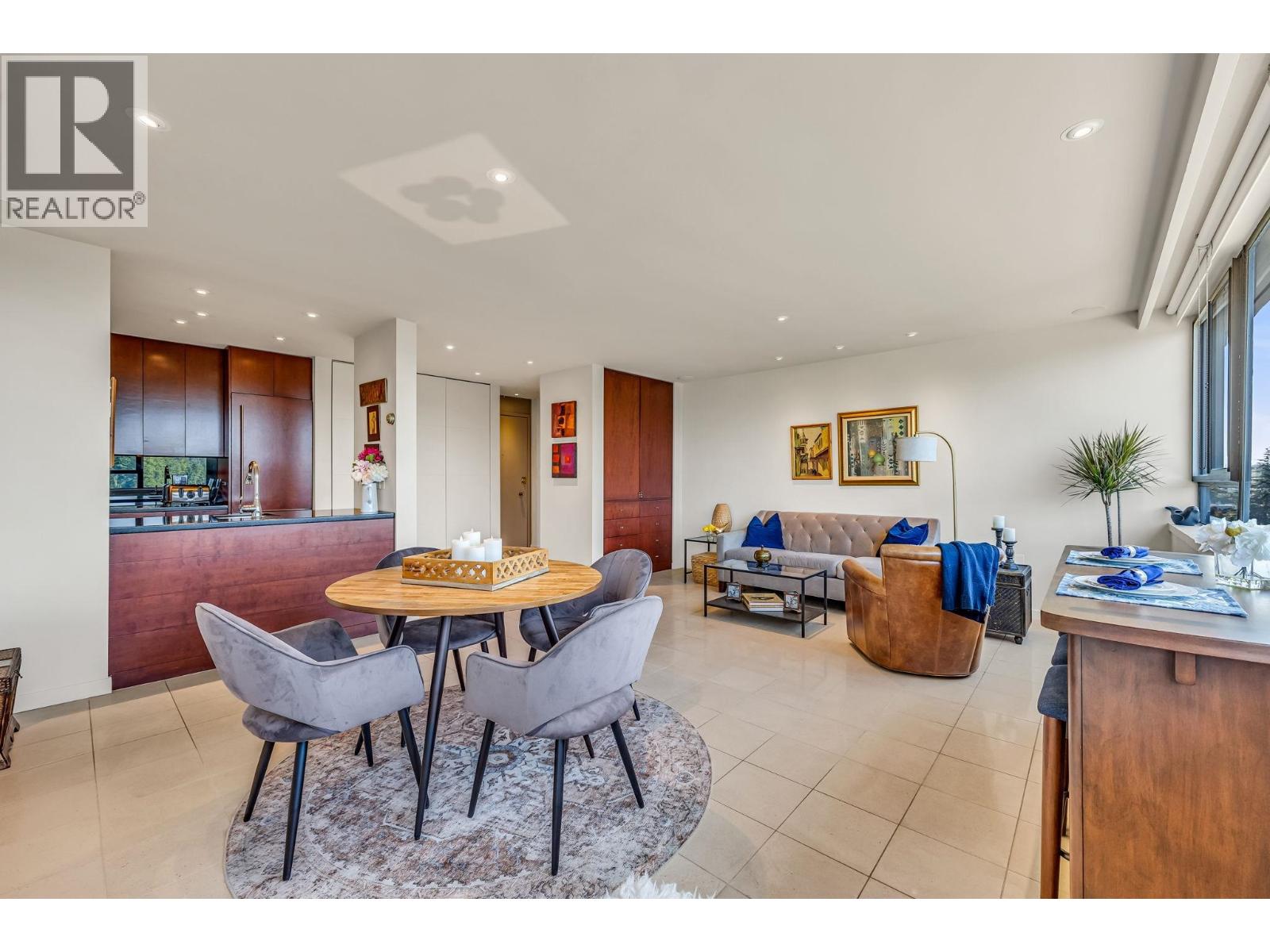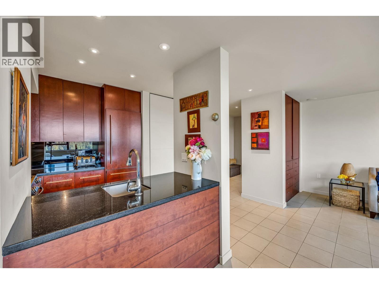 $895.49 MonthlyExperience urban living right next to 1,000 acres of lush forest! This top-floor, open-plan 1 BR home delights with truly stunning, unobstructed vistas sweeping over Lost Lagoon, N.S Mnts, and the freighters. Custom millwork throughout, hideaway TV cabinet, ceiling speakers, and art lighting. Perfect for entertaining, the living/dining/kitchen area lets you soak in those breathtaking scenes from every angle. The XL bedroom features built-in drawers and a beautifully finished closet, complemented by a luxurious bath with a heated floor. Step outside to endless recreation: the Seawall, tennis courts, and bike trails. Abundant visitor parking, plus a spectacular roofdeck just upstairs. Includes storage, indoor parking. No pets, no rental, 19+. Open by APP: Oct 12th 2-3. (id:44393)