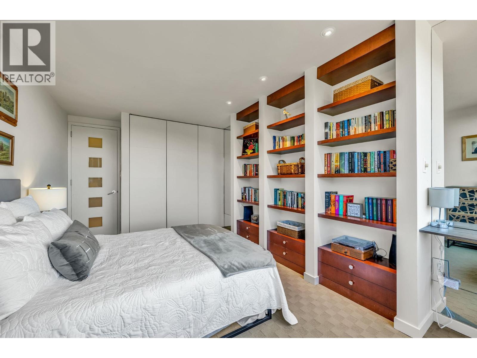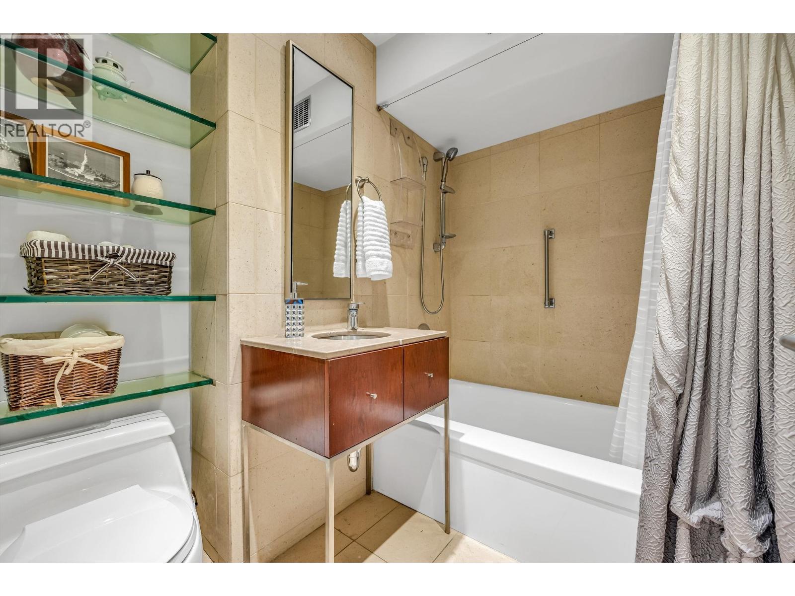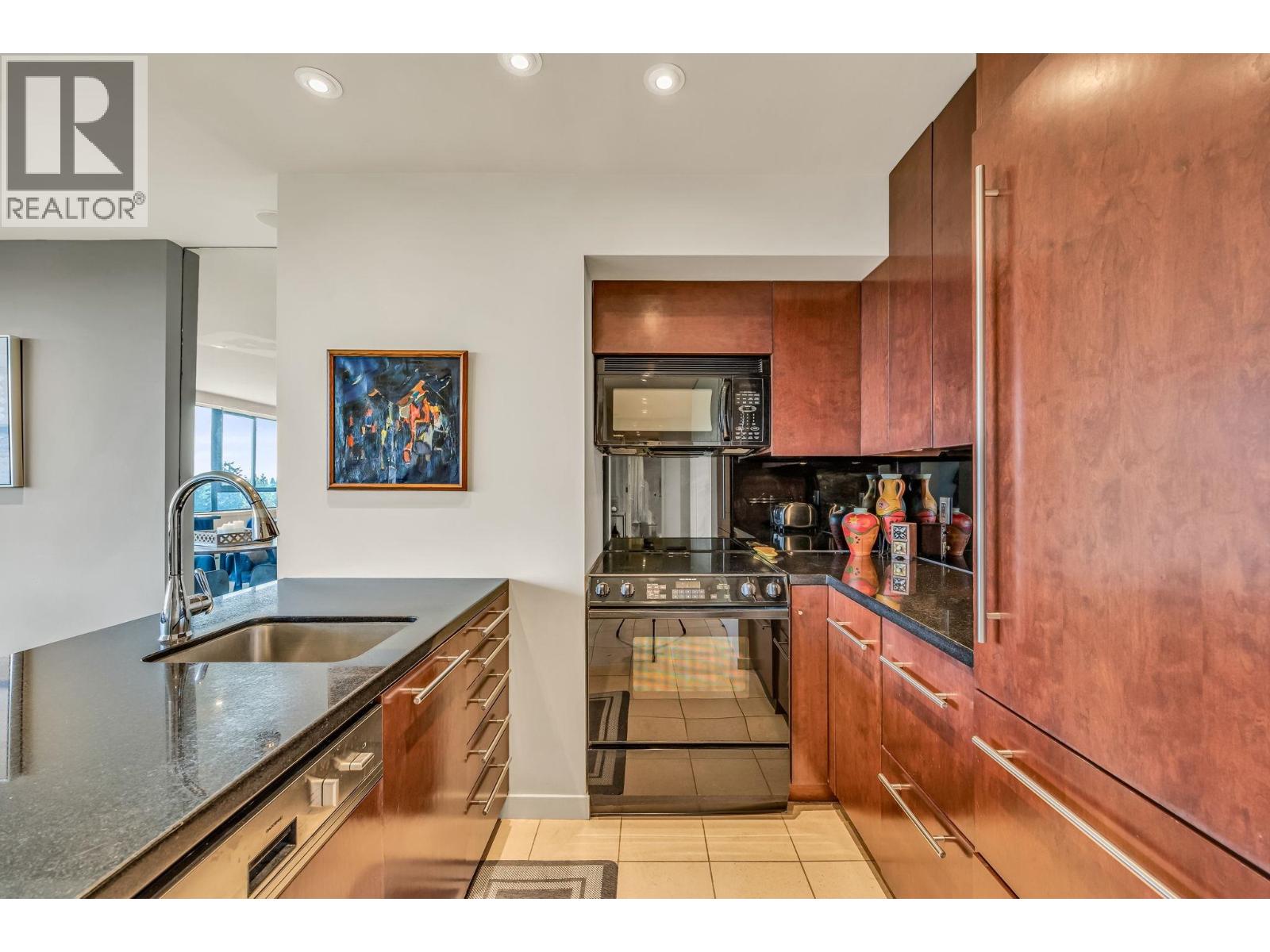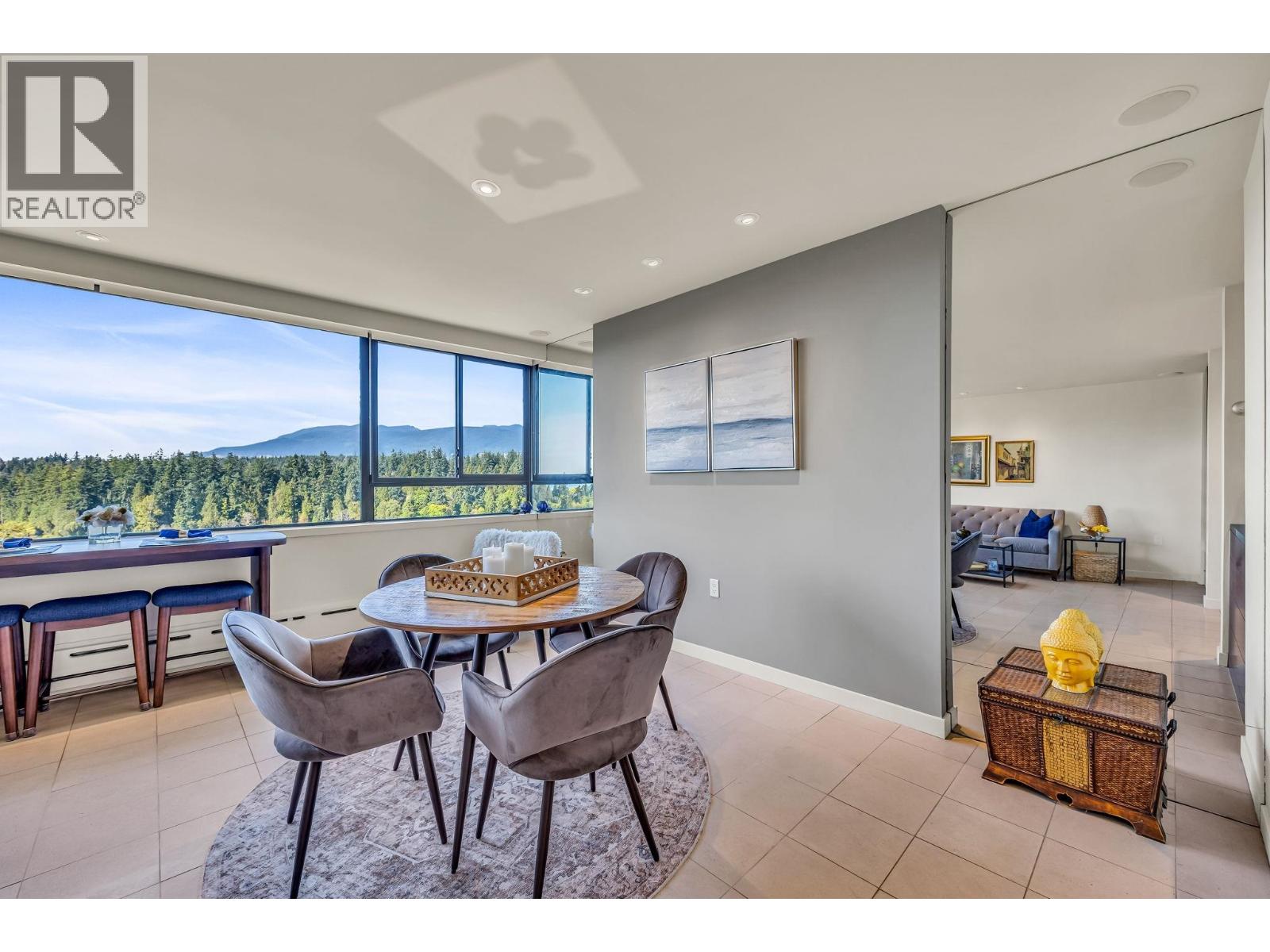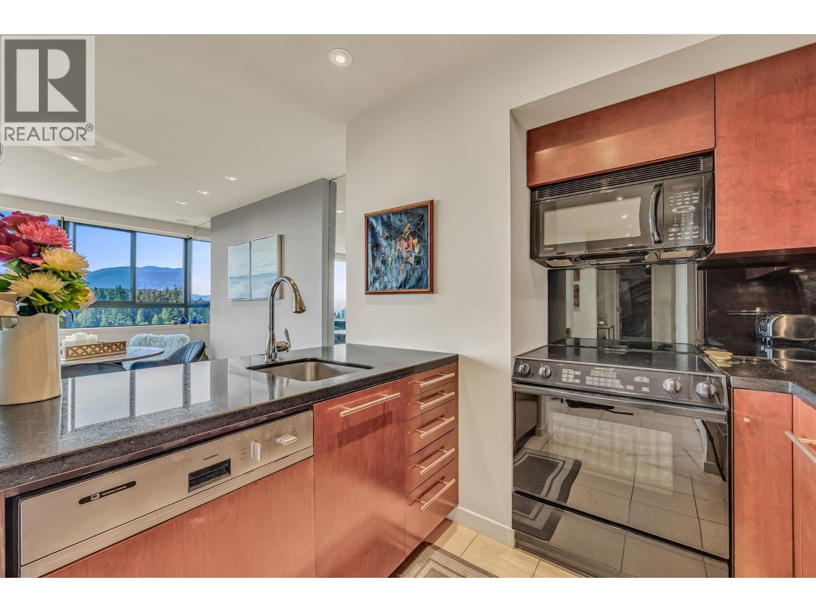 $895.49 MonthlyExperience urban living right next to 1,000 acres of lush forest! This top-floor, open-plan 1 BR home delights with truly stunning, unobstructed vistas sweeping over Lost Lagoon, N.S Mnts, and the freighters. Custom millwork throughout, hideaway TV cabinet, ceiling speakers, and art lighting. Perfect for entertaining, the living/dining/kitchen area lets you soak in those breathtaking scenes from every angle. The XL bedroom features built-in drawers and a beautifully finished closet, complemented by a luxurious bath with a heated floor. Step outside to endless recreation: the Seawall, tennis courts, and bike trails. Abundant visitor parking, plus a spectacular roofdeck just upstairs. Includes storage, indoor parking. No pets, no rental, 19+. Open by APP: Oct 12th 2-3. (id:44393)