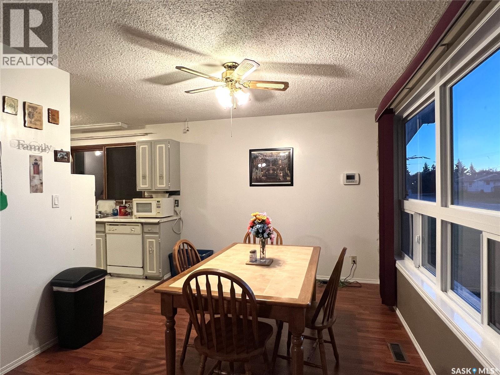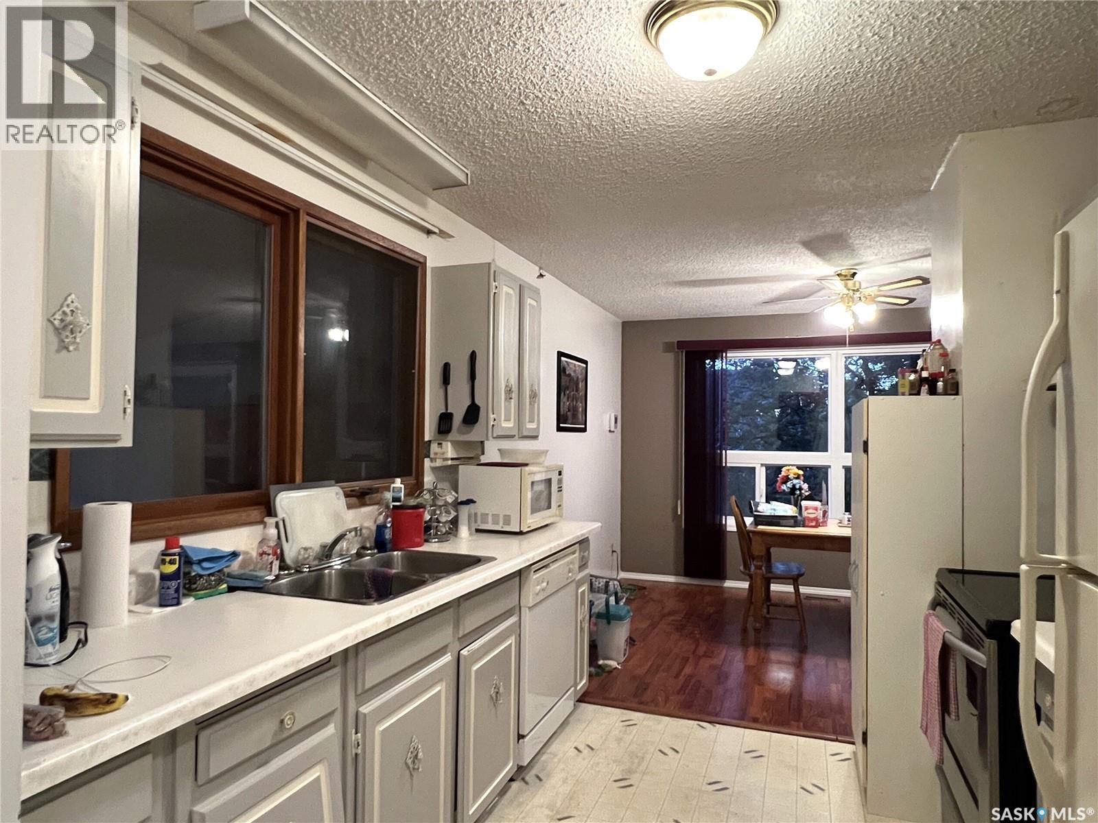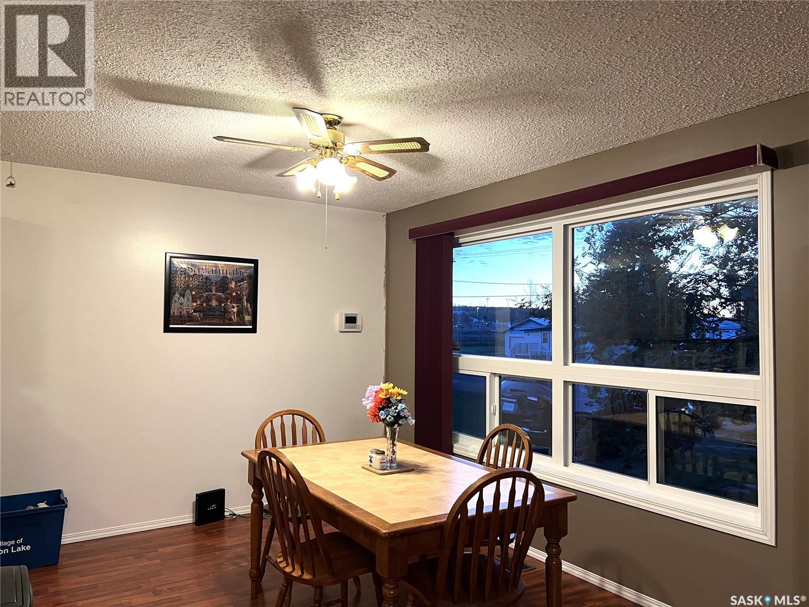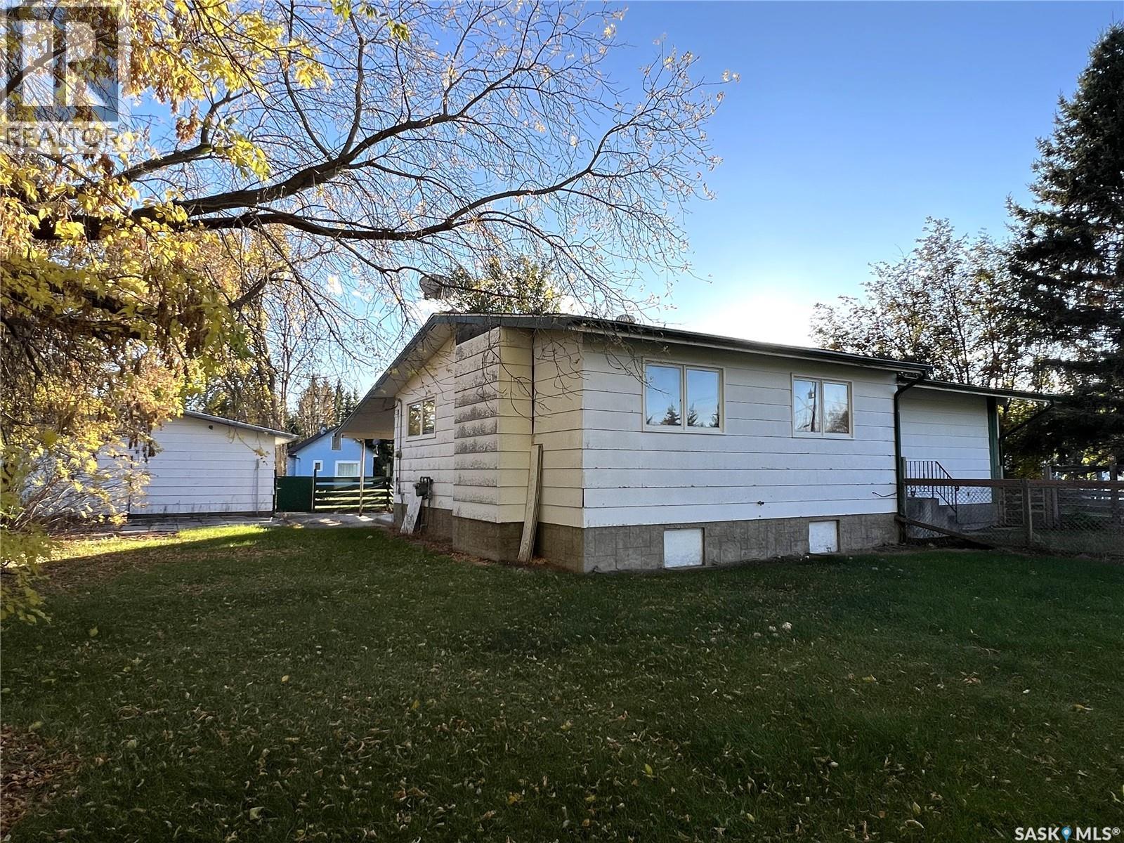 This 3 bedroom bungalow with double detached garage is located in the Village of Loon Lake and is situated on 3 lots. Main floor hosts kitchen with ample counter space, nice sized dining room, large living room with access to the backyard, primary bedroom with large closet, 2 decent sized bedrooms and a 4pc bathroom. Windows in living room and dining room have been replaced. Primary bedroom ensuite was converted into main floor laundry, but could easily be changed back. Lower level is partially finished, rooms are framed, just needs flooring and some drywall to be completed. The carport on the south side has been closed in and makes a great mudroom. There is also a room on the SW side of the carport which would work great for a home based business, as it has its own access. Water heater 2021, furnace approx. 2010, laminate flooring throughout majority of main level, house shingles approx. 2007, garage shingles 2015, sewer line replaced from street to house. Yard is well developed, is partially fenced and the patio on east side is great for your morning coffee. Lots of room for RV parking. The Makwa Lake Provincial Park is only 5 minutes away which gives you access to great fishing, boating, snowmobiling and golfing. (id:44393)