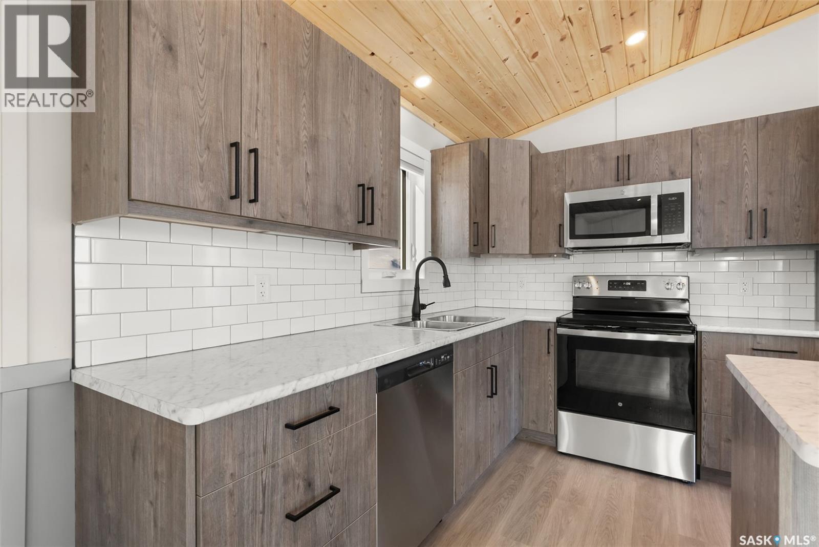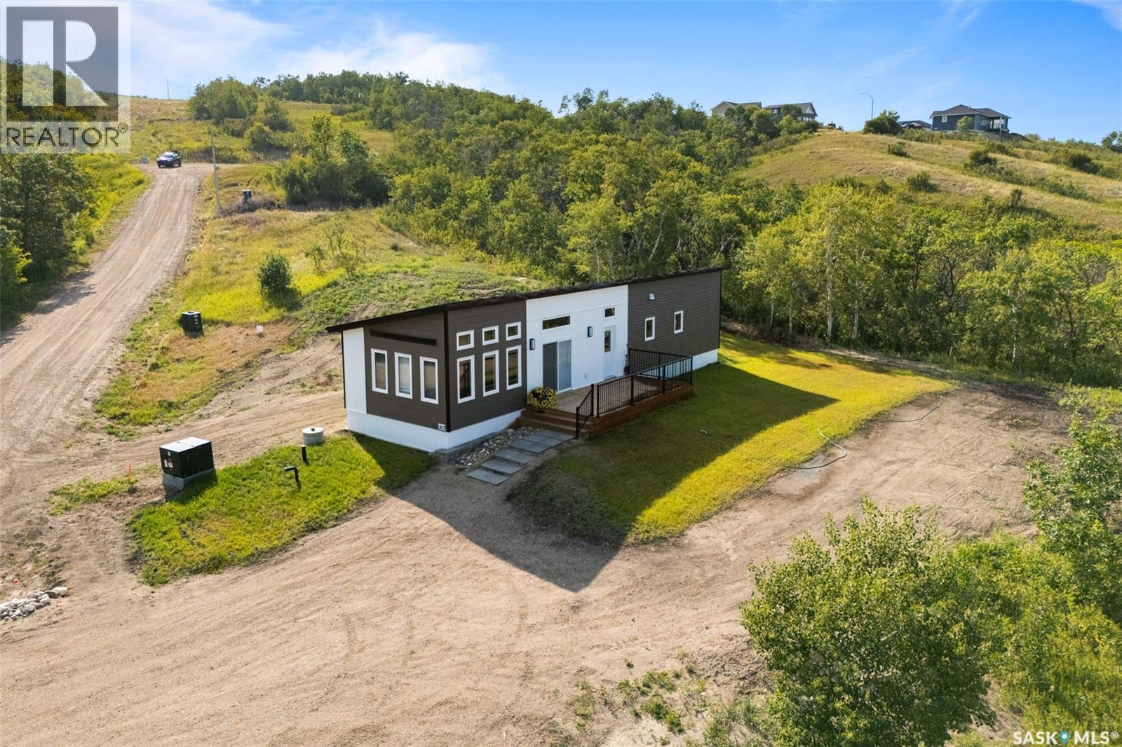 Your dream lake life awaits for ONLY $325,000!! (Garage build also available) BRAND NEW Year-Round Getaway at Katepwa Lake! Welcome to Pincherry Place in Berry Hills Estates, where breathtaking lake views and modern comfort come together in this brand-new 960 sq. ft. bungalow. Sitting on 10 secure screw piles, this home offers complete peace of mind with a new 2000gal septic tank and 220' well. The open-concept design features a spacious great room with tall ceilings and large windows, flooding the space with natural light and stunning views of Katepwa Lake. The stylish kitchen boasts soft-close cabinetry, brand-new stainless steel appliances, and an eat-up island, perfect for entertaining. A pine ceiling with plenty of pot lighting adds a cozy, cottage feel. This home includes two large bedrooms, with the primary suite featuring a private ensuite with tile walk-in shower and built-in wardrobe. Additional highlights include a 200-amp panel, skirting, beautiful siding, and a large deck, while a forced-air natural gas furnace, water heater, and A/C ensure year-round comfort. Plus, hi-speed internet lets you work from home with ease or unwind with your favourite Netflix series. The property backs onto a municipal reserve with a wooded ravine area, ideal for a fire pit area, kids' play structure, or private retreat. Located just five minutes from Katepwa Beach Provincial Park, boat launch, and local dining, and within 15 minutes of three stunning golf courses, this home is perfect for outdoor lovers. Down the street is a park, outdoor rink, and many other amenities. Less than an hour from Regina, Berry Hills Estates provides the perfect mix of relaxation, convenience, and community. With dedicated developers maintaining the subdivision, this is your chance to own a BRAND NEW stunning lake retreat. Don't wait—YOUR LAKE LIFE AWAITS! Contact your real estate professional today! **Developer is open to coordinating a garage build** (Some virtually staged photos) (id:44393)