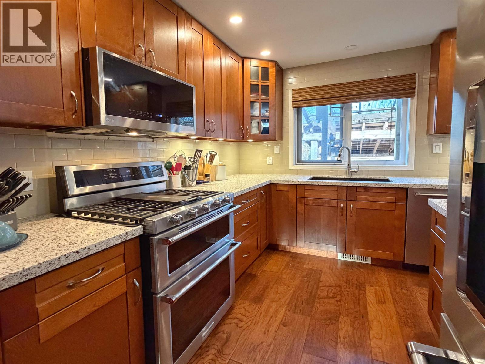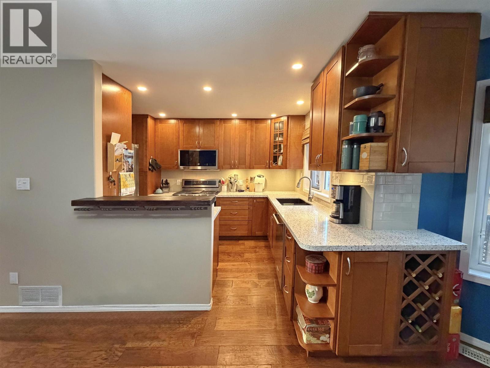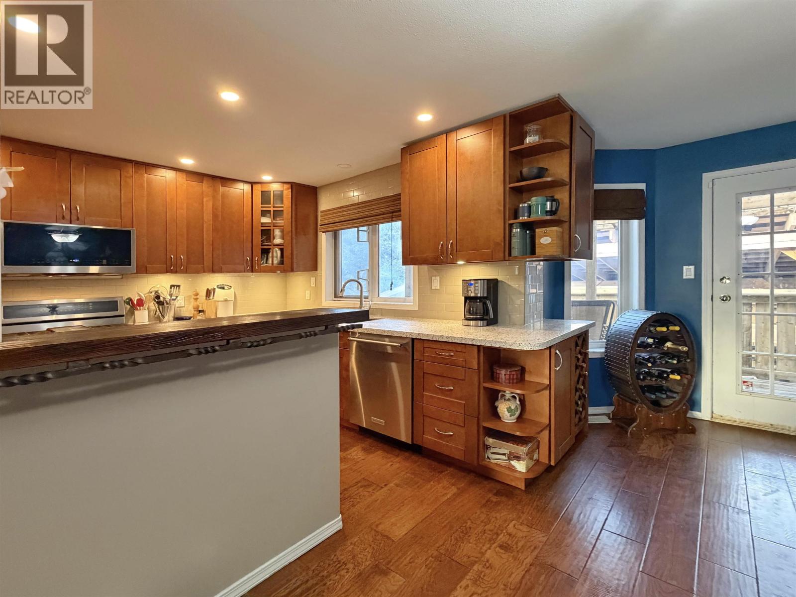 This tastefully updated 3 bedroom, 3 bath home is nestled in sunny, quiet Port Edward, surrounded by lush green space for added privacy. The property offers excellent off-street parking, a double car garage, and convenient backyard access to a large shed and greenhouse—perfect for hobbies, storage, or outdoor projects. Inside, you’ll love the beautifully renovated kitchen featuring high-end appliances, solid surface countertops, and a functional layout ideal for entertaining. French doors off the dining room open to a covered deck overlooking the backyard—an inviting space for year-round relaxation. Additional upgrades include a tankless hot water system, perimeter drainage (2015), roof (2013), and back deck (2018). Well cared for and move-in ready, this home offers comfort, quality, and plenty of room for all your toys in a peaceful setting. (id:44393)