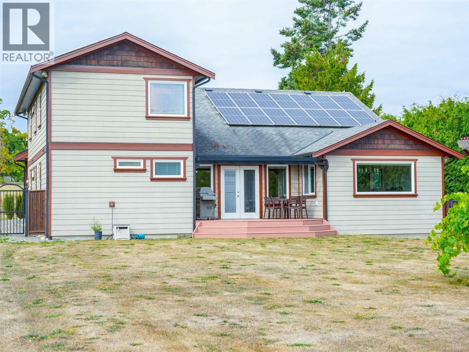 SPACIOUS, SOLAR POWERED LUXURY FAMILY HOME THAT FEELS LIKE IT’S IN THE COUNTRY and is just minutes to amenities! 35 Solar panels provide over 80% percent of power for the nearly new house. A bright, high-ceiling, open floor plan with 2 identical primary bedrooms – one on main floor and one on upper floor, both with walk-in closets and spacious 5 piece ensuites with separate soaker tubs, showers & twin sinks. Large, well-designed kitchen with lots of cupboards. 2 more bedrooms, 4 bathrooms, heated tile & wood floors. Great for multi-generational living. Entry level design ideal for wheelchairs too. On a quiet cul de sac, the enormous, fully-fenced, private, level back yard with fruit trees and a veggie garden is ideal for kids, pets & gardeners. Open farmland across the street makes it feel remote, yet it’s only 7 minutes to groceries in Sidney. Lots of room for toys in oversize double garage. Plenty of storage. This home has it all, come see it for yourself! (id:44393)