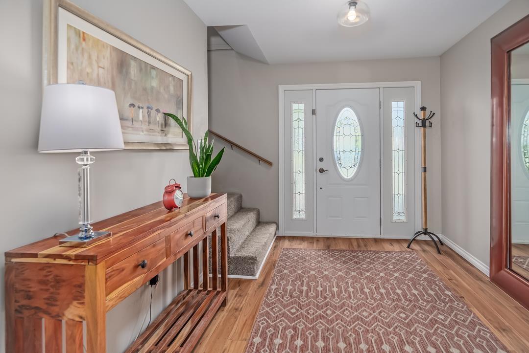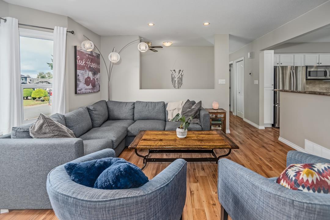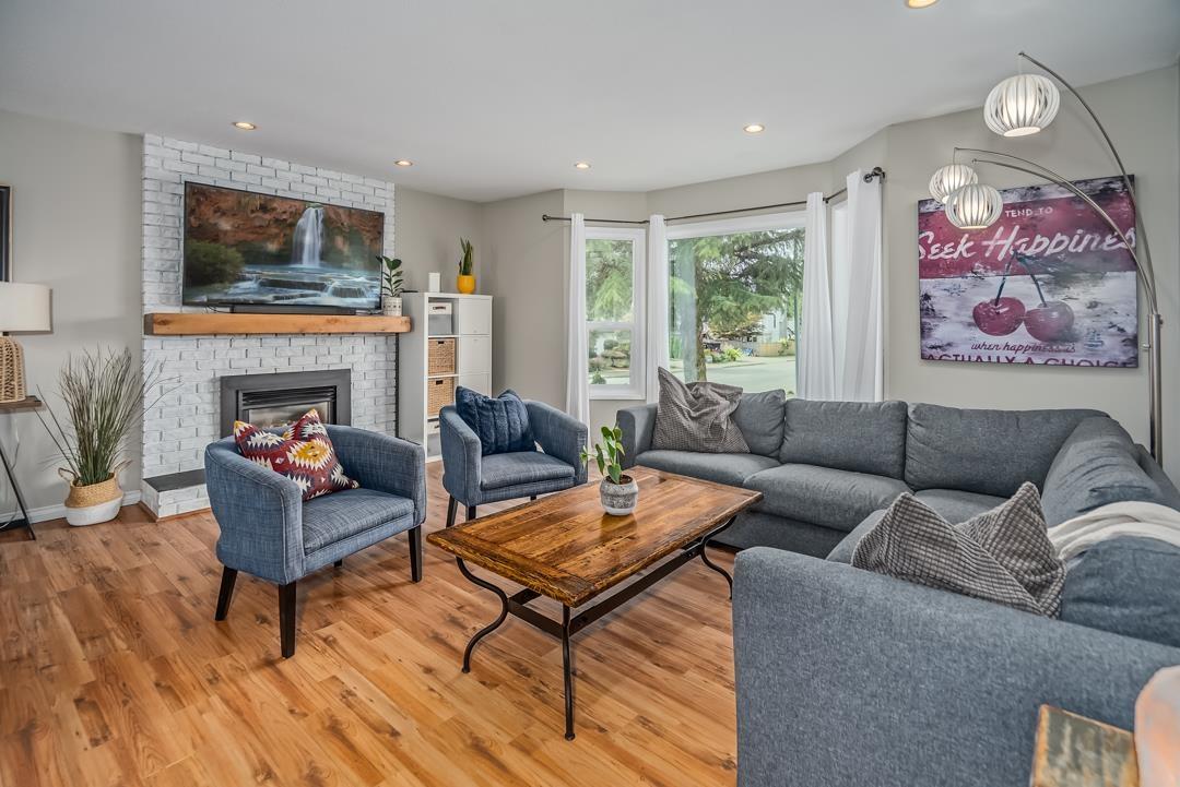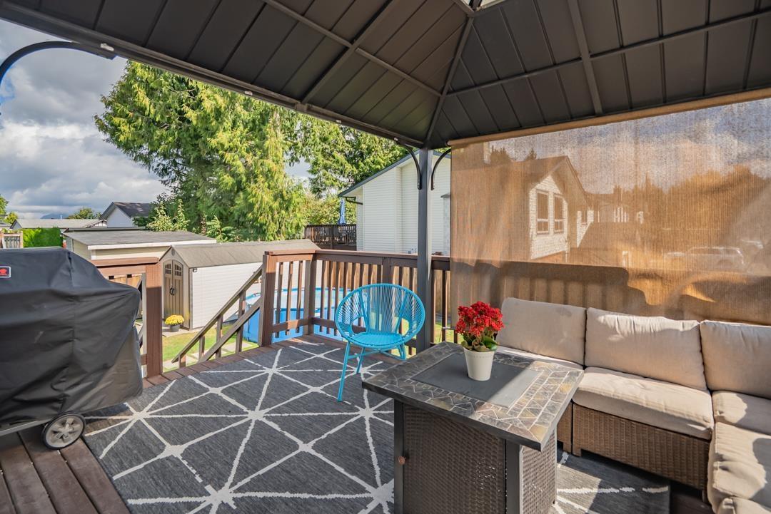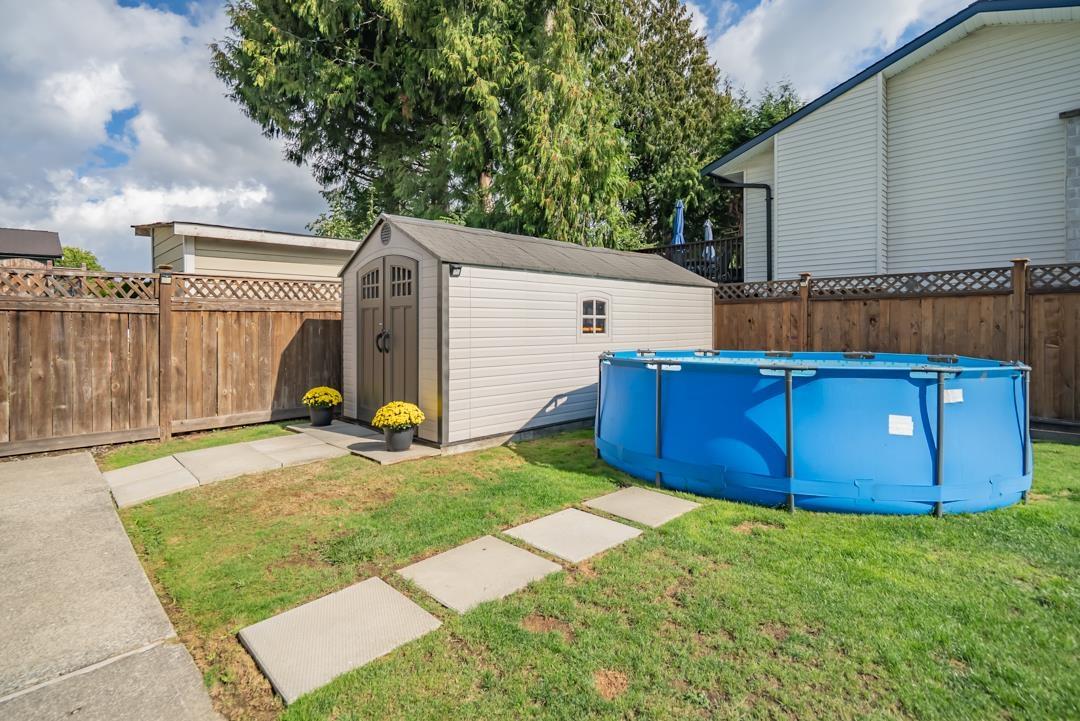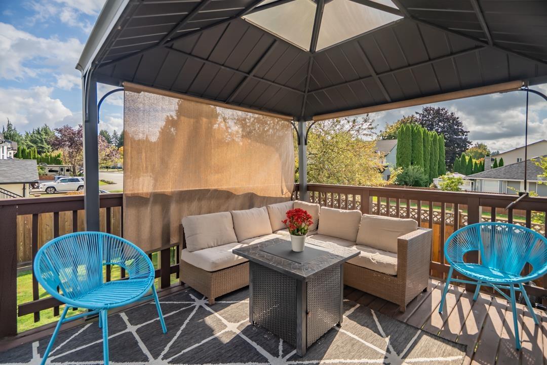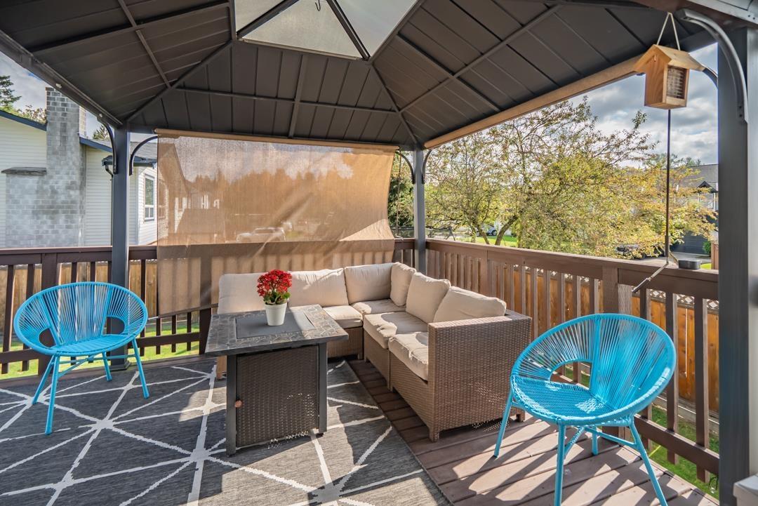 Welcome to popular Walnut Grove and this well cared for basement entry home. Offering 2000 s/f of living space the main floor features an open concept living area. Bright kitchen offers lots of cabinet space & newer S/S appliances. 3 spacious bedrooms up & a 4th down. Dining room walks out to a spacious balcony with Gazebo & beautiful mountain views. Well manicured yard offers a large 17 x 7'6 shed & new fence. Situated on a 5953 s/f corner lot & offering plenty of parking including for your RV or boat on the side! New roof, windows & gutters! 1 year hot h2o tank & a fresh coat of paint throughout. Central A/C! Walking to distance to schools, shopping & transit. Close to everything but nothing comes close! (id:44393)