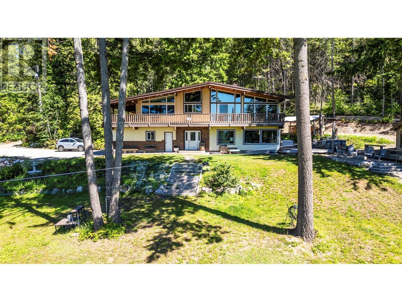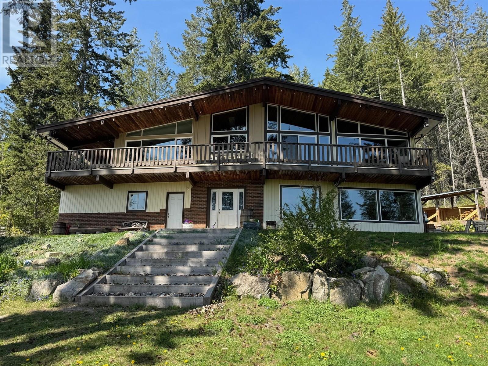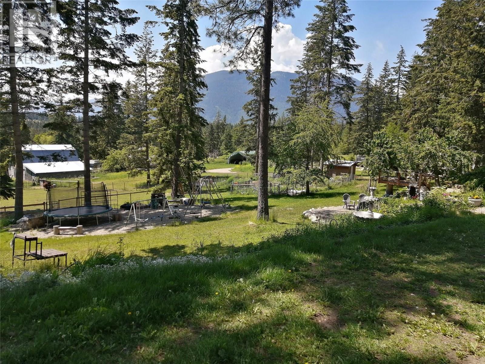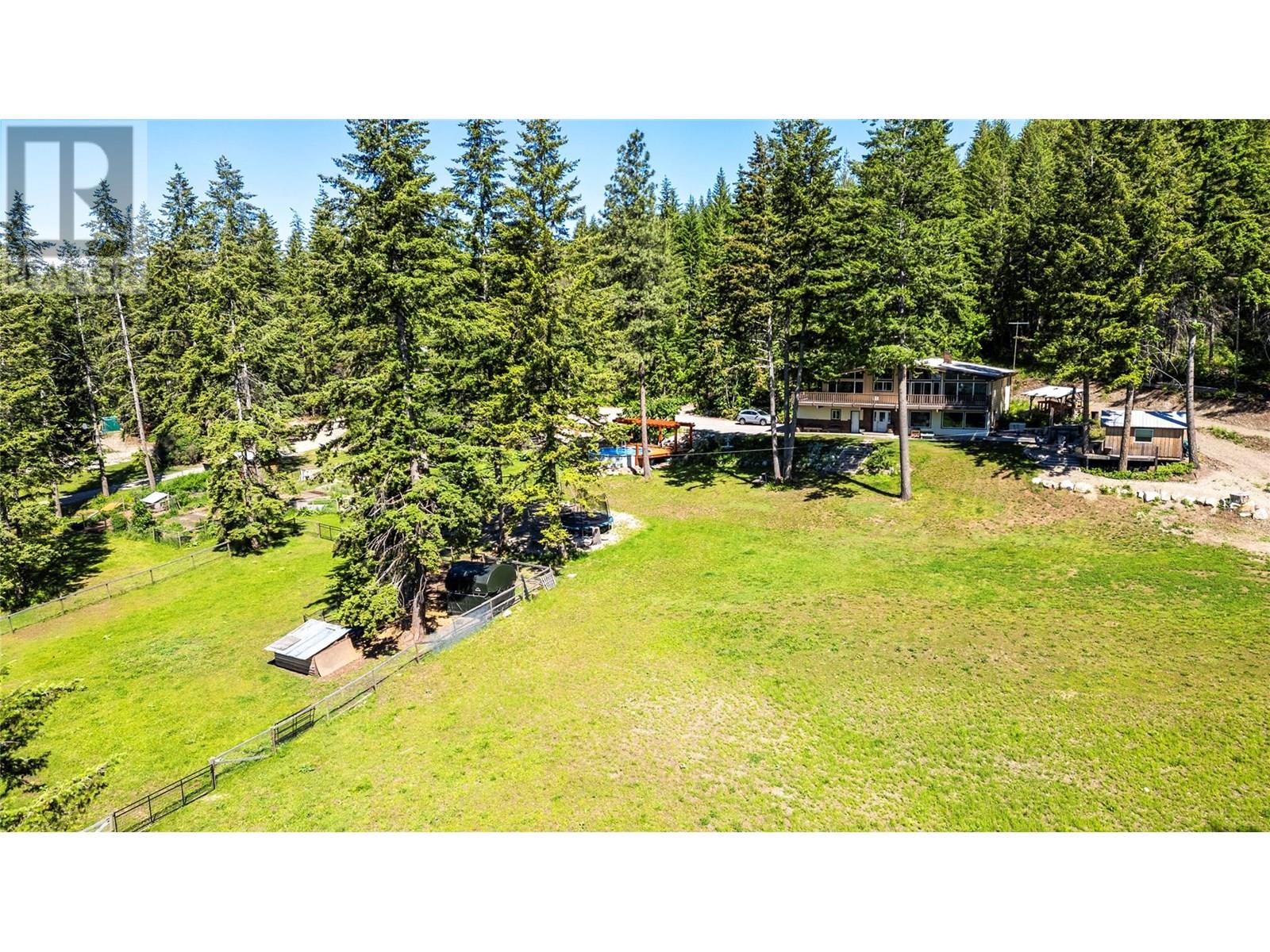 Discover the perfect blend of rustic charm and modern living in this beautifully renovated 9.85-acre property. Nestled in a serene setting, this exceptional acreage offers views of Shuswap Lake and surrounding mountains and valleys making it an ideal retreat for nature lovers and those seeking a tranquil lifestyle. The centerpiece of the property is a beautifully updated five-bedroom, three-bathroom home. Inside, you'll find an inviting open-concept kitchen with striking wood beams, high ceilings, and a warm, rustic ambiance. The living area is anchored by a stunning custom rock wood fire place creating a cozy focal point for gatherings. Step outside onto the wrap-around deck, where you can take in the breathtaking views and relax in complete privacy. The lower level boasts a spacious family room, kitchenette, 2 bedrooms, bathroom and small storage room which presents great opportunity for a second separate living area. This could easily be used as an inlaw suite, air bnb, rental opportunity, or additional living space tailored to your needs with it's own entry and deck area. The large roundabout driveway ensures easy access and ample parking. An fully serviced RV hook-up site (with it's own septice field) nestled in the trees is an added bonus for guests, family or rental income. This expansive property is well-equipped for country living, featuring a barn, stalls/stable, ample space for horses, chicken coop, and sheep, as well as a welcoming environment for family pets, including cats and dogs. The land is highly usable, offering endless possibilities for farming, recreation, or simply enjoying the great outdoors. Enjoy fruit from the cherry trees, blueberry bushes and pear trees in the summer and put your green thumb to work in the raised garden beds. A 21ft diameter above ground pool built into a stunning deck completes the outdoor living area. A place to embrace the rural lifestyle, this exceptional property has it all. (id:44393)