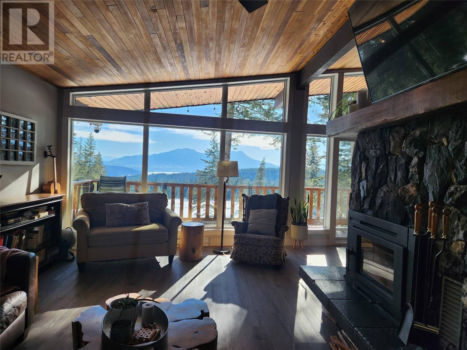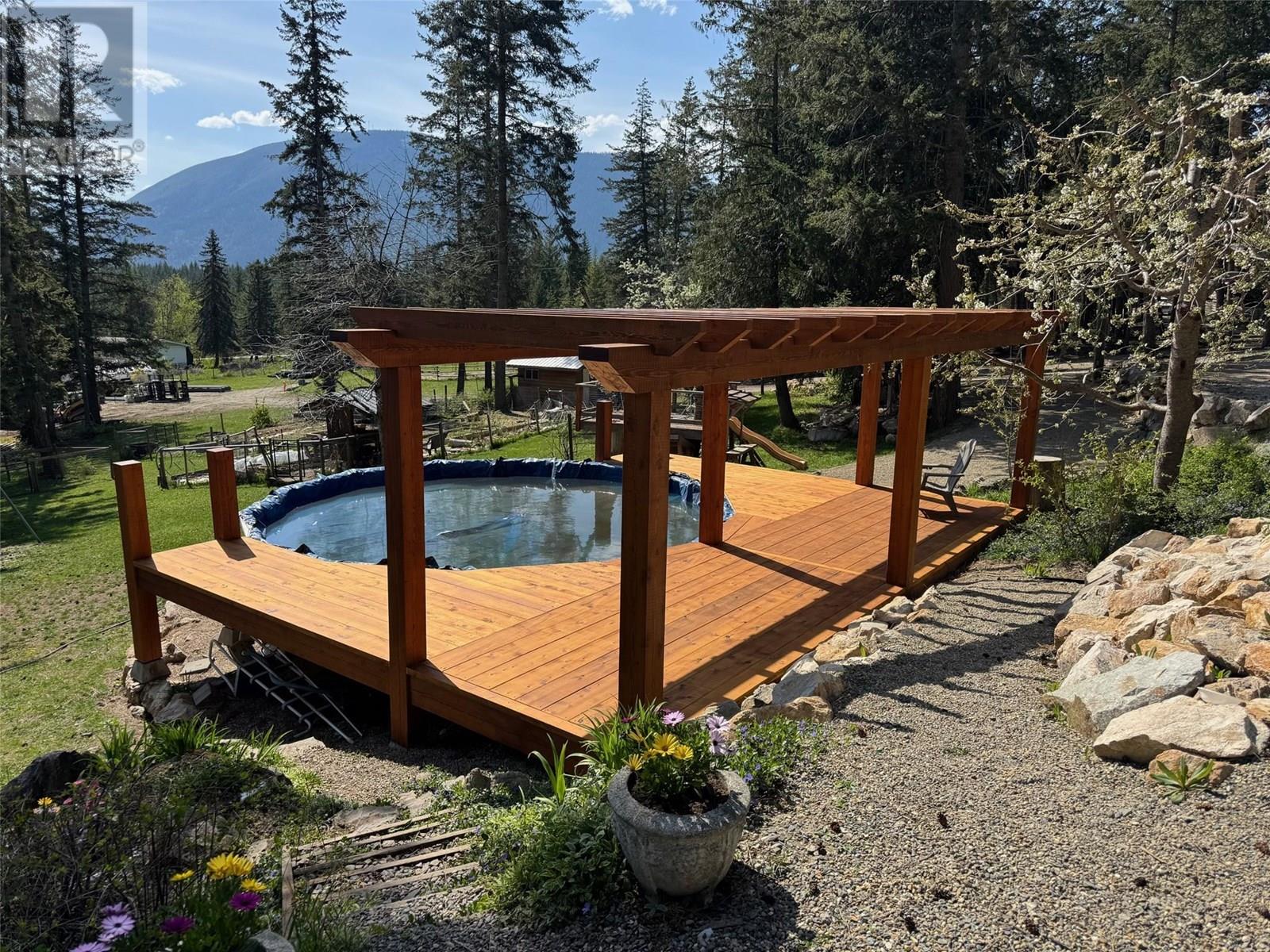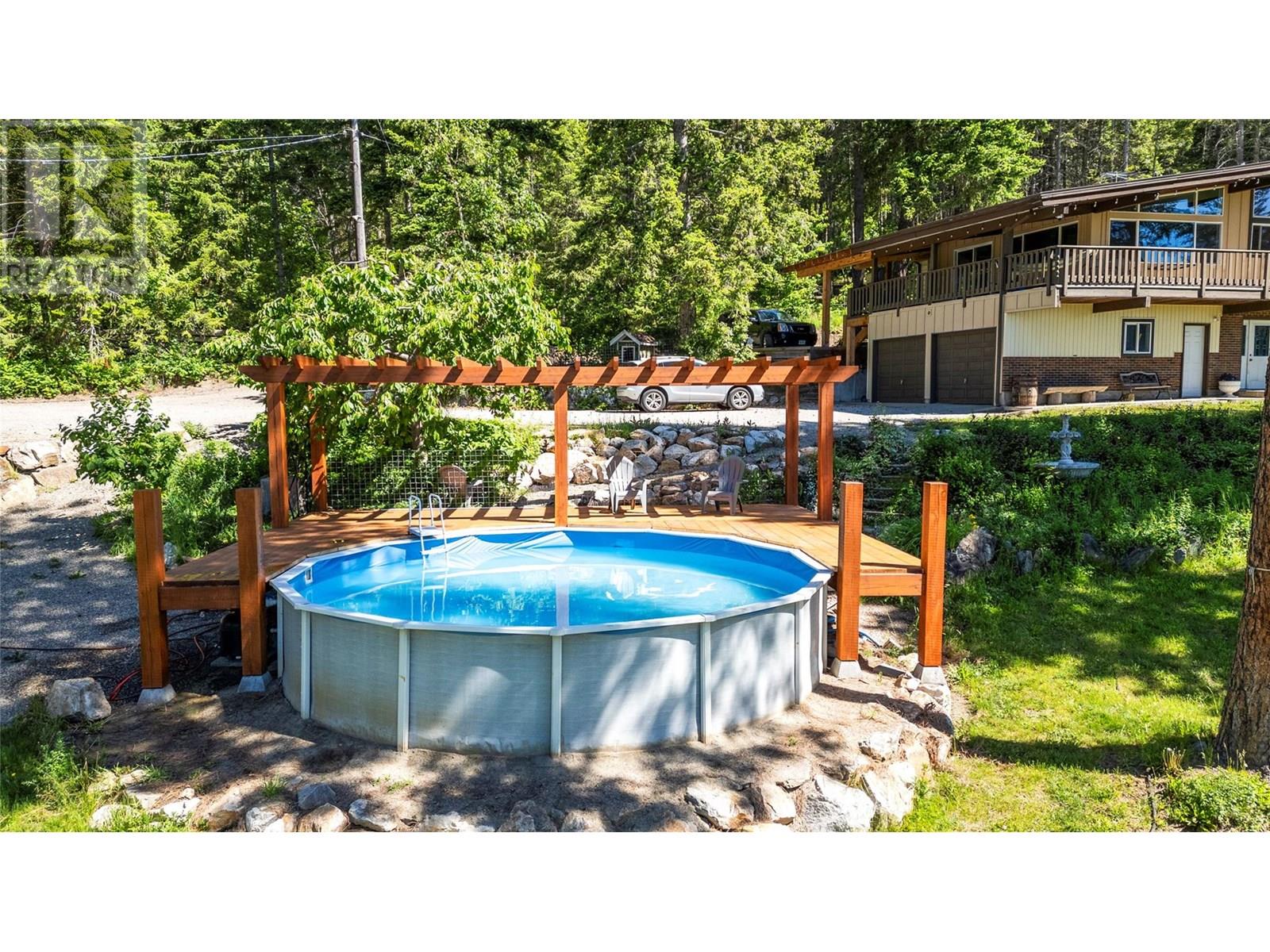 Discover the perfect blend of rustic charm and modern living in this beautifully renovated 9.85-acre property. Nestled in a serene setting, this exceptional acreage offers views of Shuswap Lake and surrounding mountains and valleys making it an ideal retreat for nature lovers and those seeking a tranquil lifestyle. The centerpiece of the property is a beautifully updated five-bedroom, three-bathroom home. Inside, you'll find an inviting open-concept kitchen with striking wood beams, high ceilings, and a warm, rustic ambiance. The living area is anchored by a stunning custom rock wood fire place creating a cozy focal point for gatherings. Step outside onto the wrap-around deck, where you can take in the breathtaking views and relax in complete privacy. The lower level boasts a spacious family room, kitchenette, 2 bedrooms, bathroom and small storage room which presents great opportunity for a second separate living area. This could easily be used as an inlaw suite, air bnb, rental opportunity, or additional living space tailored to your needs with it's own entry and deck area. The large roundabout driveway ensures easy access and ample parking. An fully serviced RV hook-up site (with it's own septice field) nestled in the trees is an added bonus for guests, family or rental income. This expansive property is well-equipped for country living, featuring a barn, stalls/stable, ample space for horses, chicken coop, and sheep, as well as a welcoming environment for family pets, including cats and dogs. The land is highly usable, offering endless possibilities for farming, recreation, or simply enjoying the great outdoors. Enjoy fruit from the cherry trees, blueberry bushes and pear trees in the summer and put your green thumb to work in the raised garden beds. A 21ft diameter above ground pool built into a stunning deck completes the outdoor living area. A place to embrace the rural lifestyle, this exceptional property has it all. (id:44393)