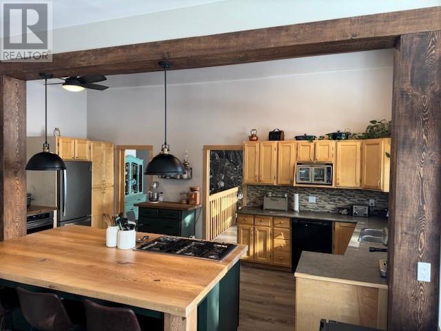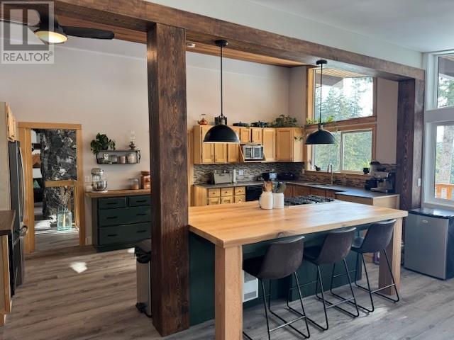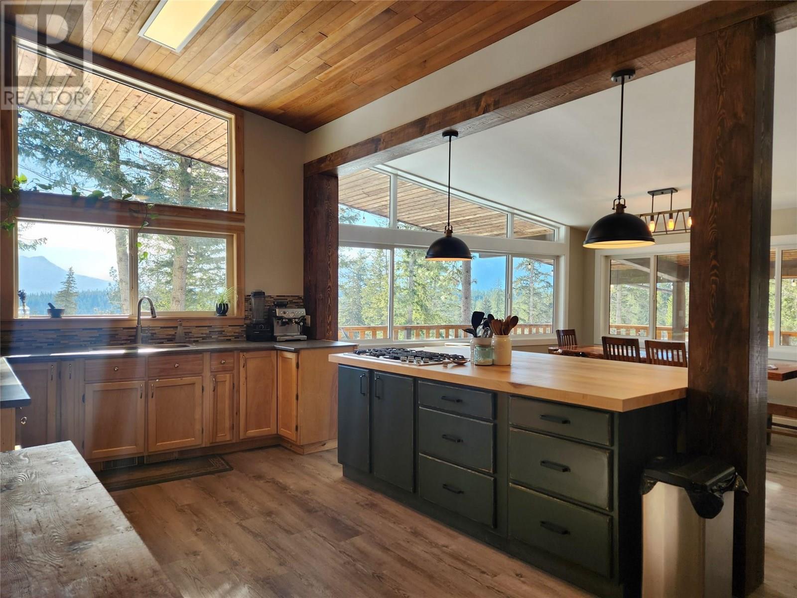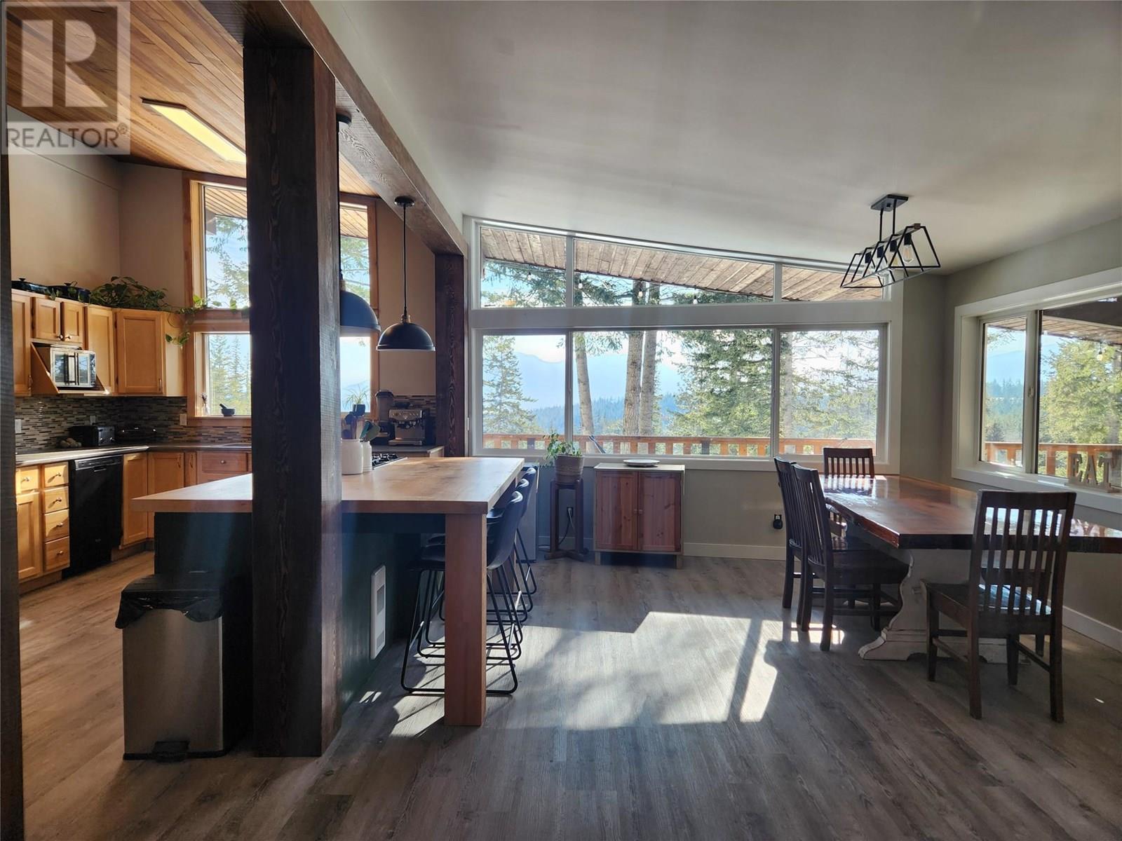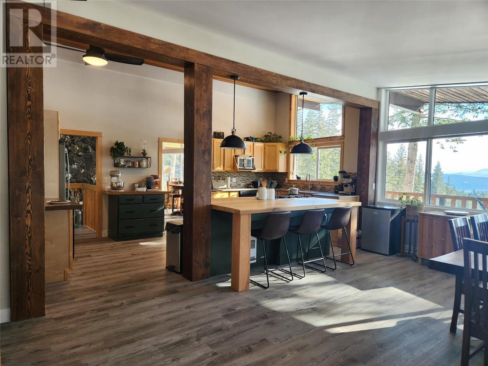 Discover the perfect blend of rustic charm and modern living in this beautifully renovated 9.85-acre property. Nestled in a serene setting, this exceptional acreage offers views of Shuswap Lake and surrounding mountains and valleys making it an ideal retreat for nature lovers and those seeking a tranquil lifestyle. The centerpiece of the property is a beautifully updated five-bedroom, three-bathroom home. Inside, you'll find an inviting open-concept kitchen with striking wood beams, high ceilings, and a warm, rustic ambiance. The living area is anchored by a stunning custom rock wood fire place creating a cozy focal point for gatherings. Step outside onto the wrap-around deck, where you can take in the breathtaking views and relax in complete privacy. The lower level boasts a spacious family room, kitchenette, 2 bedrooms, bathroom and small storage room which presents great opportunity for a second separate living area. This could easily be used as an inlaw suite, air bnb, rental opportunity, or additional living space tailored to your needs with it's own entry and deck area. The large roundabout driveway ensures easy access and ample parking. An fully serviced RV hook-up site (with it's own septice field) nestled in the trees is an added bonus for guests, family or rental income. This expansive property is well-equipped for country living, featuring a barn, stalls/stable, ample space for horses, chicken coop, and sheep, as well as a welcoming environment for family pets, including cats and dogs. The land is highly usable, offering endless possibilities for farming, recreation, or simply enjoying the great outdoors. Enjoy fruit from the cherry trees, blueberry bushes and pear trees in the summer and put your green thumb to work in the raised garden beds. A 21ft diameter above ground pool built into a stunning deck completes the outdoor living area. A place to embrace the rural lifestyle, this exceptional property has it all. (id:44393)