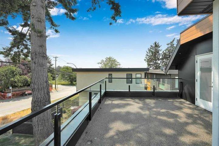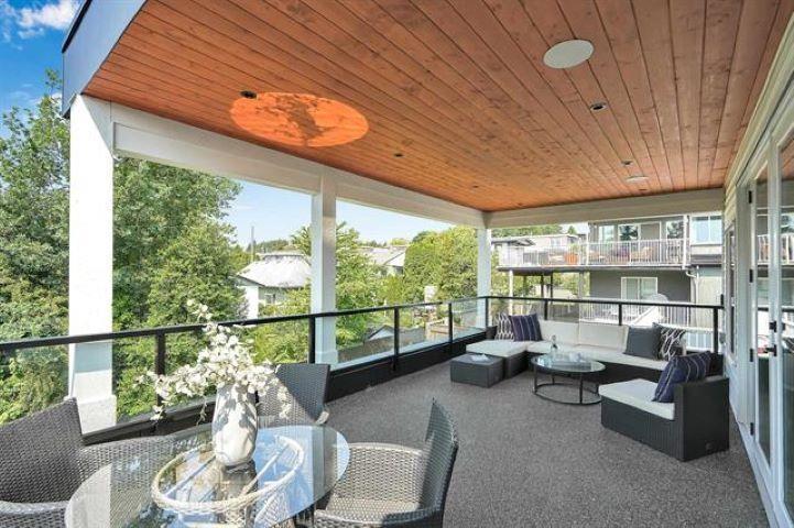 Ocean View! Entertainers dream house! 2023 built, 3 story home with a reverse floor plan. This large east facing over 4000 sqft home offers 4 bedrooms,5 Bathrooms, modern open layout with 2 large decks (575 sqft) on the main floor. Air conditioned ,huge kitchen with a massive dining area. Big Theatre room with full bathroom and bar. 2 bedroom legal suite. Top notch finishing's has to be seen to be appreciated. Manicured gardens, easy to maintain, minutes away from white rock beach. This house has it all! (id:44393)