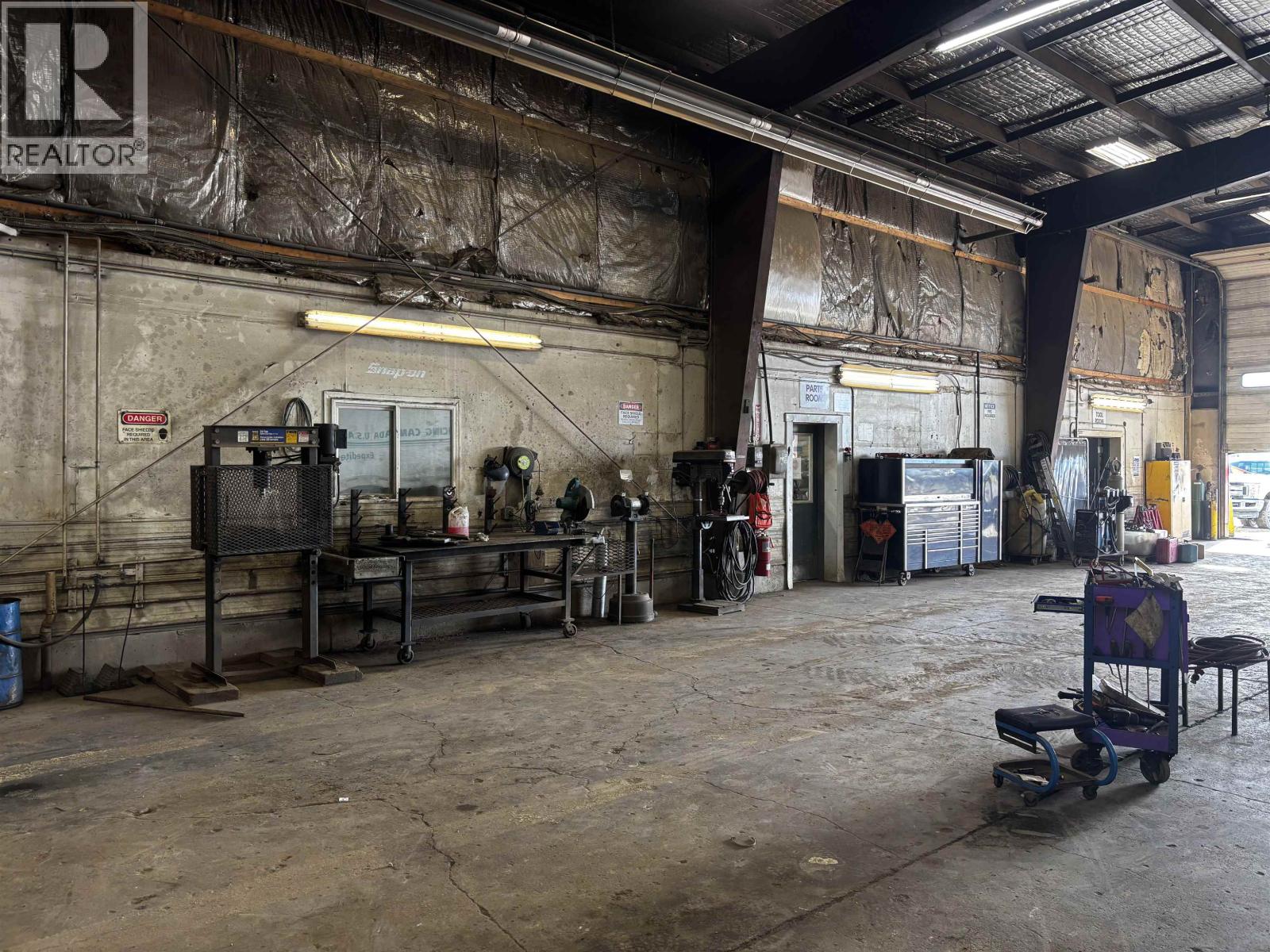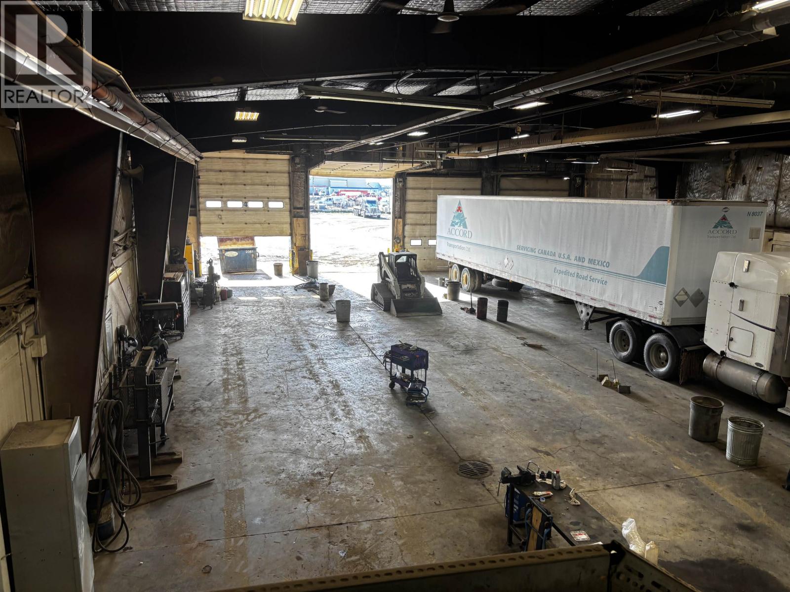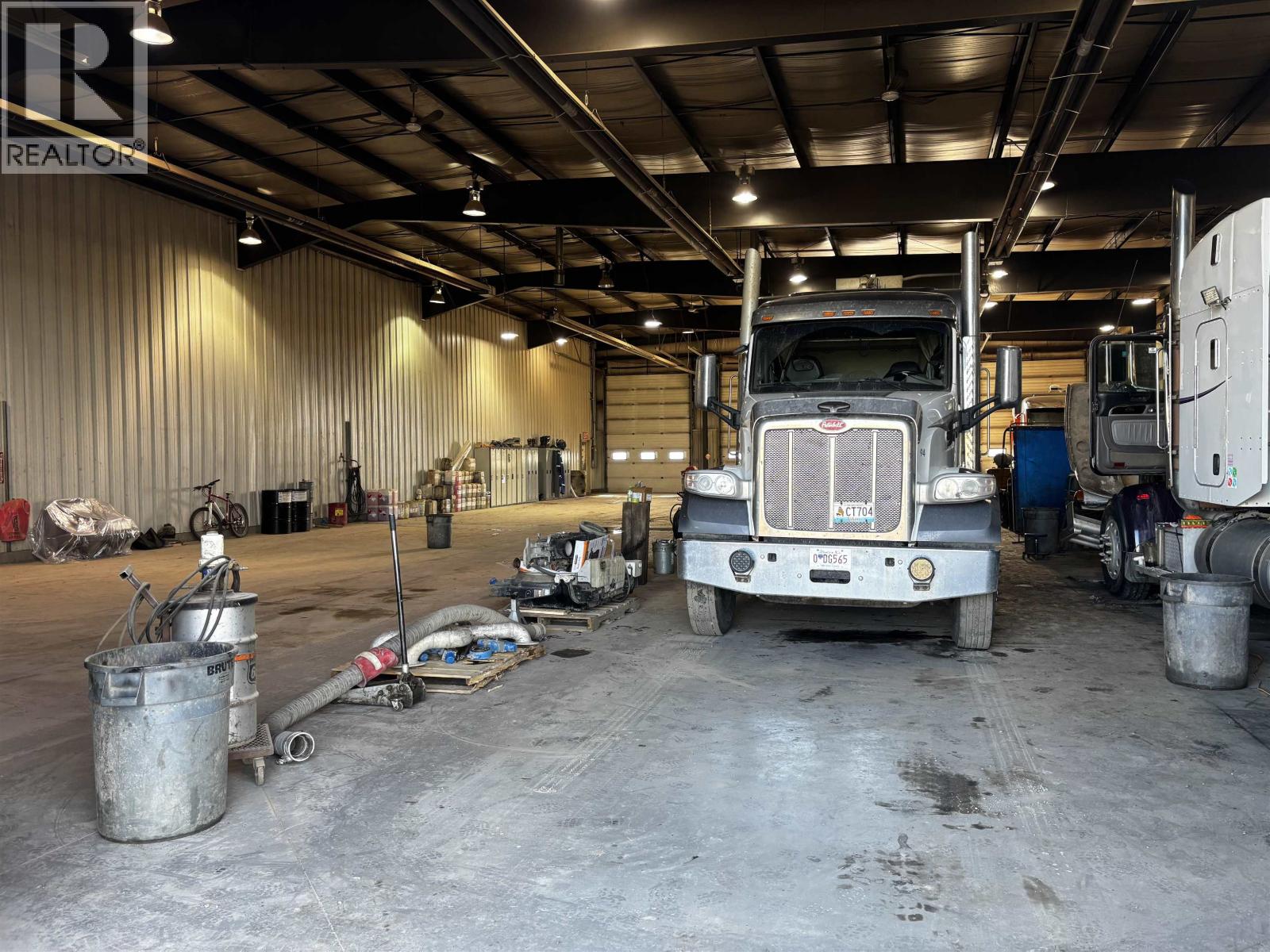 The perfect location for your company with highway visibility and 5.17 acres with a secure graveled yard. Upon entering, your clients will feel comfortable with lots of parking and an office area with clean updated offices. There are nine private offices plus a large open work area, a board room and storage plus access to the shop on two levels. The shop offers four 100' bays with overhead doors and radiant gas heaters, sumps that go to a holding tank, a hot pressure washer, a tool room, lunch room as well as a part room. Quick possession available. Environmental report will be on file. Additional drive through truck shop and 4.17 acres also available next door for those needing more shop and yard. See Commercial MLS#C8073385. (id:44393)