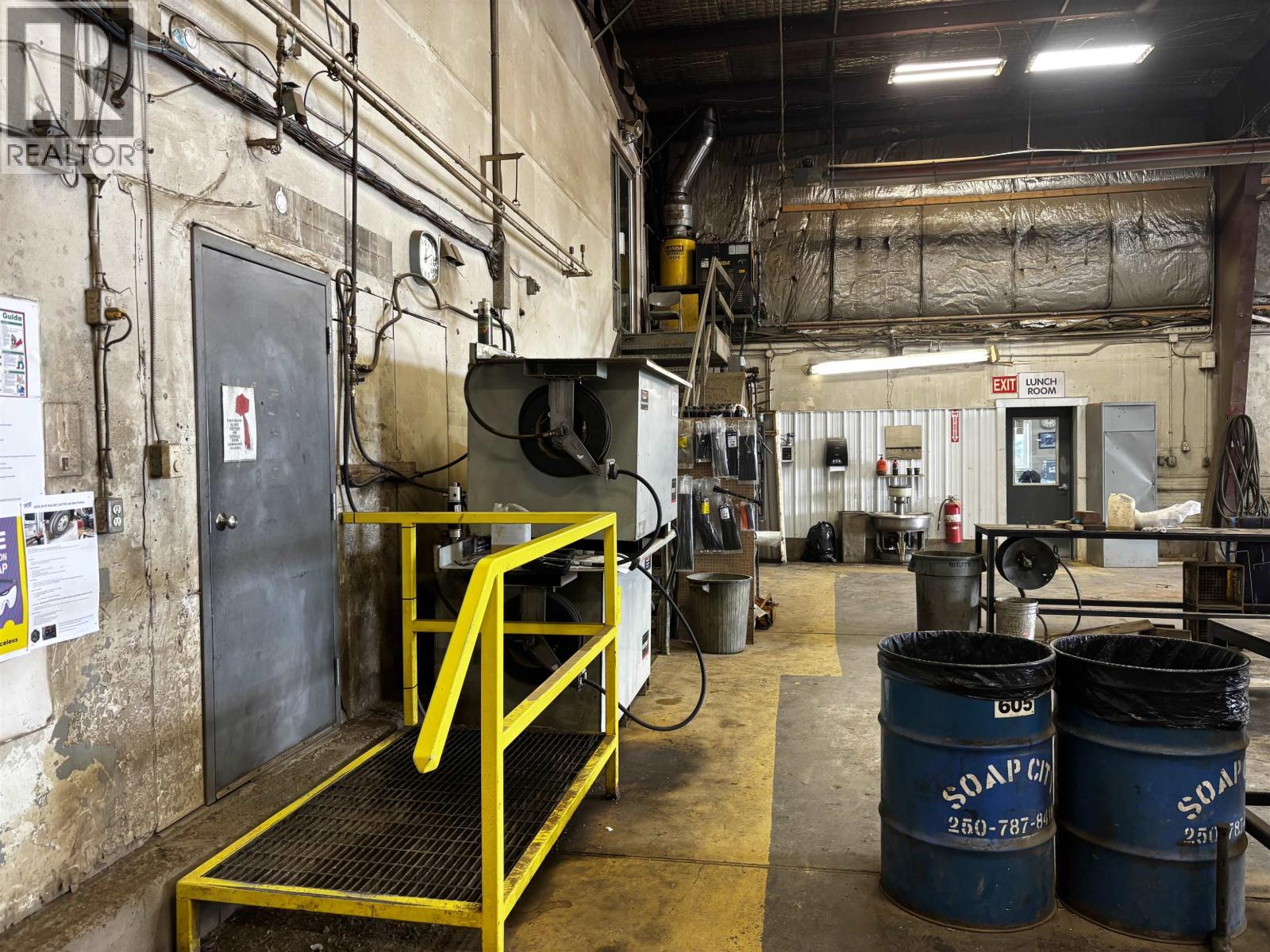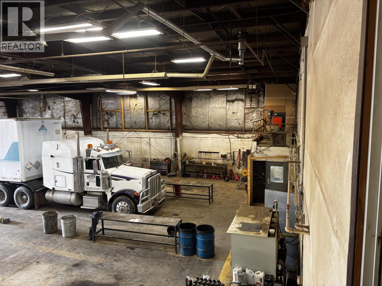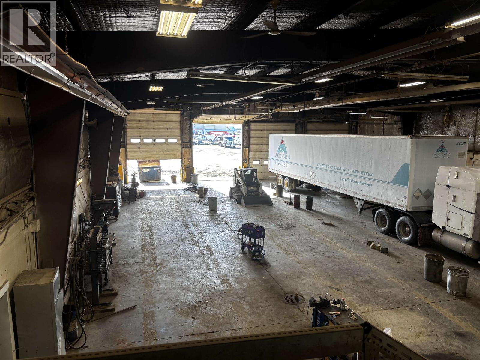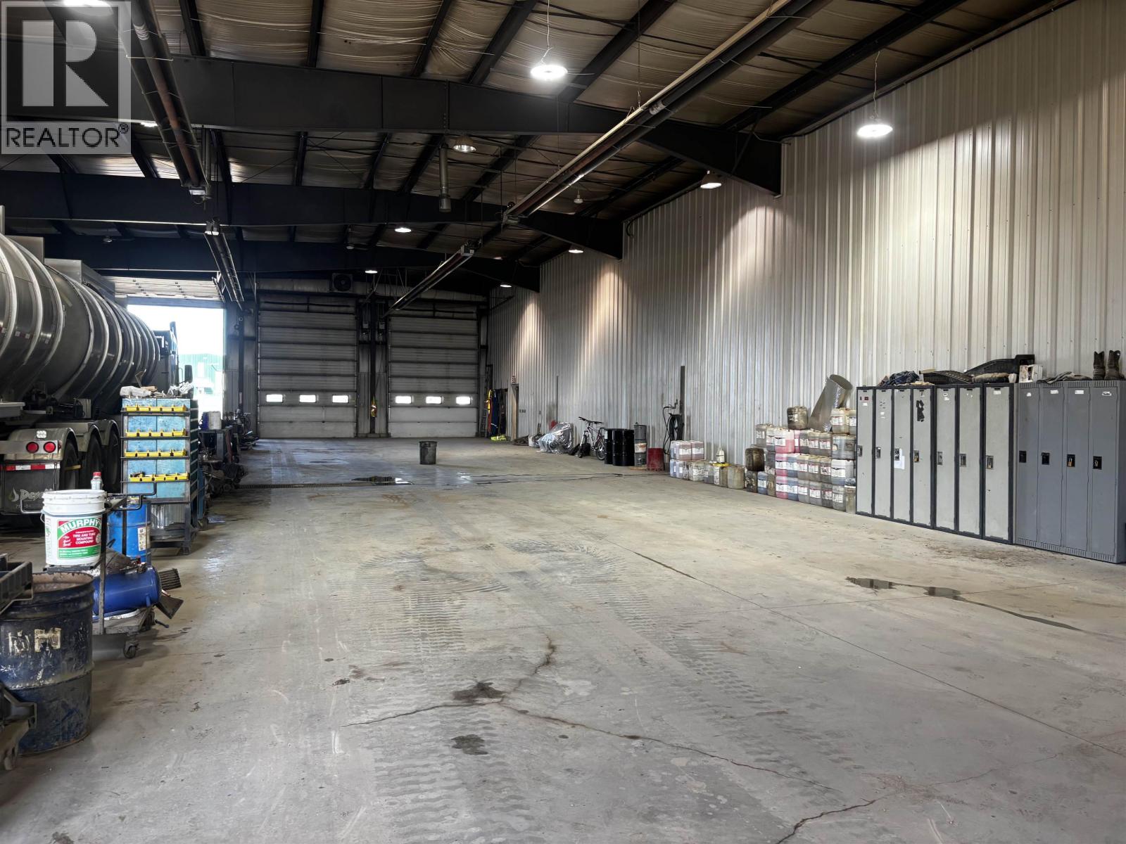The perfect location for your company with highway visibility and 5.17 acres with a secure graveled yard. Upon entering, your clients will feel comfortable with lots of parking and an office area with clean updated offices. There are nine private offices plus a large open work area, a board room and storage plus access to the shop on two levels. The shop offers four 100' bays with overhead doors and radiant gas heaters, sumps that go to a holding tank, a hot pressure washer, a tool room, lunch room as well as a part room. Quick possession available. Environmental report will be on file. Additional drive through truck shop and 4.17 acres also available next door for those needing more shop and yard. See Commercial MLS#C8073385. (id:44393)